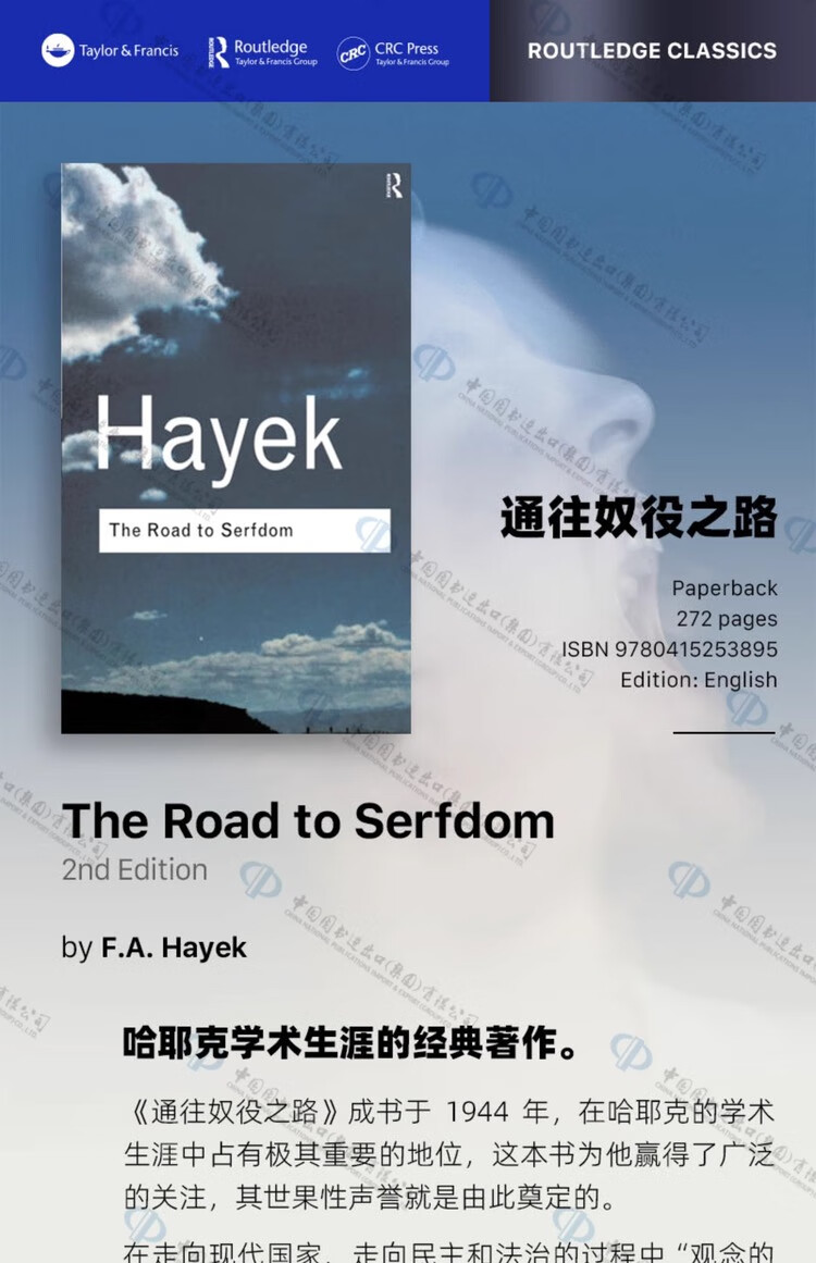 【现货速发】通往奴役之路 哈耶克 英文原版 The Road to Serfdom英文原版 9780415253895
