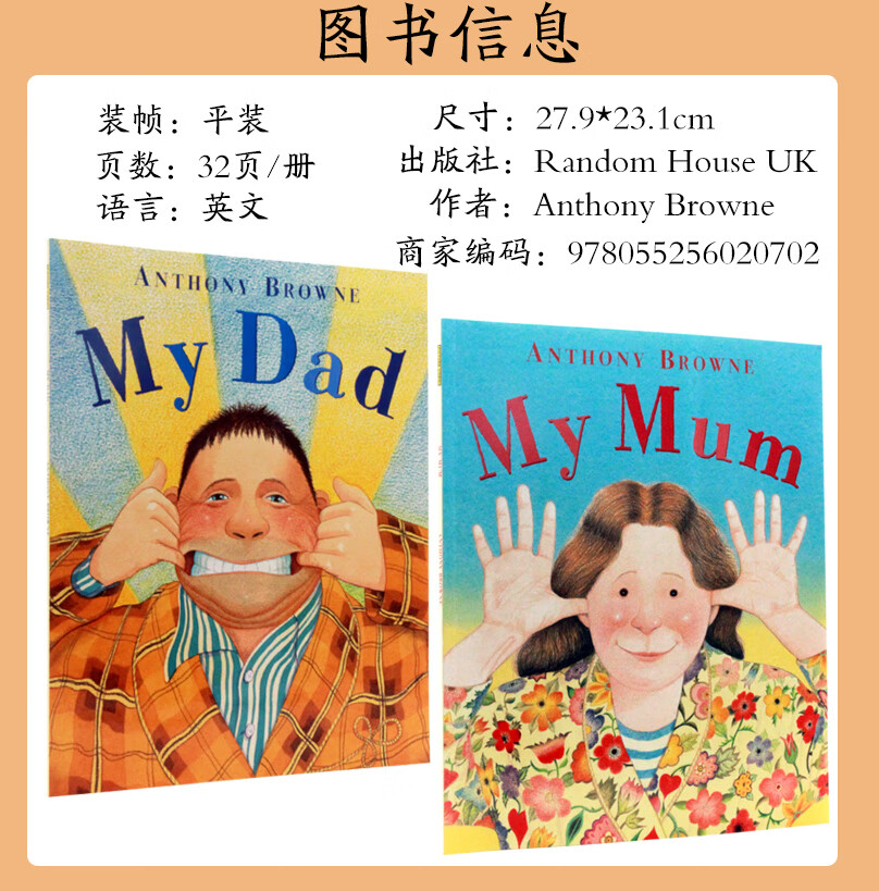 我爸爸我妈妈2册套装 英文原版绘本 My Mum My Dad 安东尼布朗Anthony Browne 进口平装书3-6岁家庭关系情商管理