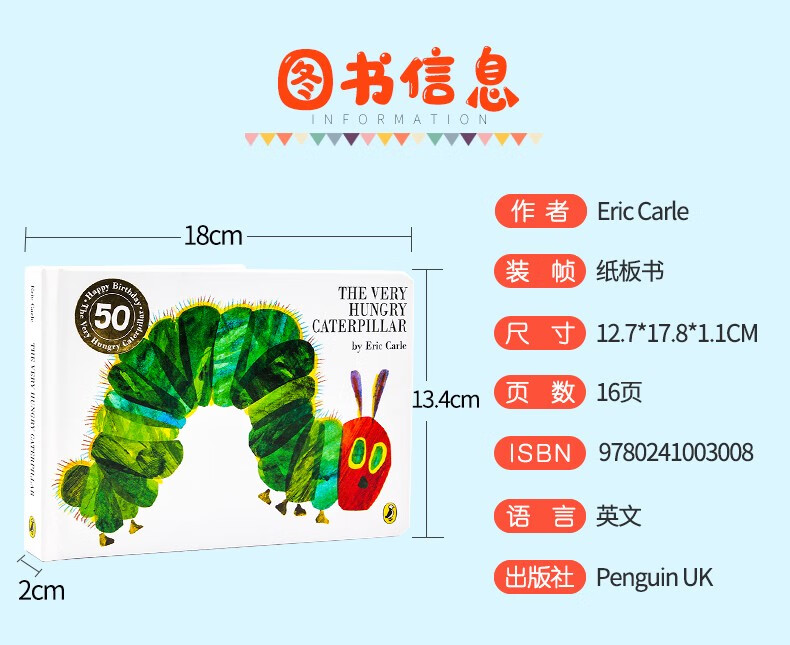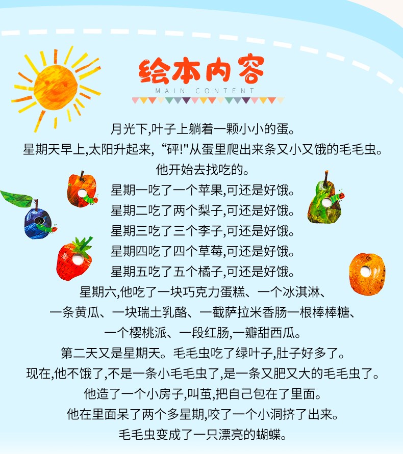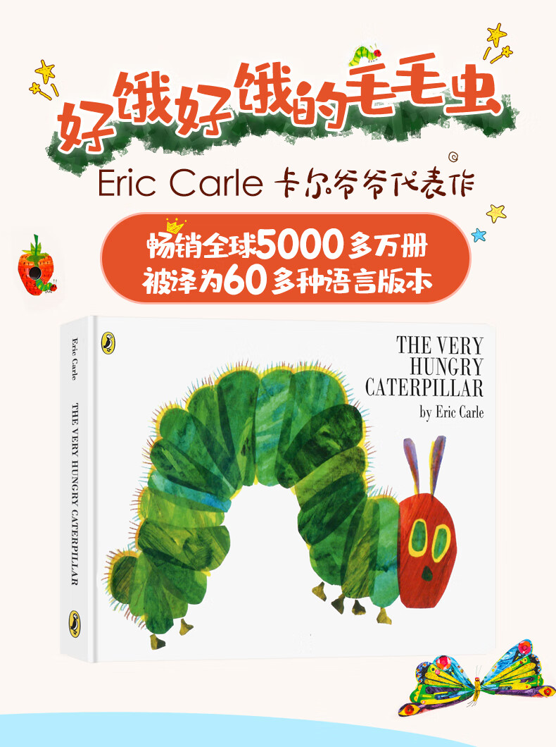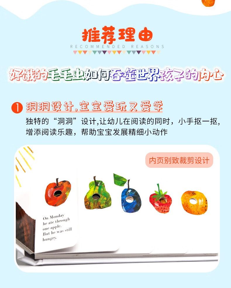 好饿的毛毛虫 The Very Hungry Caterpillar 英文原版绘本 纸板书 廖彩杏书单 儿童早教启蒙英语读物纸板洞洞书 艾瑞卡尔爷爷