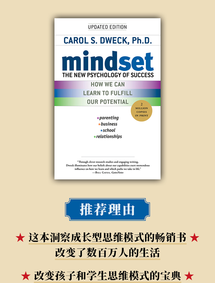 思维模式新成功心理学 英文原版 Mindset The New Psychology of Success Dweck 成长型思维 经管畅销书 搭成长的边界 思考快与慢