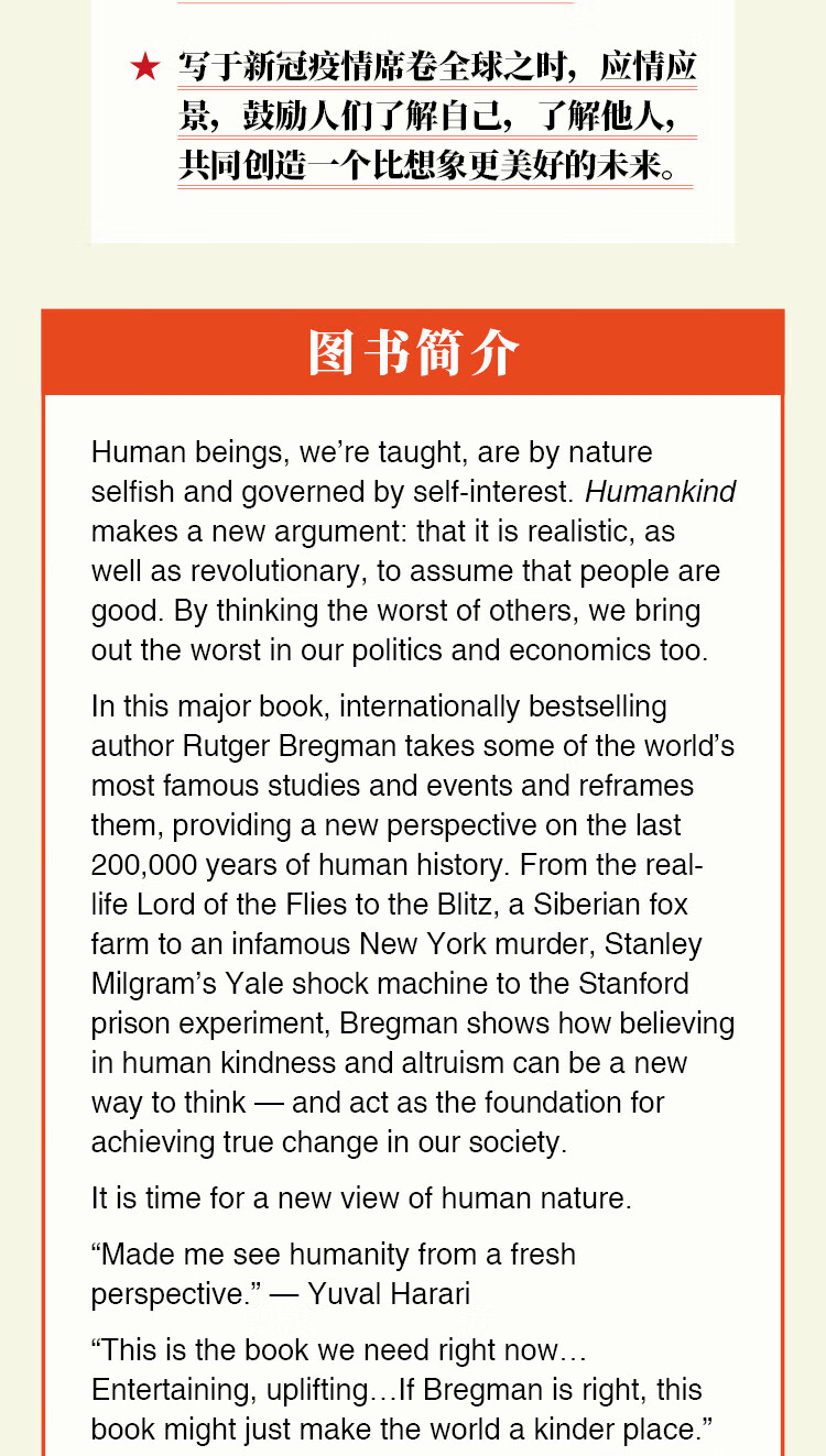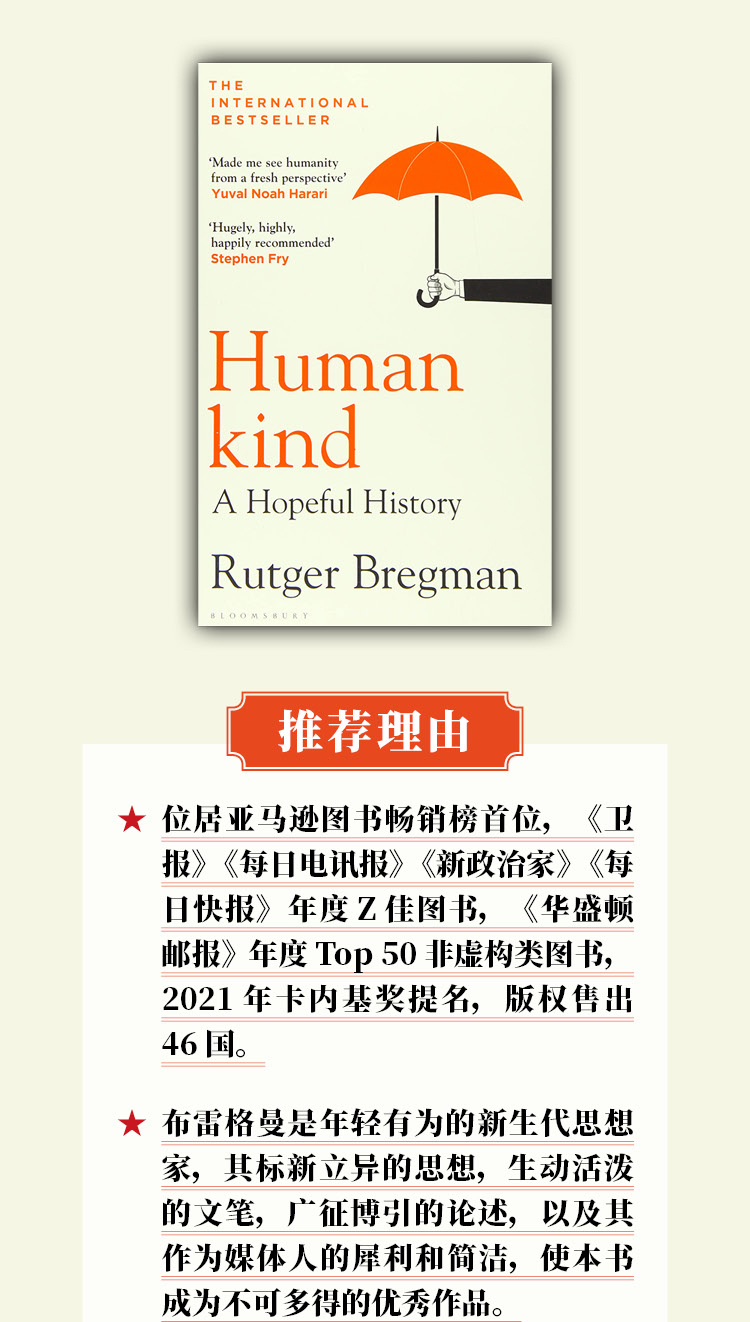 人类充满希望的历史 人慈 英文原版 Humankind A Hopeful History 布雷格曼 直击人性本质 人类简史作者推荐 搭现实主义者的乌托邦 人慈