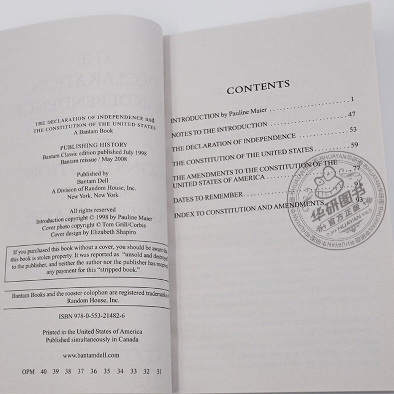英文原版 独立宣言与美国宪法 The Declaration of Independence and