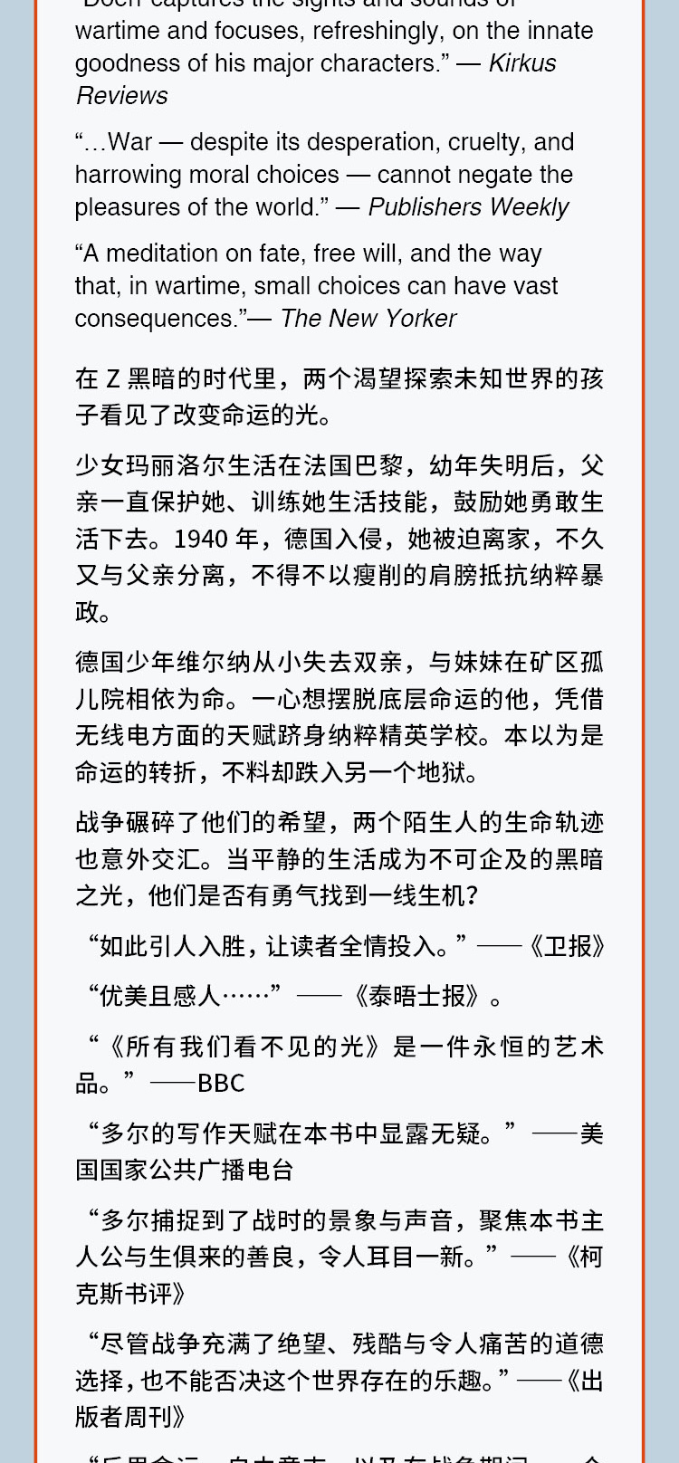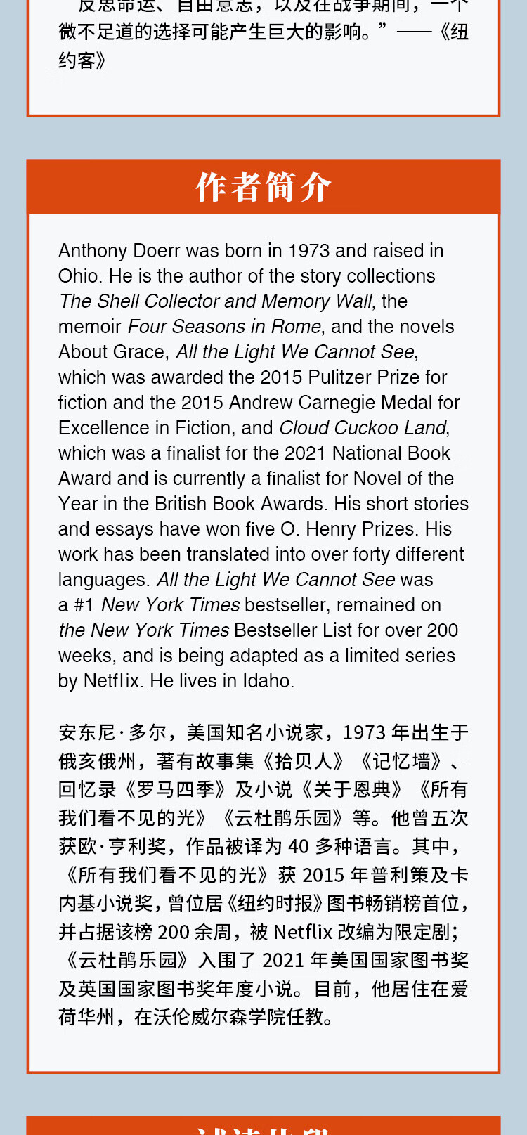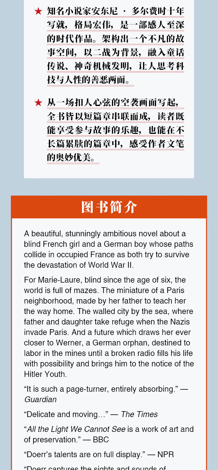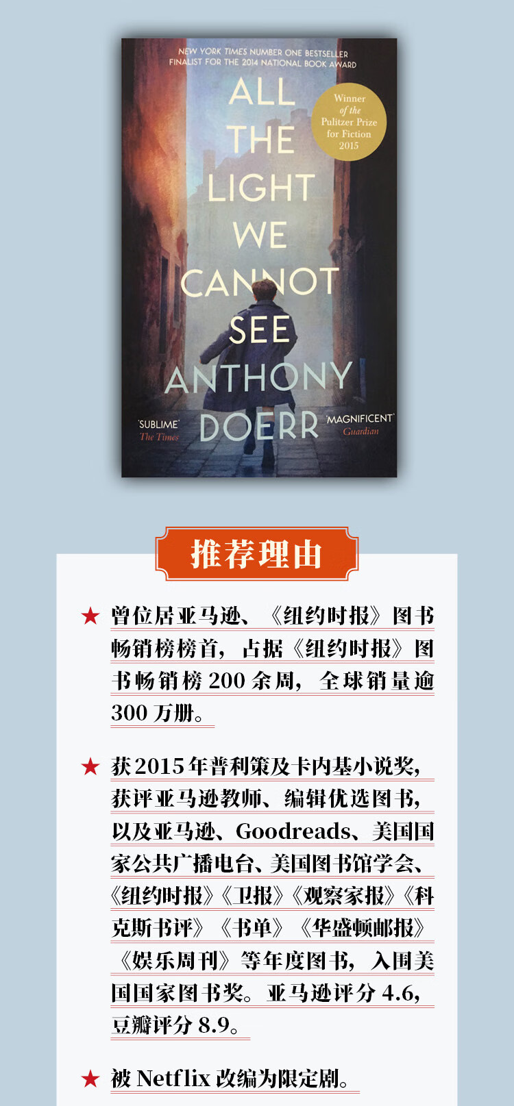 所有我们看不见的光 英文原版 All the Light We Cannot See 安东尼多尔 当代畅销小说 普利策奖 弘书阁英语文库十大当代之一 所有我们看不见的光