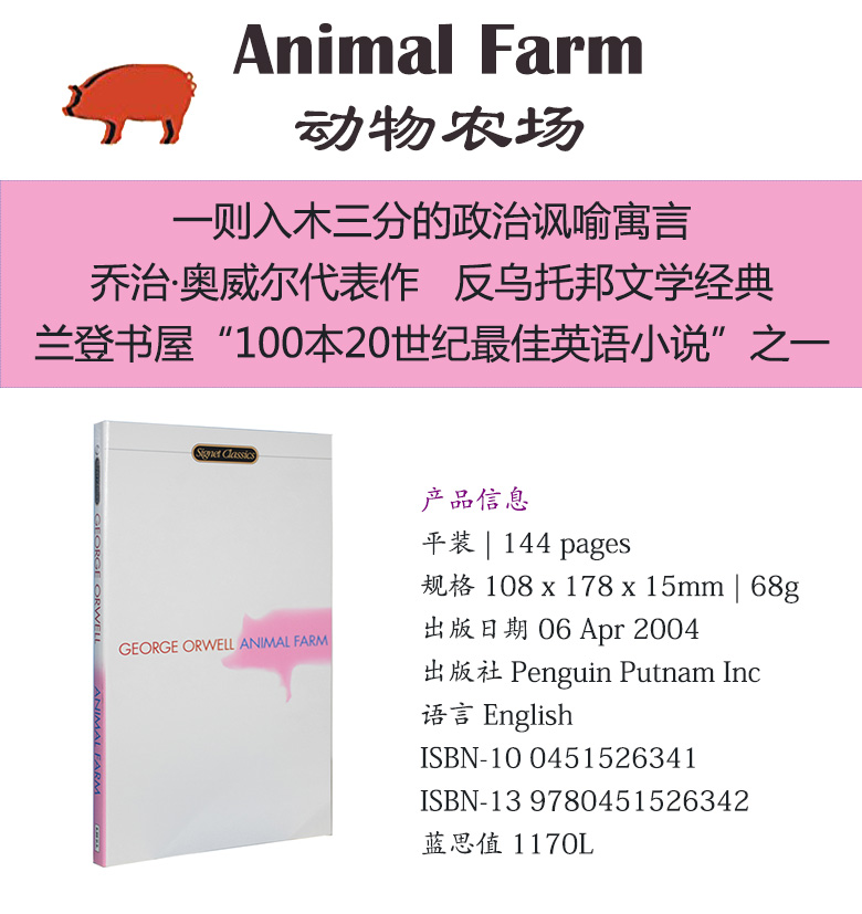 预售 动物农场庄园 英文原版Animal Farm George Orwell乔治奥威尔 经典文学名著