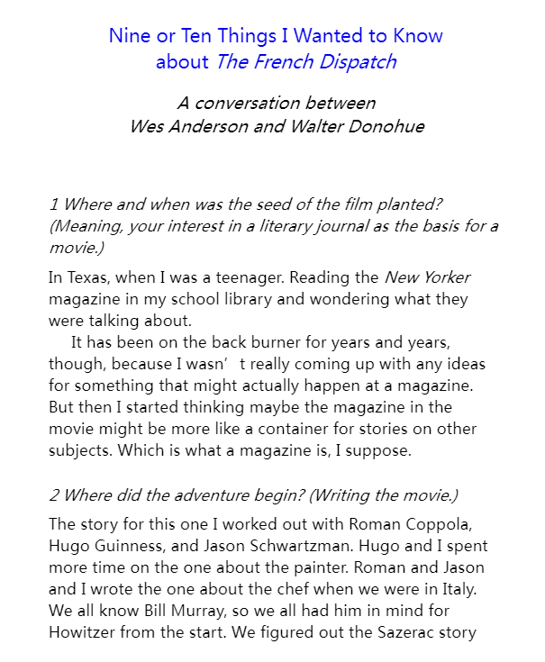 英文原版 法兰西特派 电影故事剧本 The French Dispatch 韦斯·安德森 Wes Anderson 甜茶主演