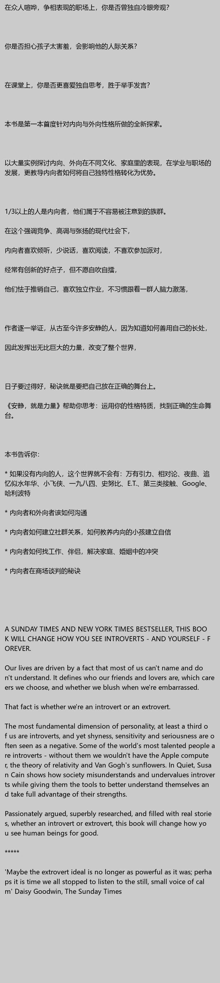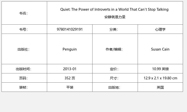 【现货】安静 就是力量 Quiet: The Power of Introverts in a World That Can't Stop Talking 正版进口 Susan Cain 英文原版书
