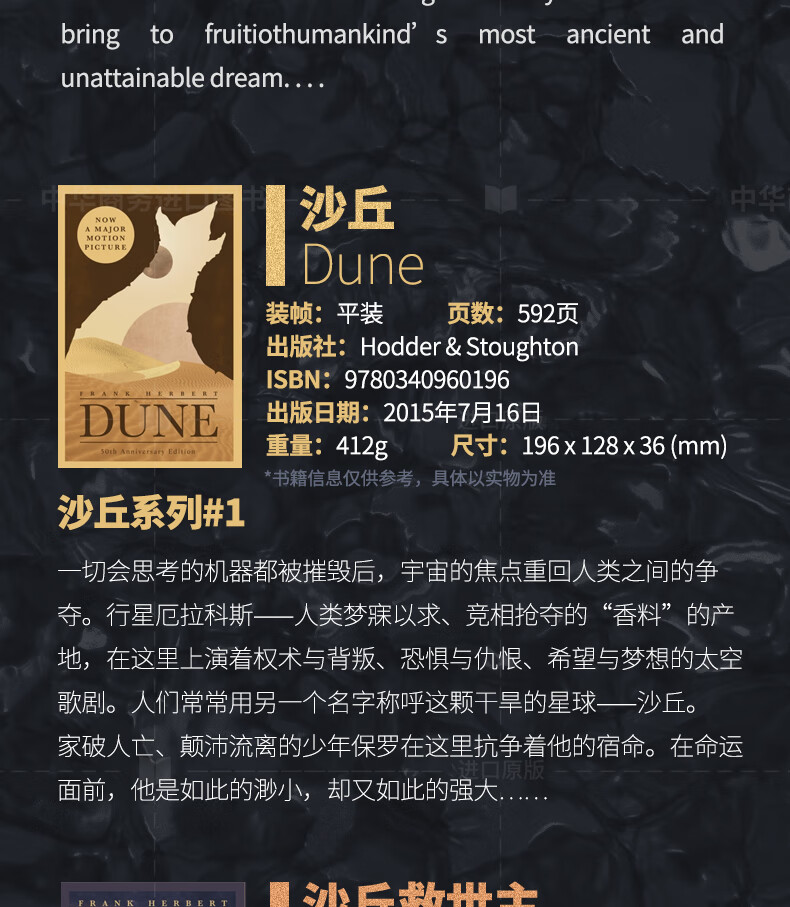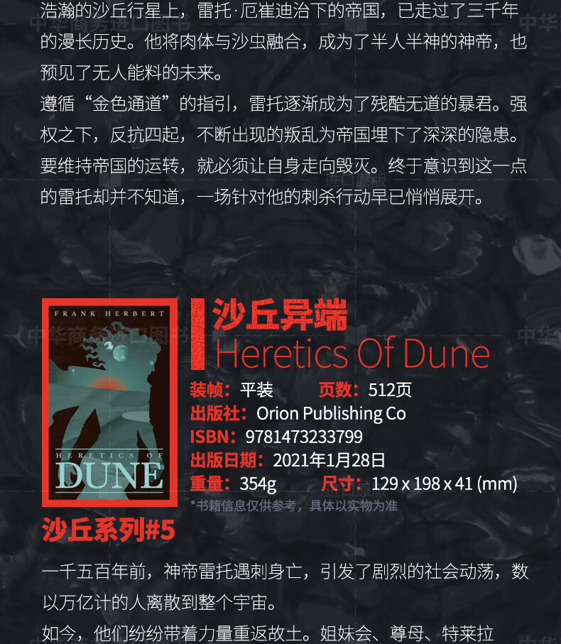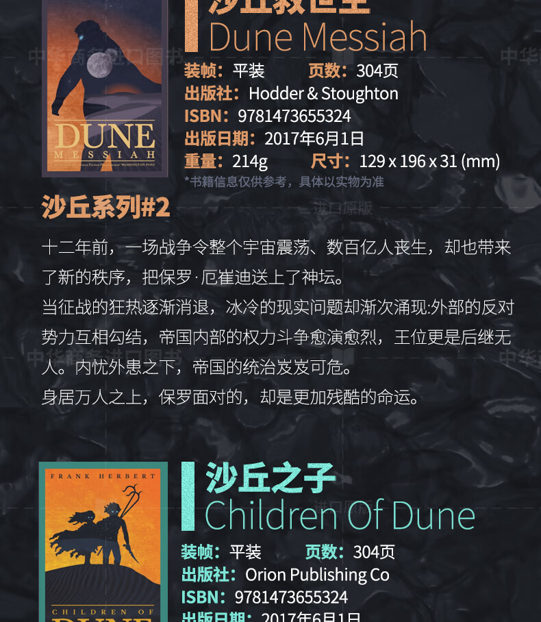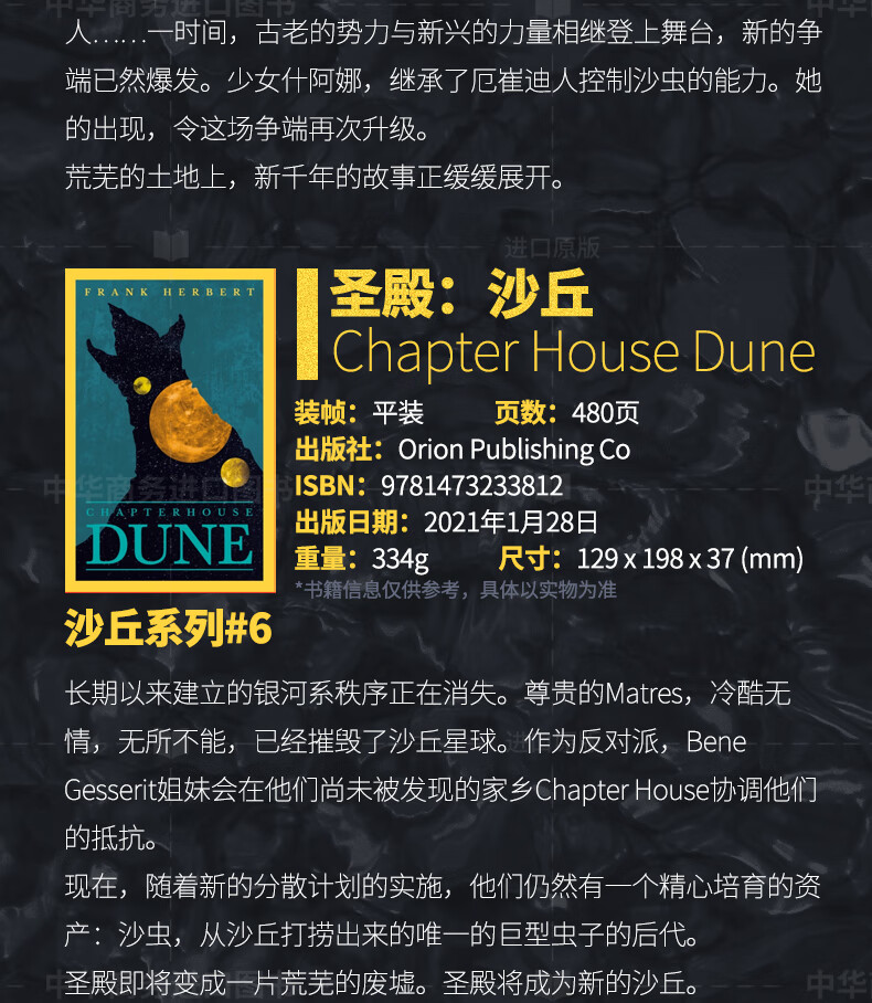 沙丘 六部曲套装6册 英文原版 科幻小说 Dune 弗兰克·赫伯特 Frank Herbert 当代科幻史诗畅销书 电影同名原著 英版