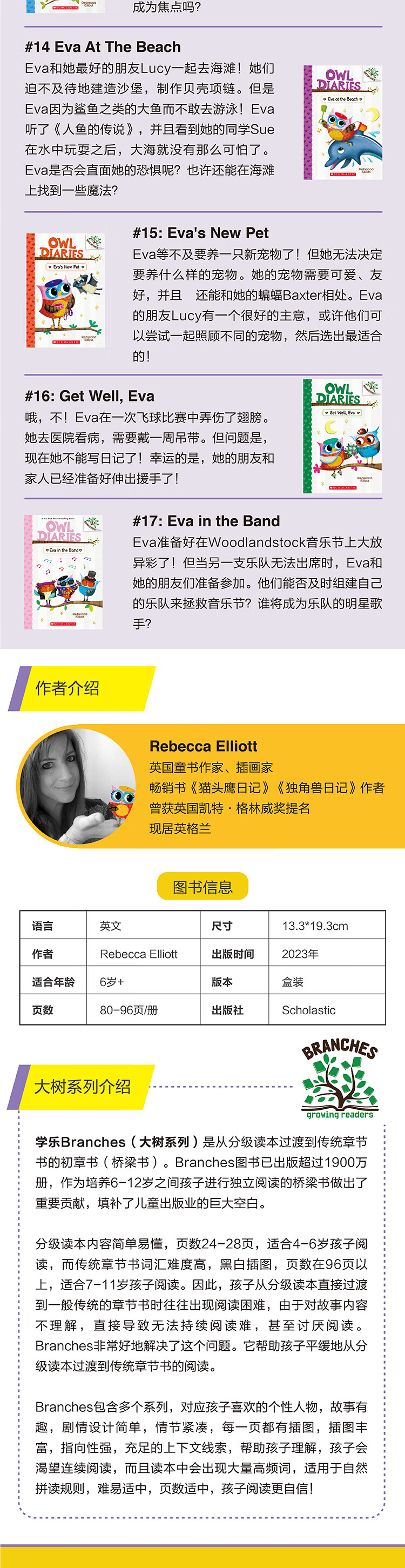猫头鹰日记(17册) Owl Diaries 扫码音频 赠手账本 儿童全彩桥梁章节书 蓝思470-580L 6-12岁 学乐大树Branches系列美国学乐出版社 英文原版
