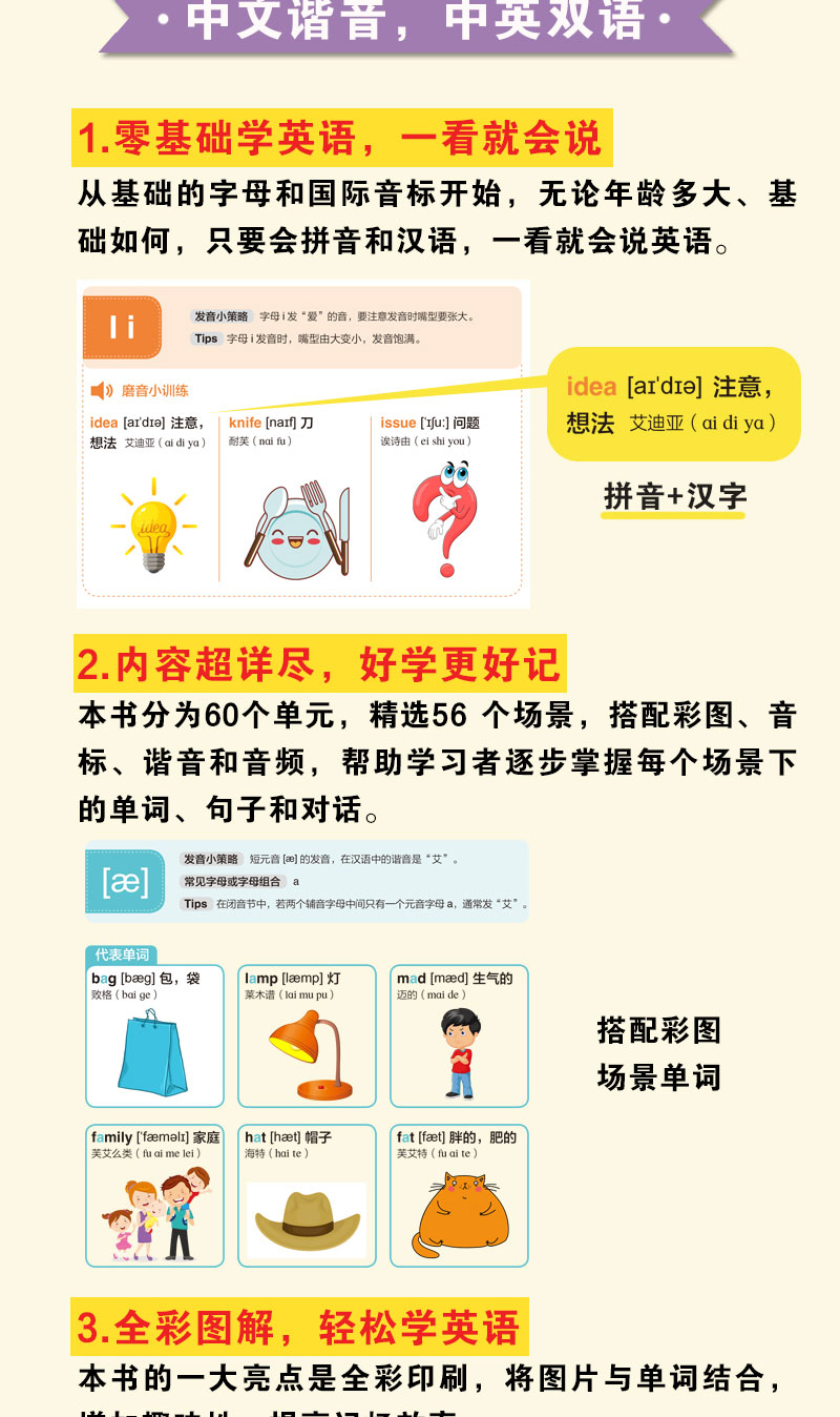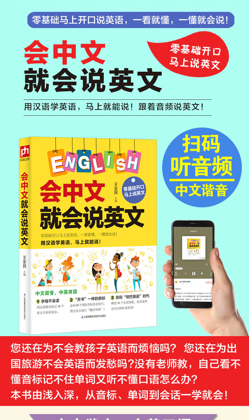 If you can speak Chinese, you can speak English. English book with Chinese homophonic Chinese characters. English homophonic memory spoken language book. Self-study English introduction with zero basic knowledge. Quick memorization of English words for primary school students.
