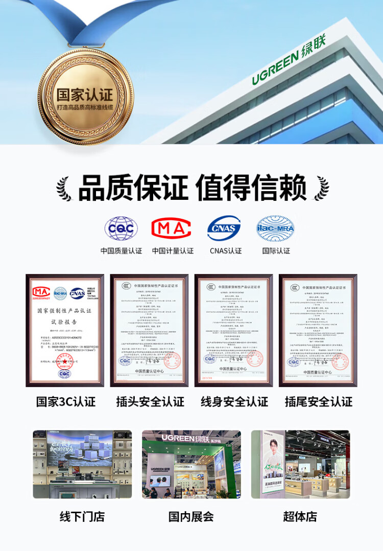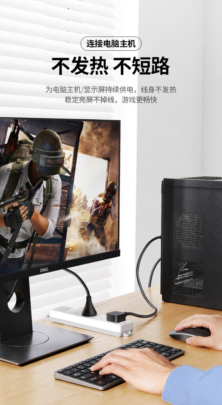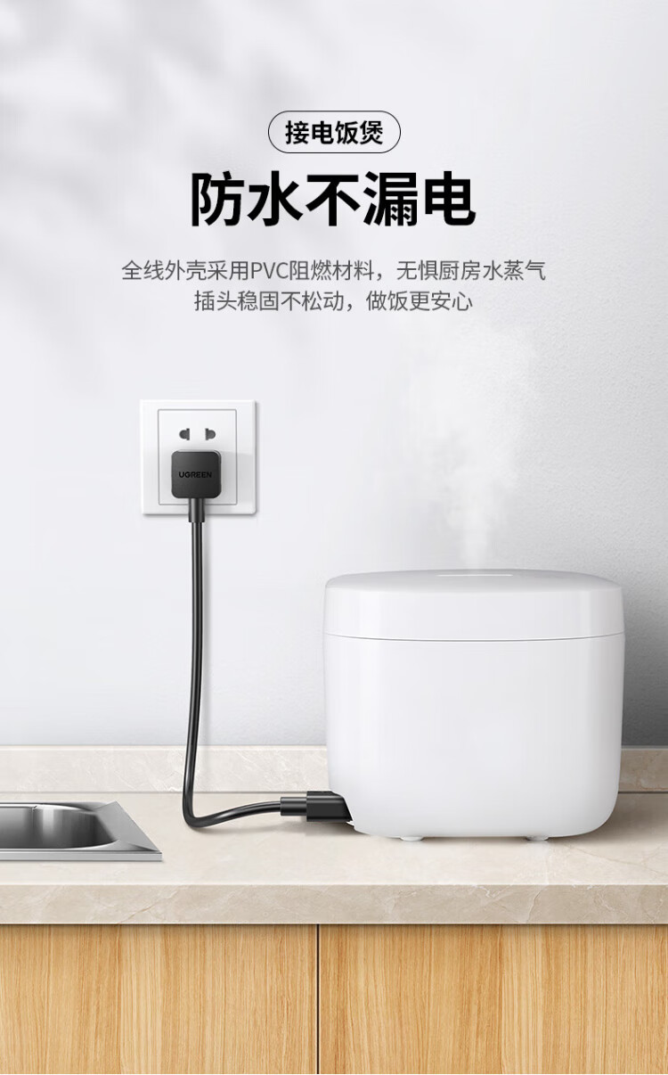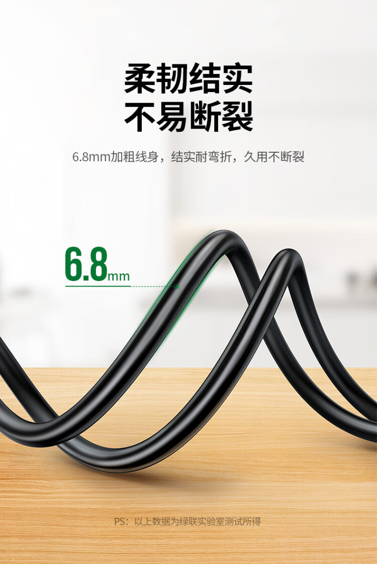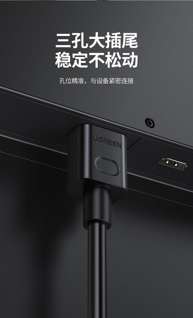 绿联国标三孔品字尾 三芯电源线 适用电脑台式主机显示器电炒锅电饭煲电子秤打印机连接线2米 30566