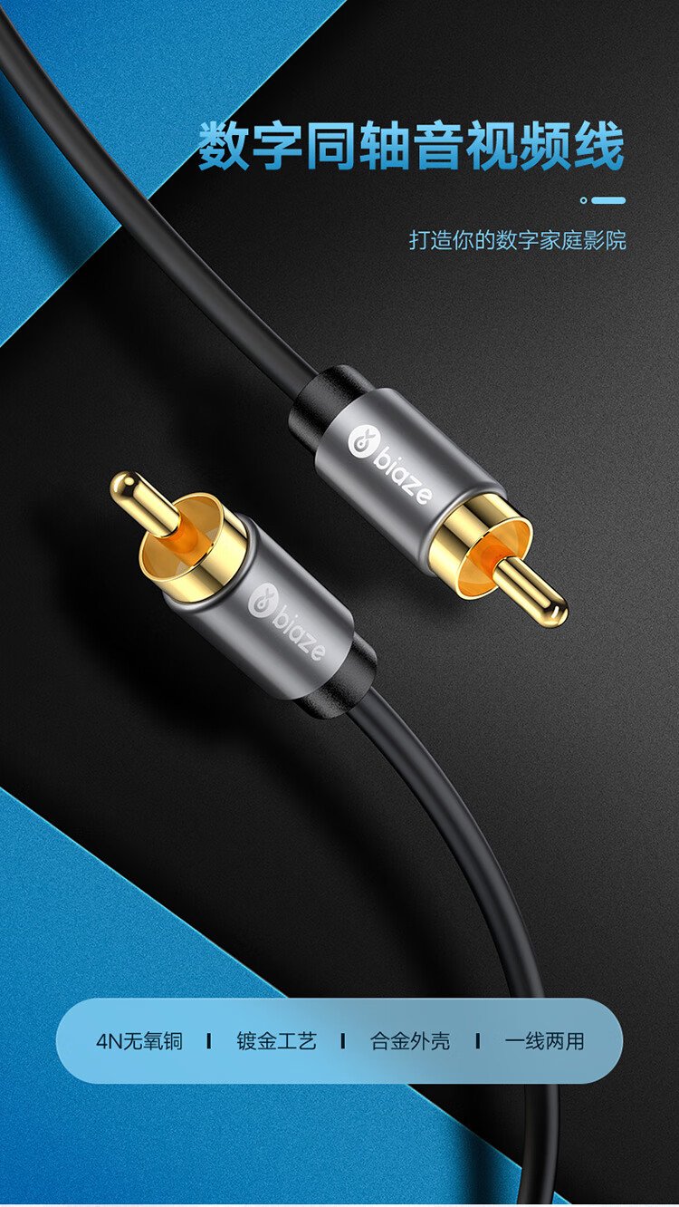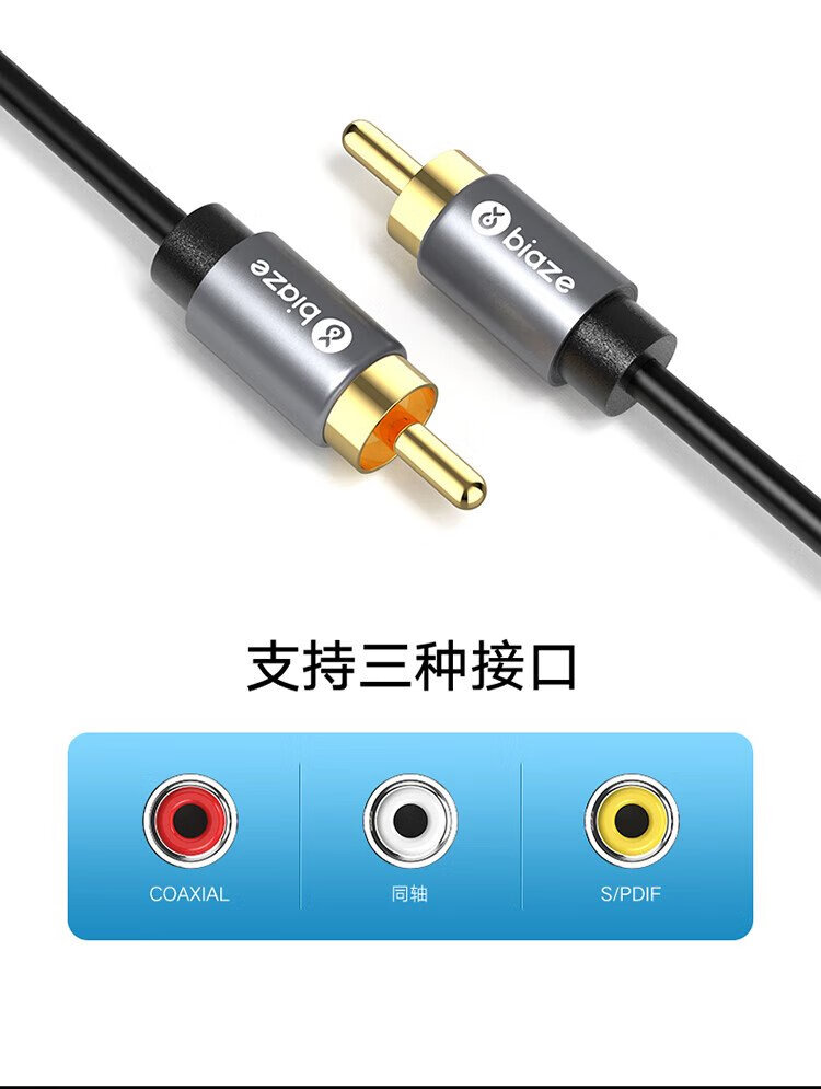 毕亚兹 RCA莲花头数字同轴线音频线 1米 低音炮发烧级公对公连接转接线 SPDIF音响电视功放75欧视频线