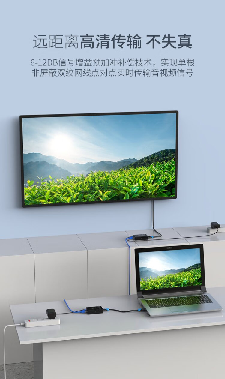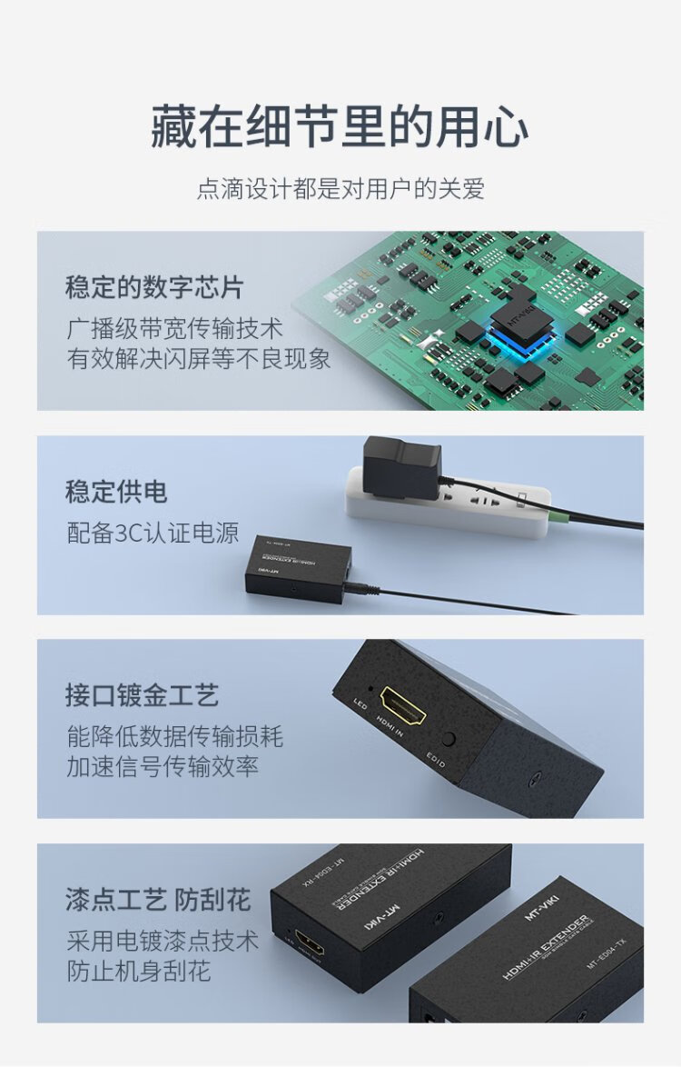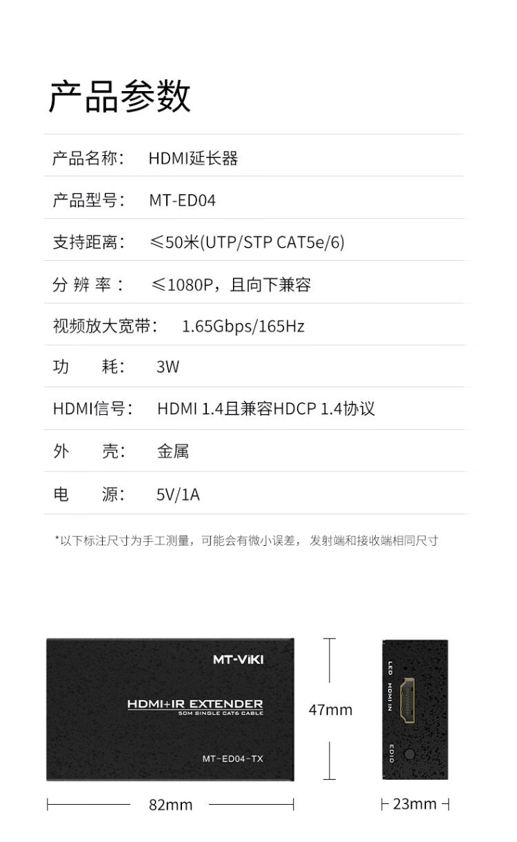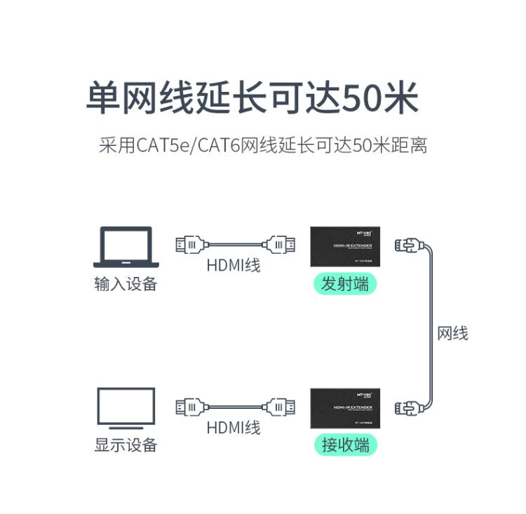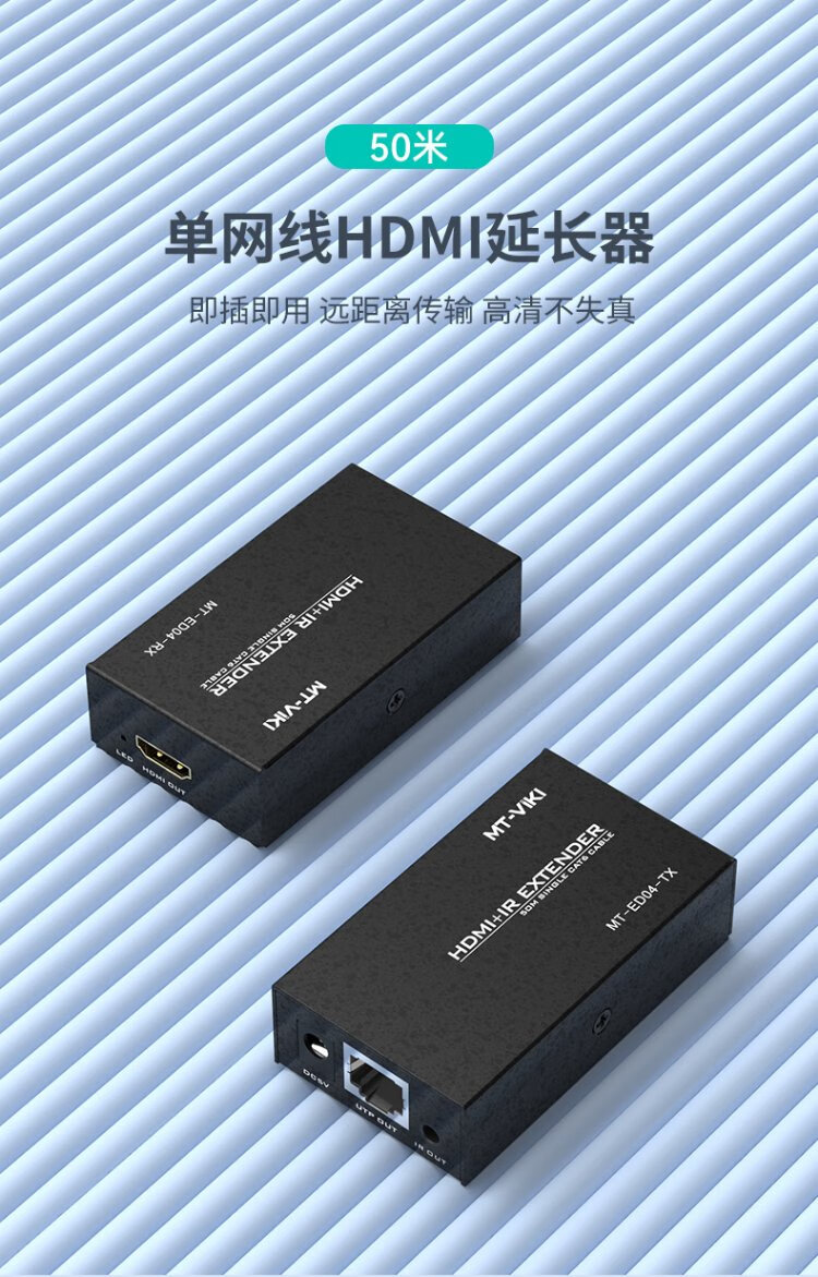 迈拓维矩(MT-viki)HDMI延长器50米 hdmi转RJ45单网线网络传输信号放大器 MT-ED04