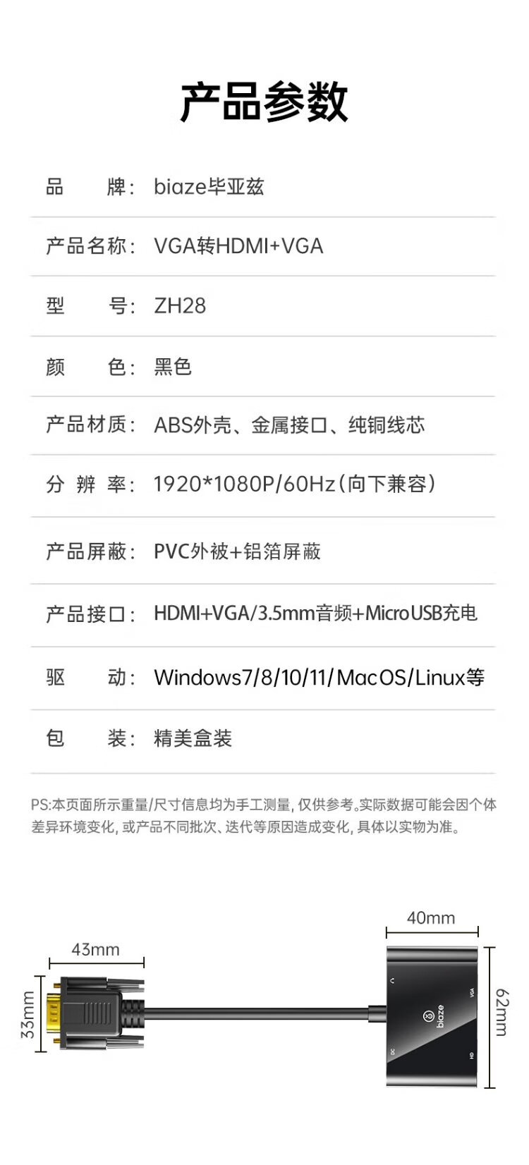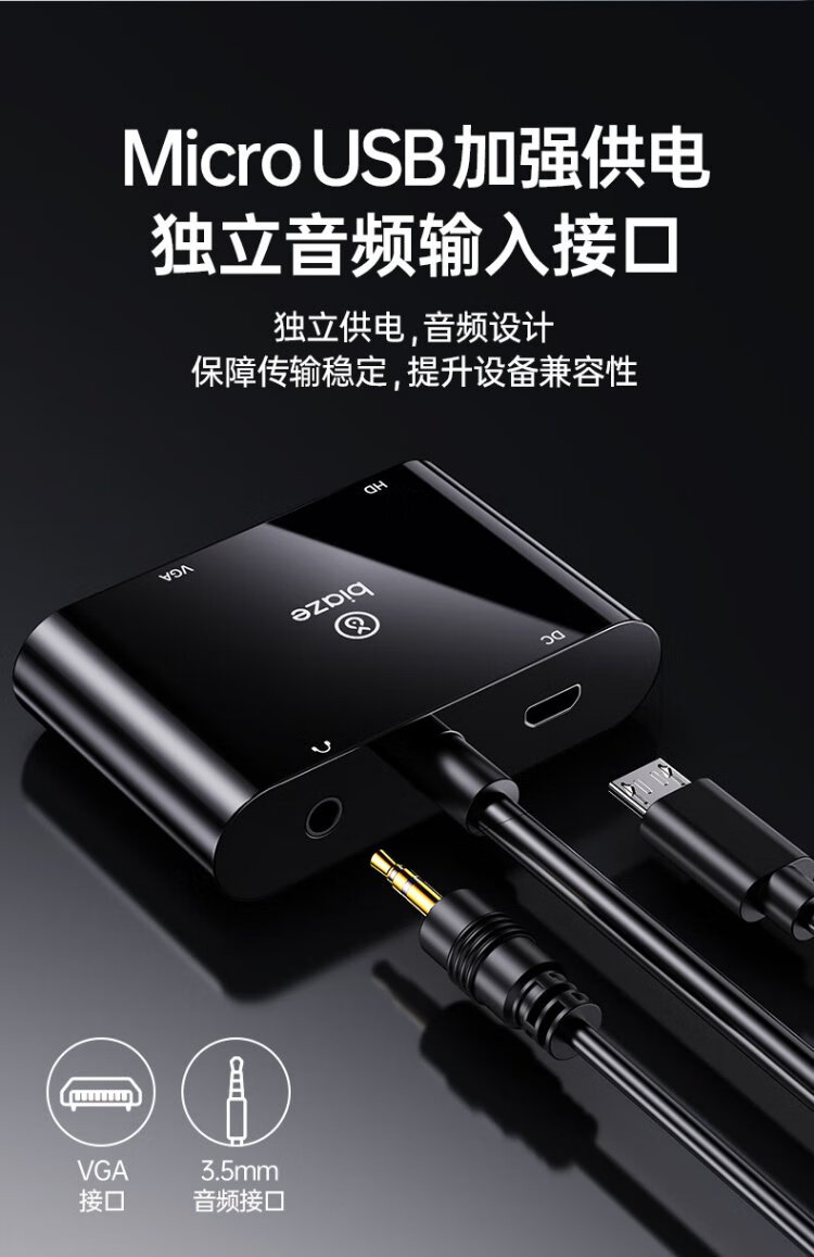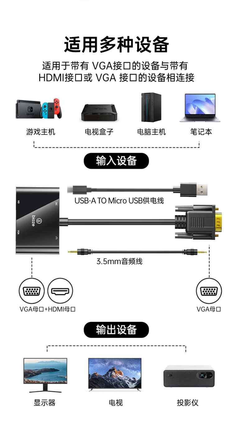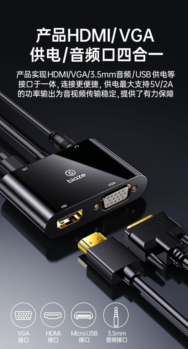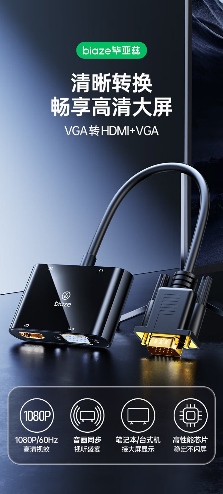 Convertidor Biaz VGA a HDMI+VGA con audio, divisor de pantalla uno a dos, dispositivo de expansión uno a dos para la misma pantalla, una entrada y dos salidas, computadora de escritorio conectada al proyector de TV