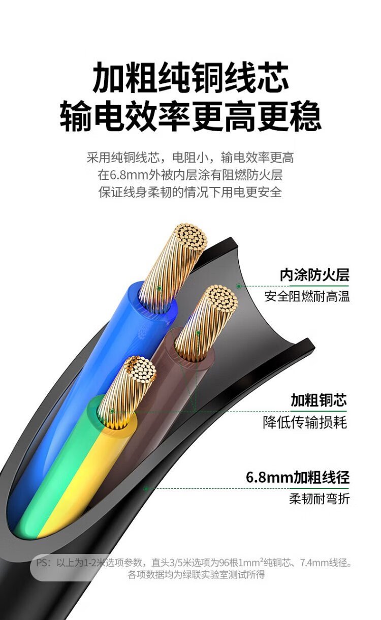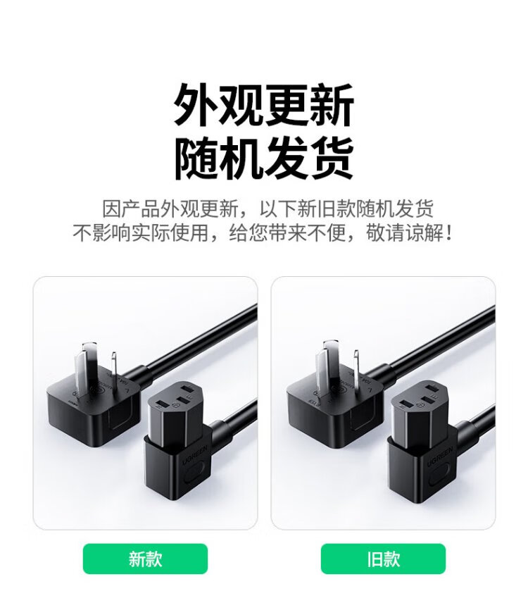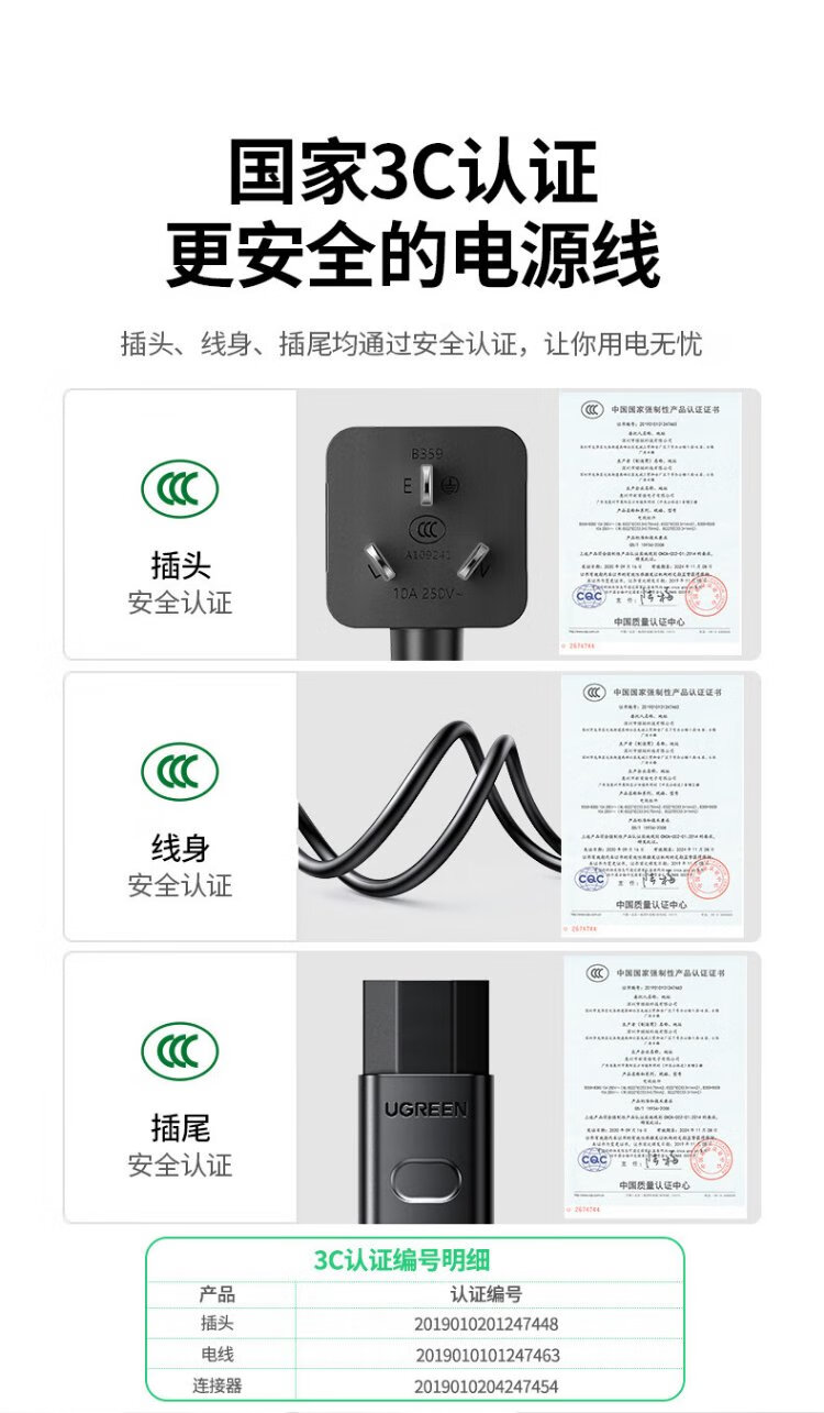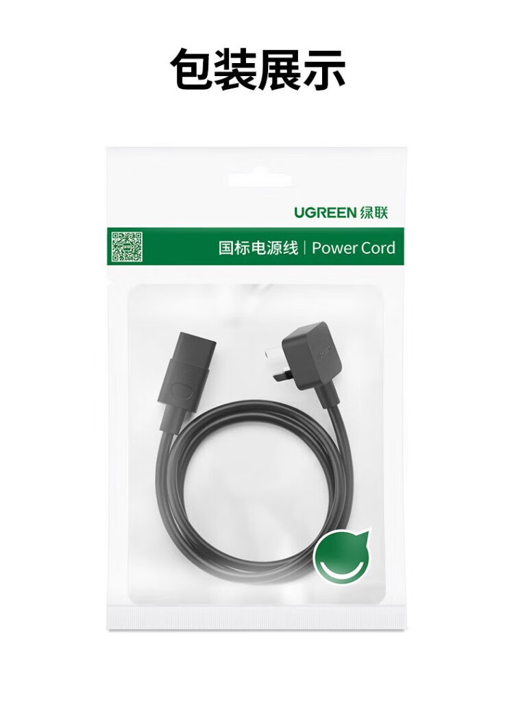 绿联国标三孔品字尾 三芯电源线 适用电脑台式主机显示器电炒锅电饭煲电子秤打印机连接线 1米 30564
