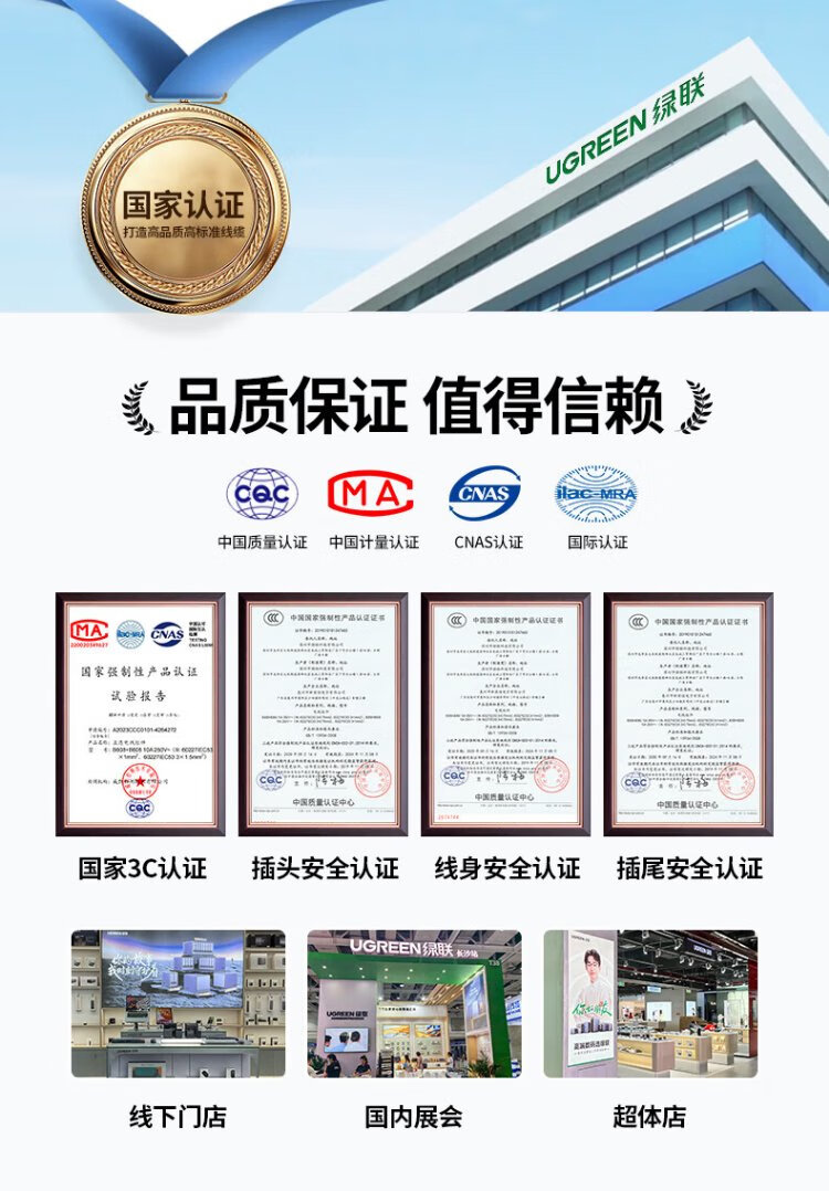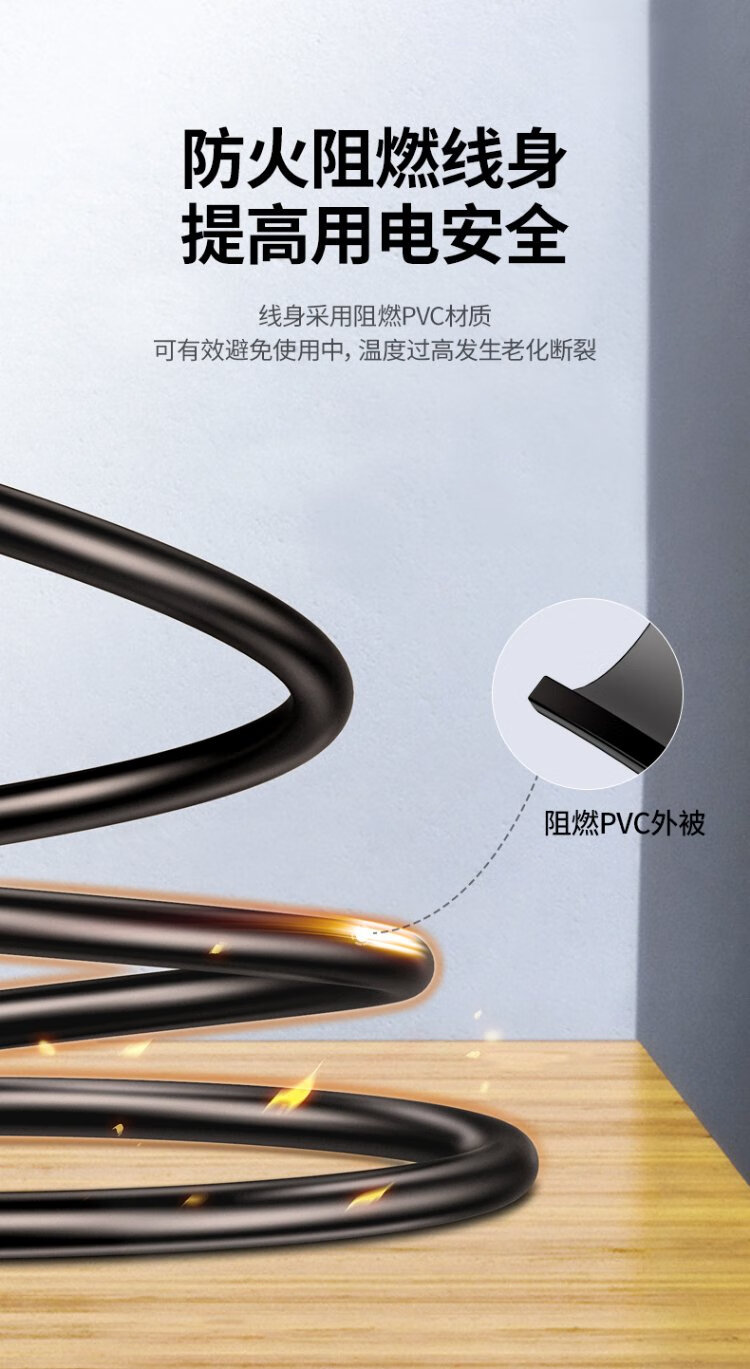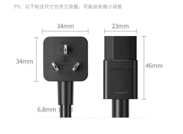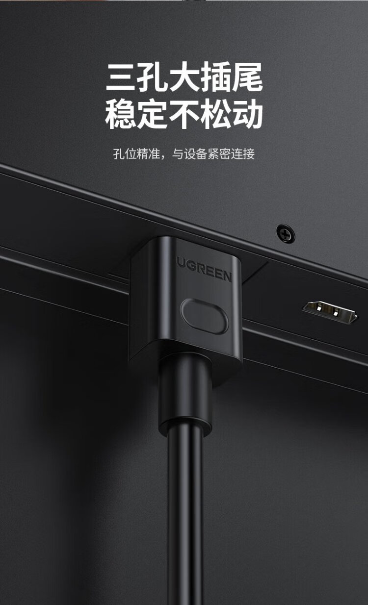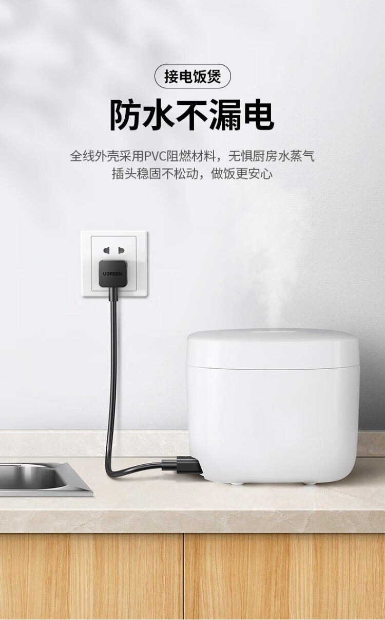 绿联国标三孔品字尾 三芯电源线 适用电脑台式主机显示器电炒锅电饭煲电子秤打印机连接线 1米 30564