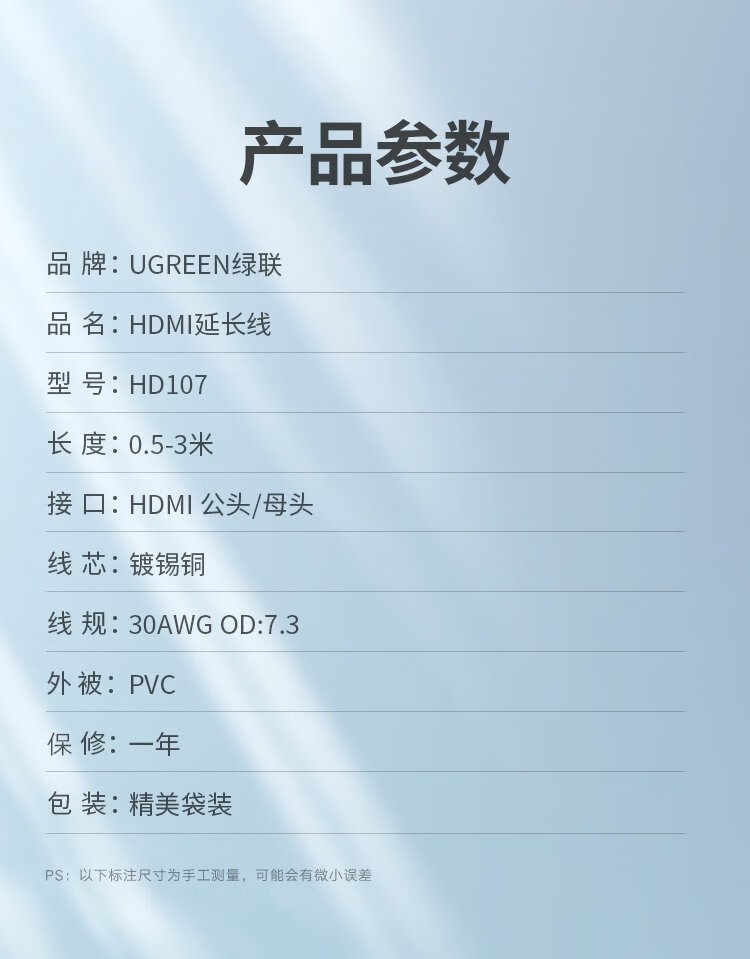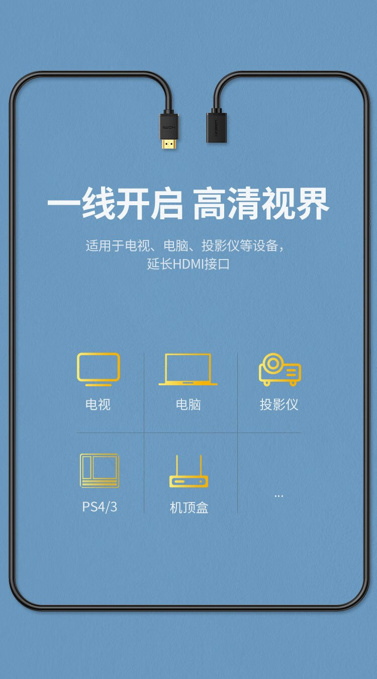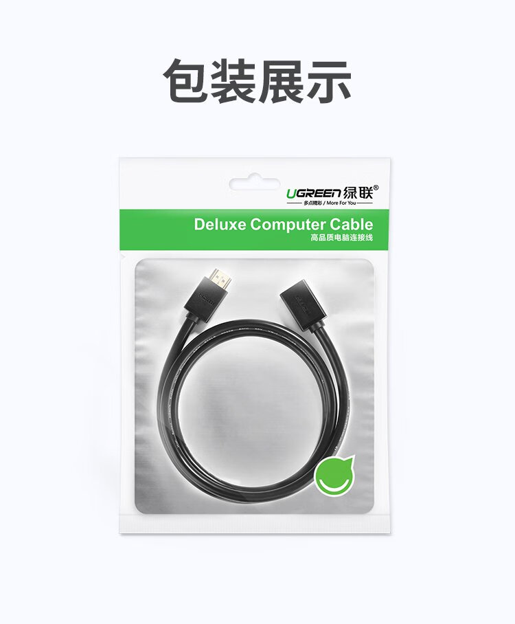 绿联 HDMI延长线公对母 4K数字高清线 3D视频线 笔记本电脑电视显示器投影仪数据连接线 3米80646