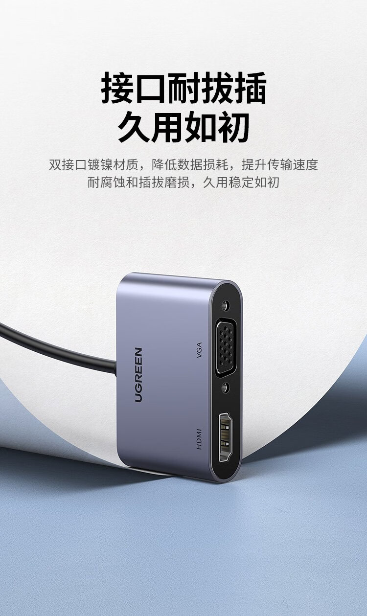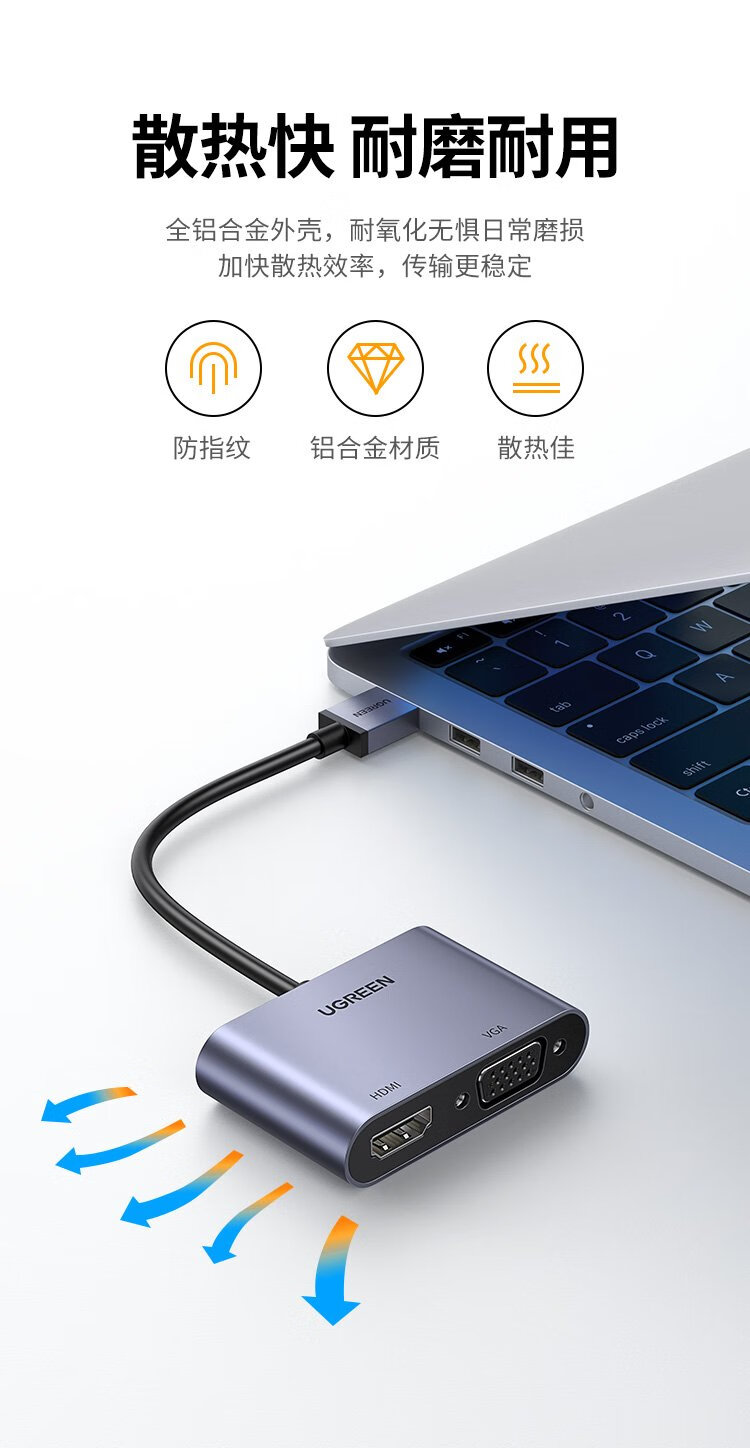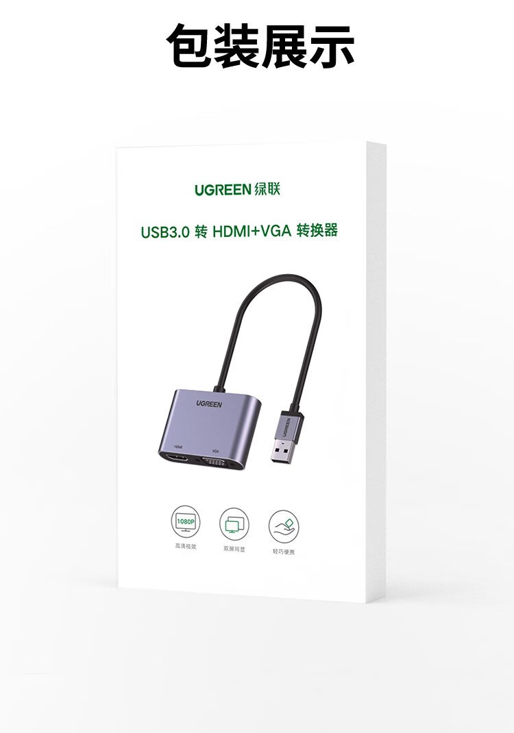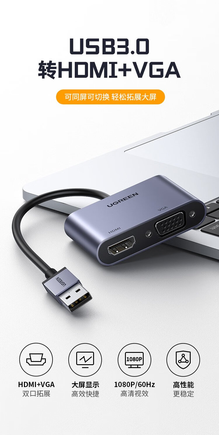 绿联USB3.0转HDMI/VGA转换器 扩展坞高清一分二分配器适用笔记本电脑显卡接电视投影仪转接线20518