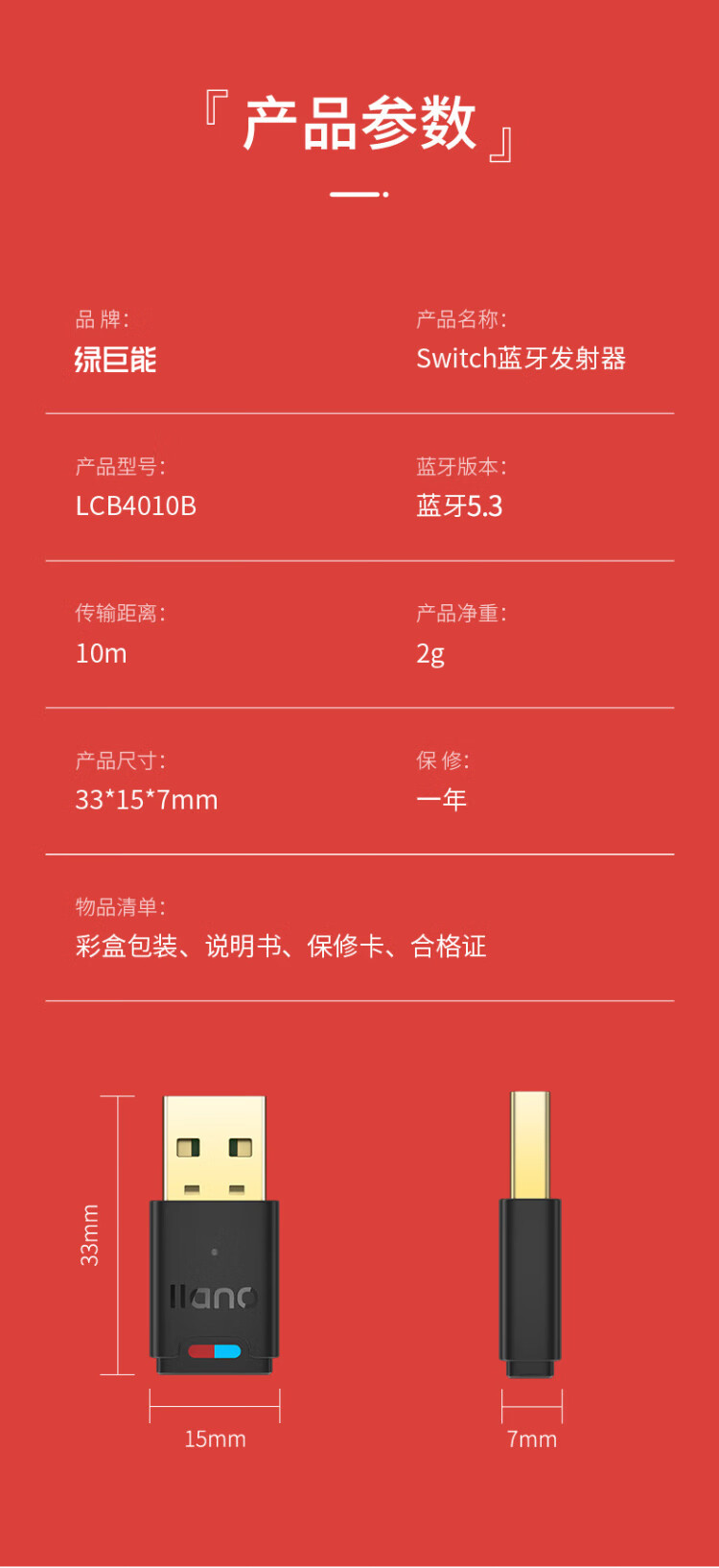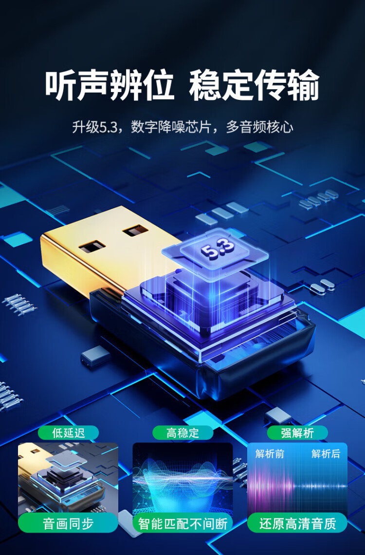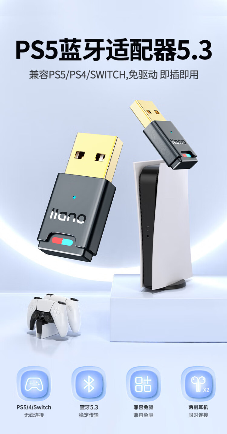 Llano USB Bluetooth adapter 5.3 game model suitable for PS5/PS4/Switch Bluetooth transmitter receiver desktop computer with headphones and audio driver-free external