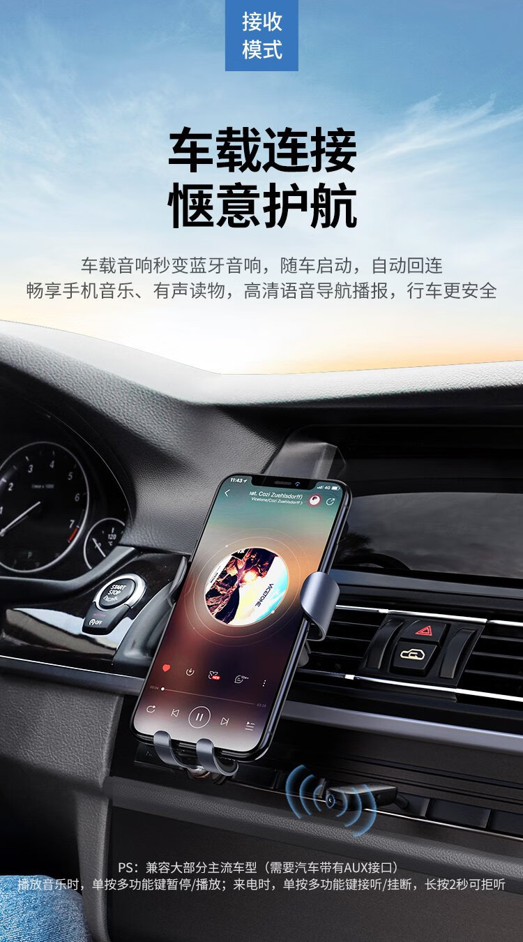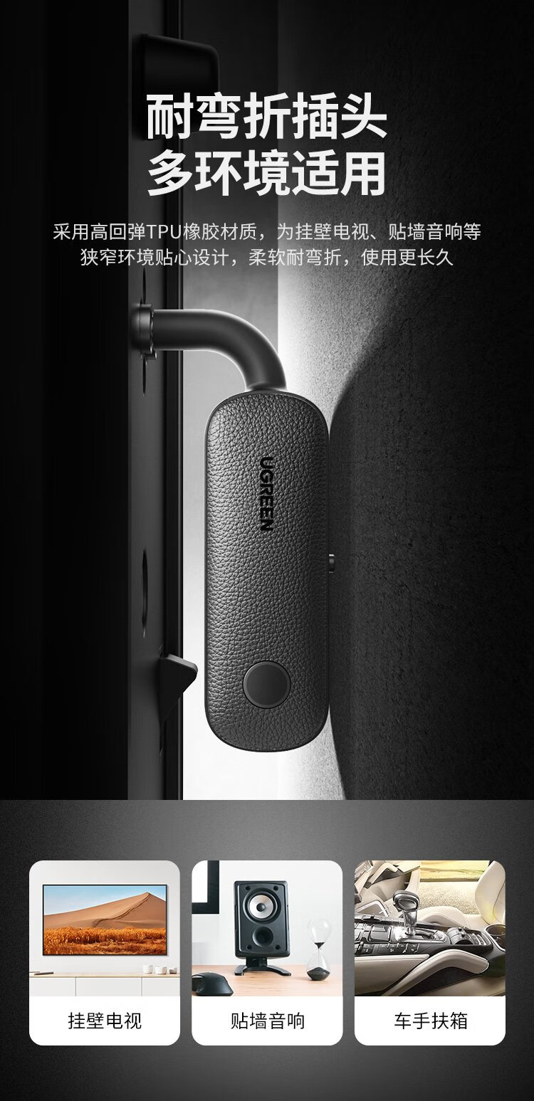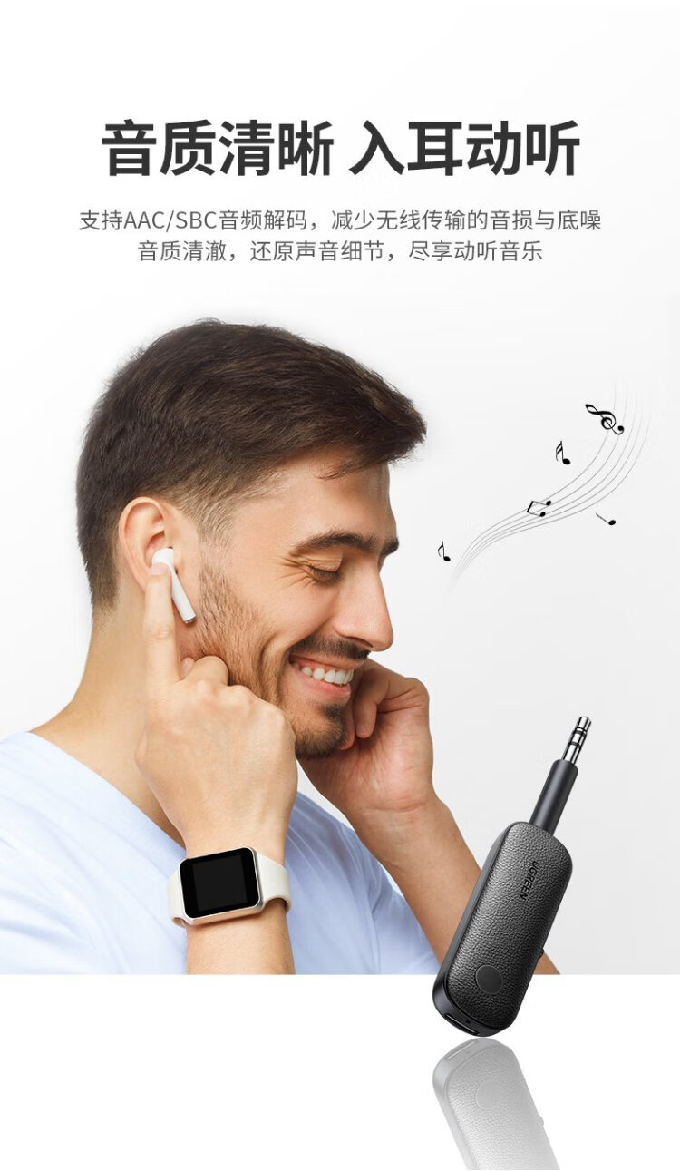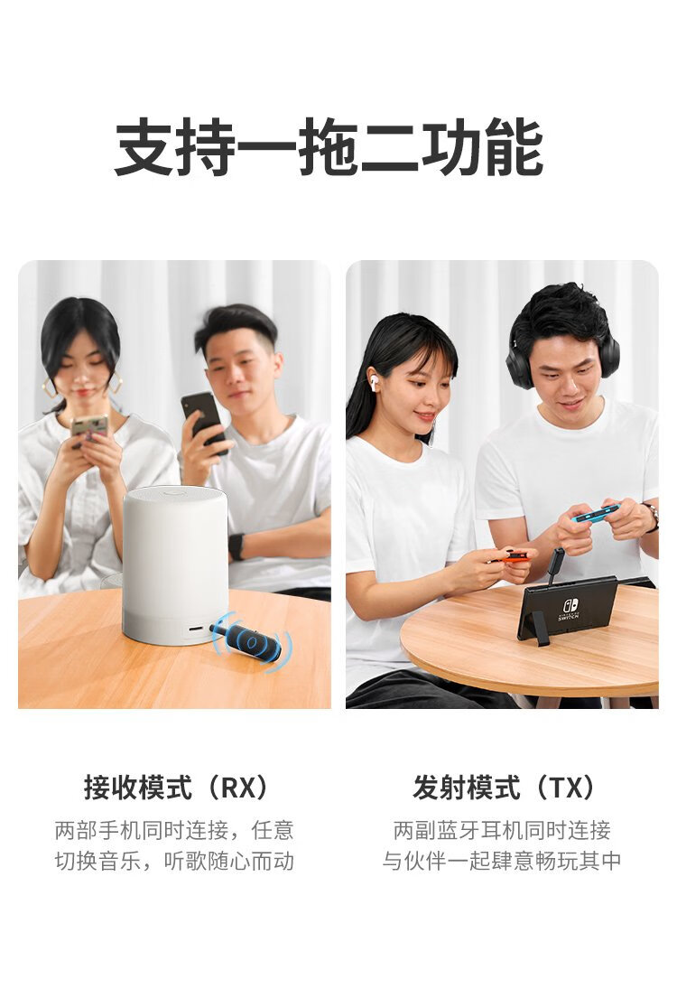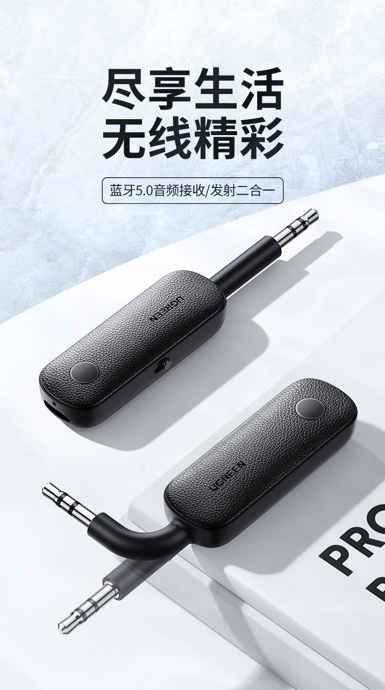 绿联蓝牙接收器发射器5.0版3.5mm无线音频适配器手机连接aux车载音响Switch电视NS接耳机音箱一拖二