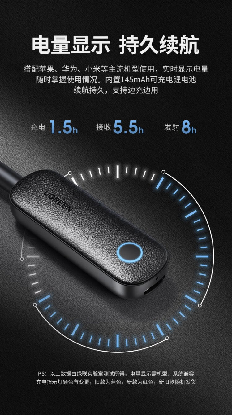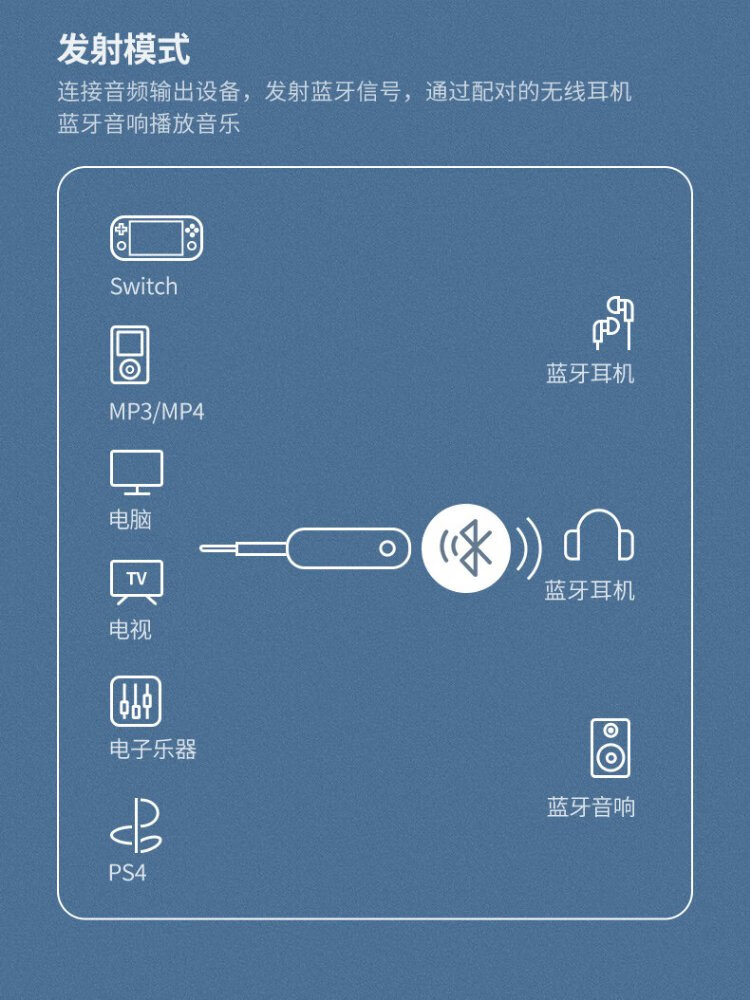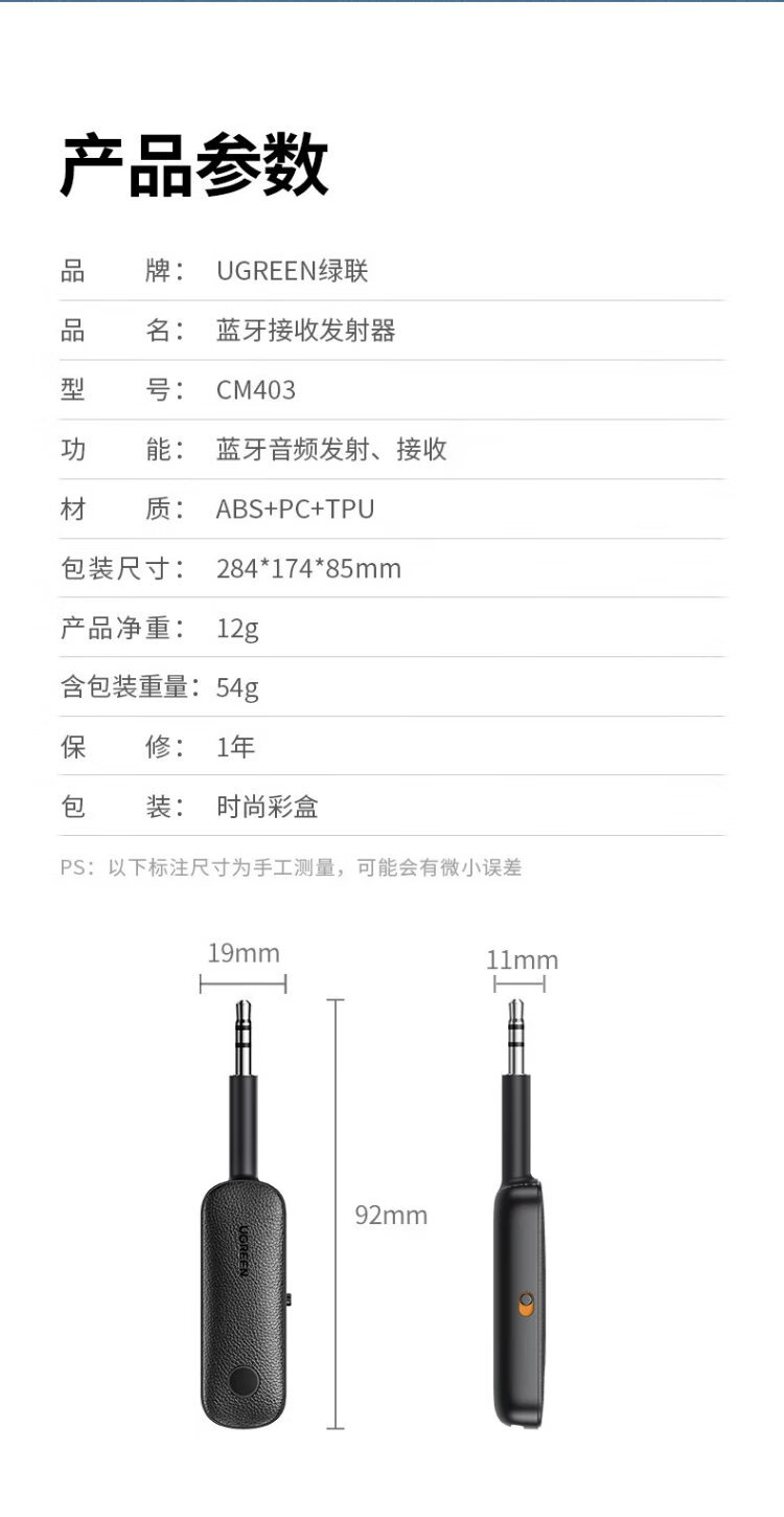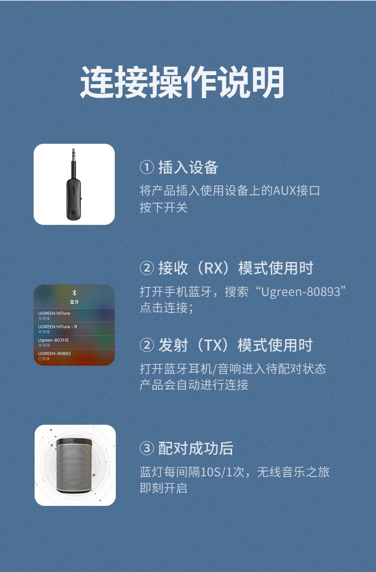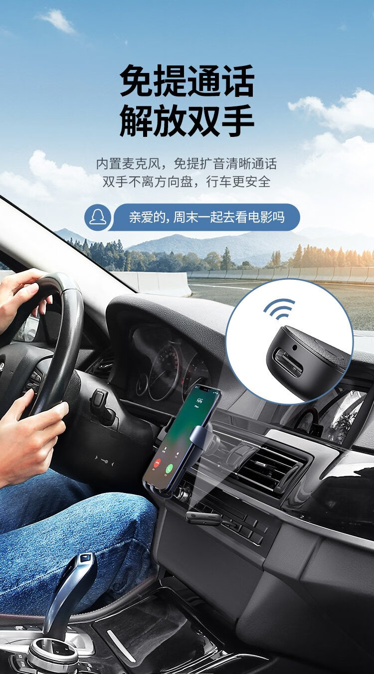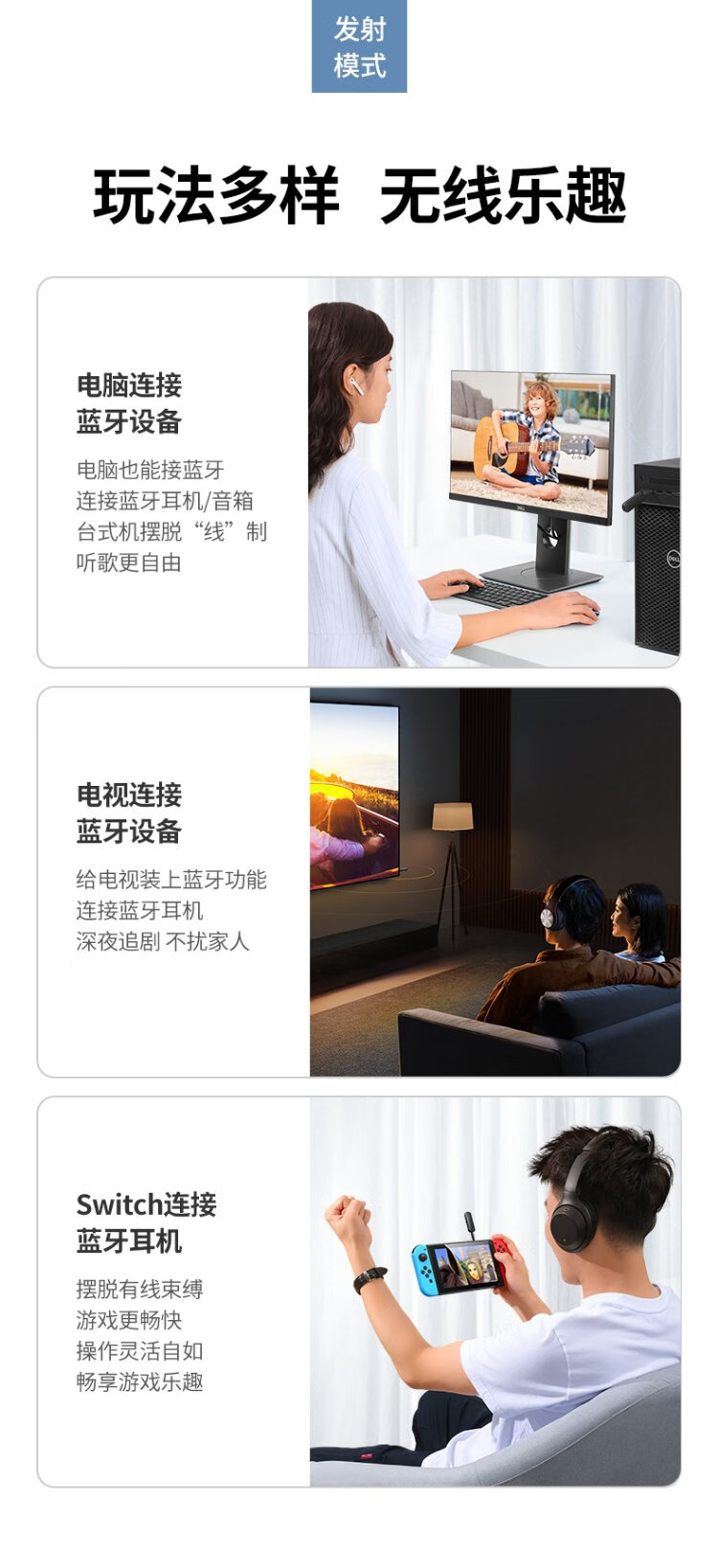 绿联蓝牙接收器发射器5.0版3.5mm无线音频适配器手机连接aux车载音响Switch电视NS接耳机音箱一拖二