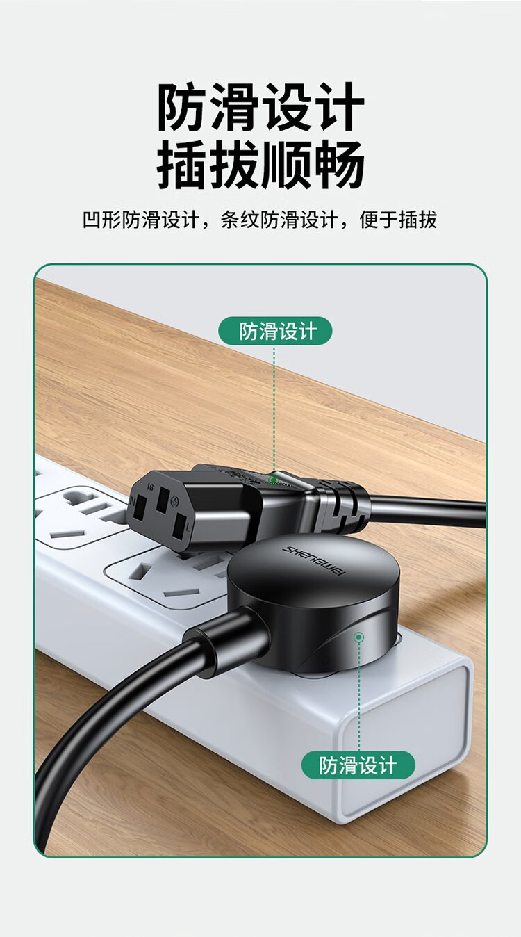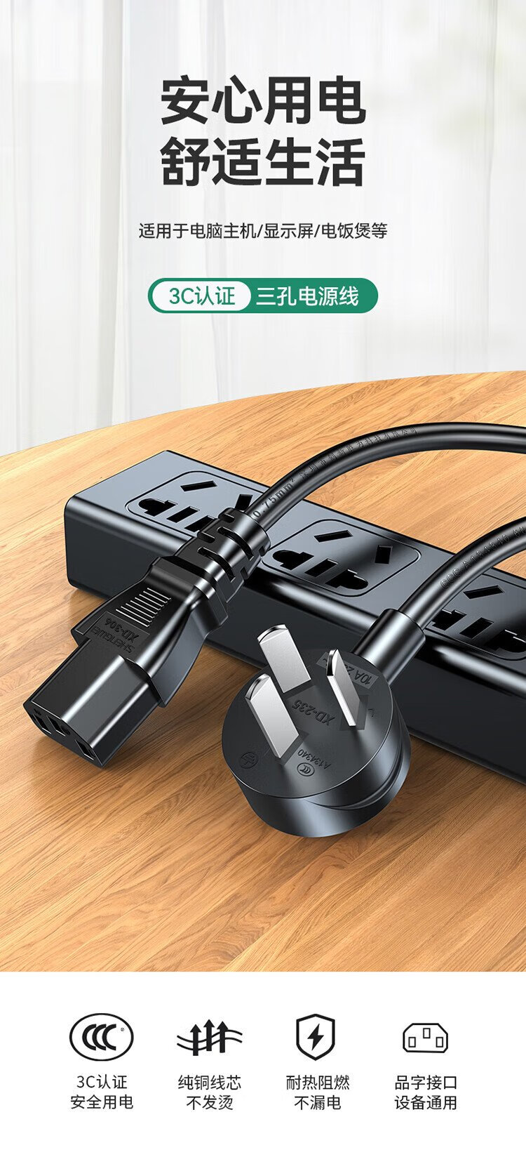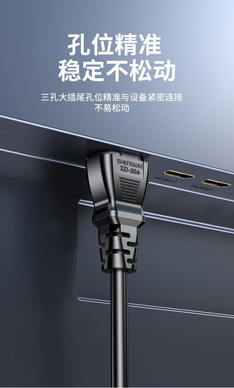胜为(shengwei) 电脑显示器主机电源线三芯品字尾带3C安全认证 适用于台式机电饭煲打印机电视机2米 APT0020G