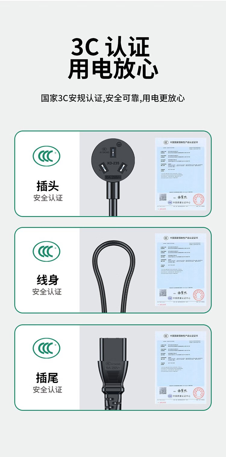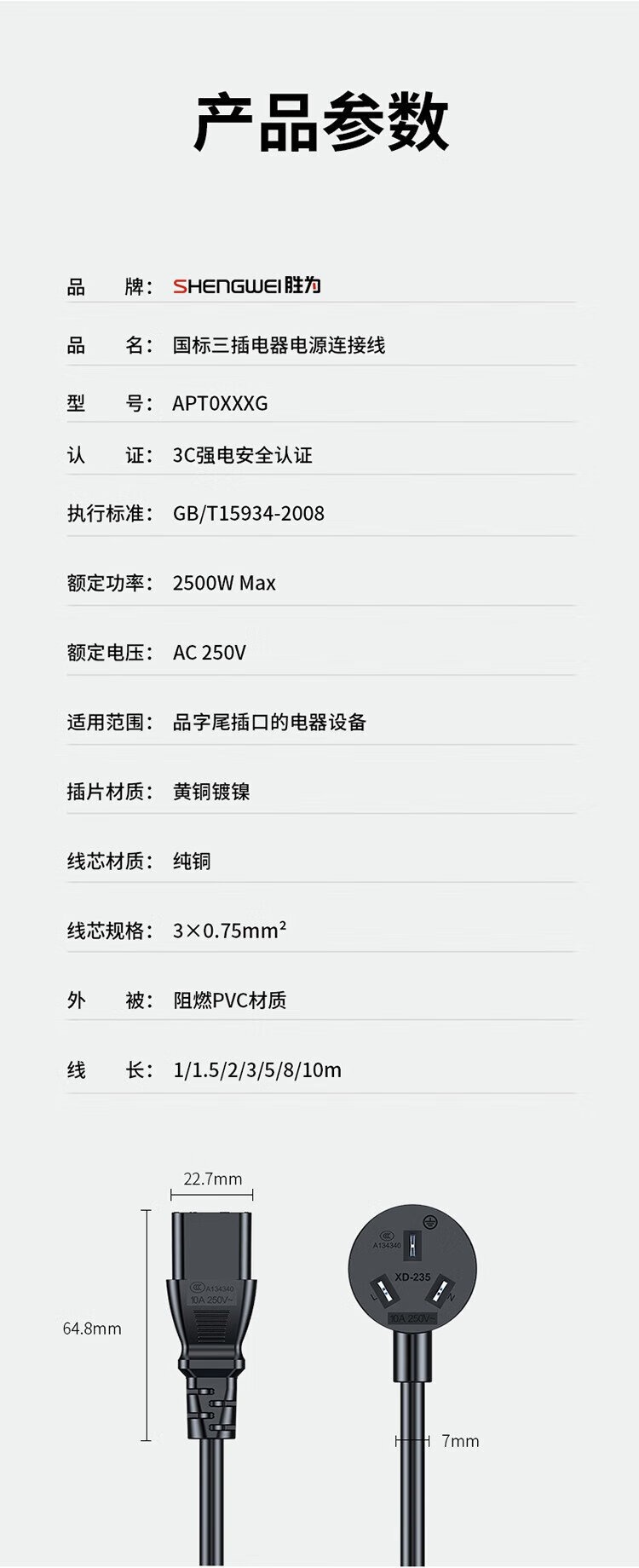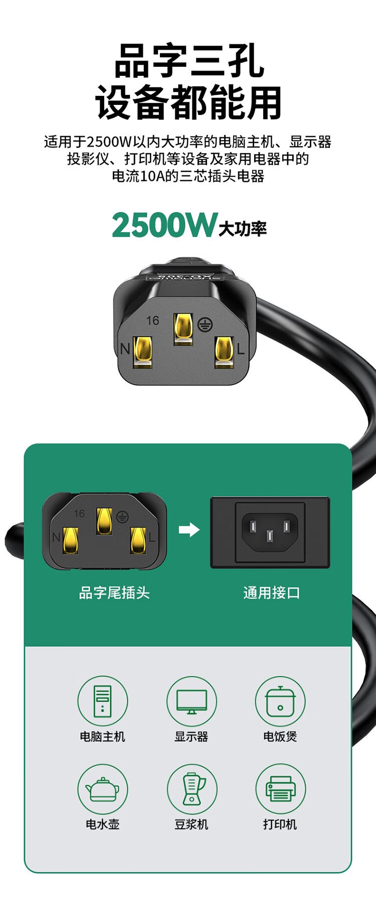 胜为(shengwei) 电脑显示器主机电源线三芯品字尾带3C安全认证 适用于台式机电饭煲打印机电视机2米 APT0020G
