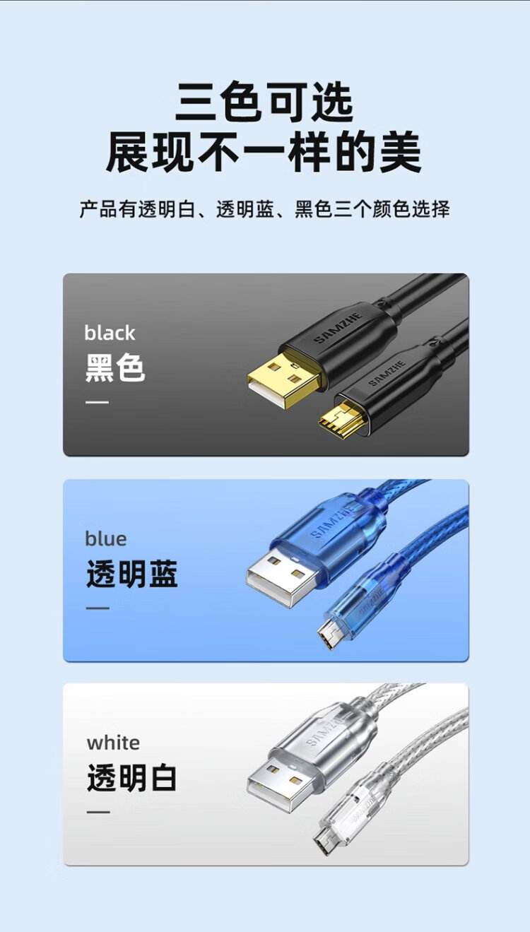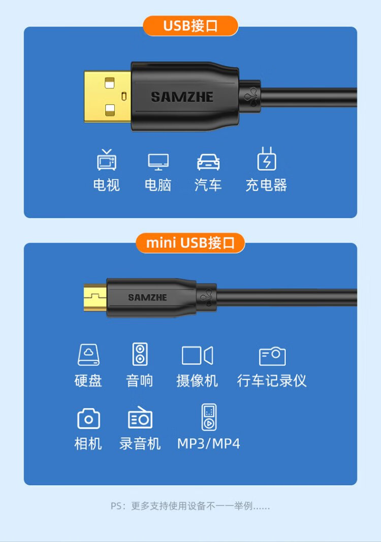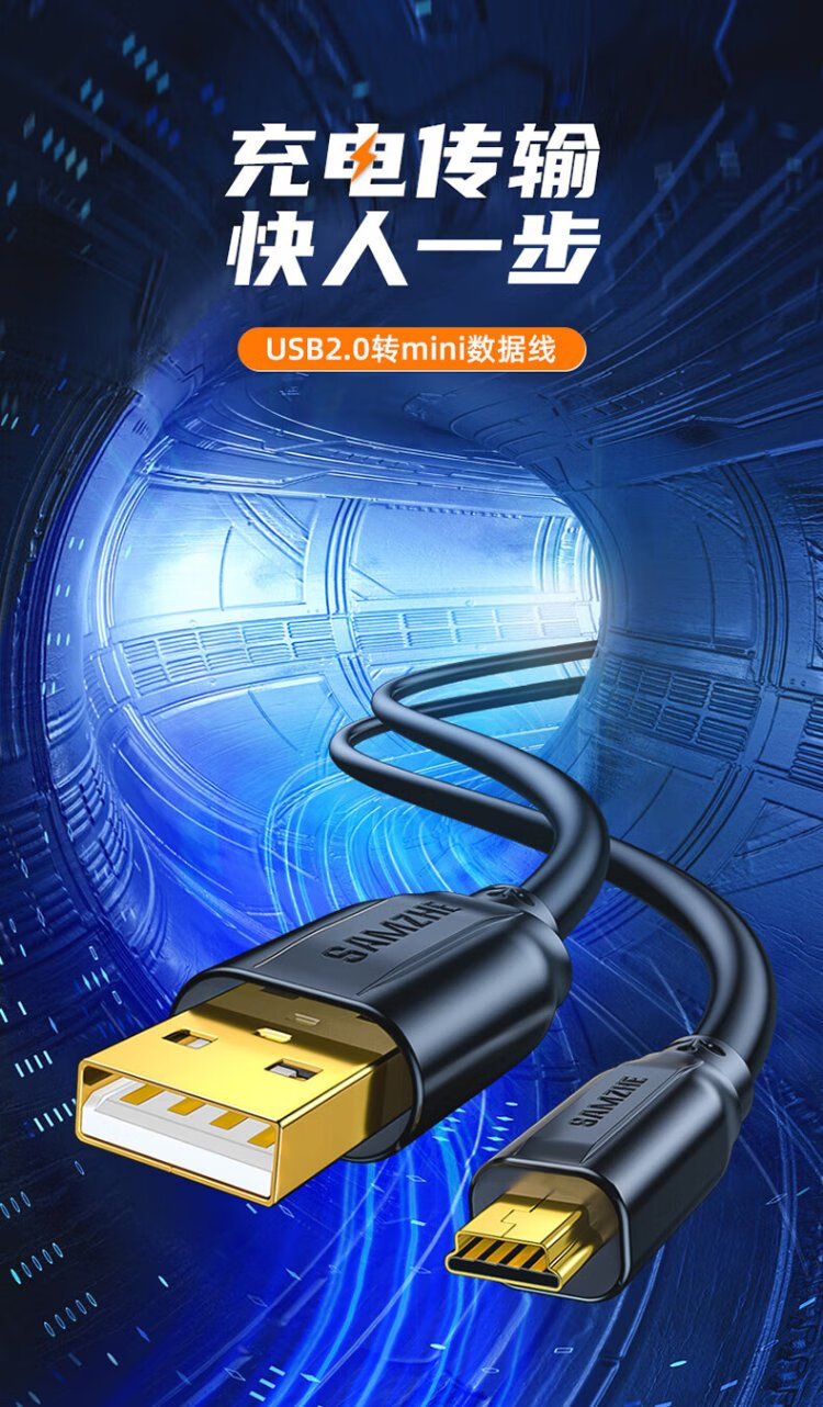 Shanze Cable de datos USB2.0 a Mini USB Cable de carga en forma de T adecuado para tableta disco duro móvil grabadora de conducción cámara digital cámara 1 metro UBR10