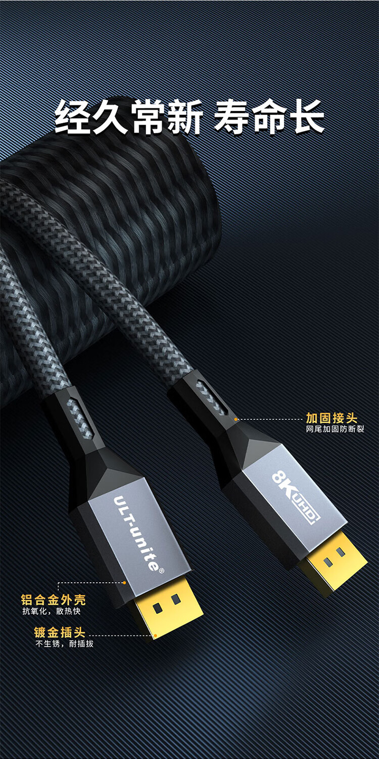 ULT-unite DP-Kabel Version 1.4 8K60Hz High-Definition-Kabel 4K144Hz Stecker-zu-Stecker-Grafikkarte Computer 240Hz High Brush E-Sport-Enthusiasten Monitor Videoverbindung geflochtenes Kabel 2 Meter