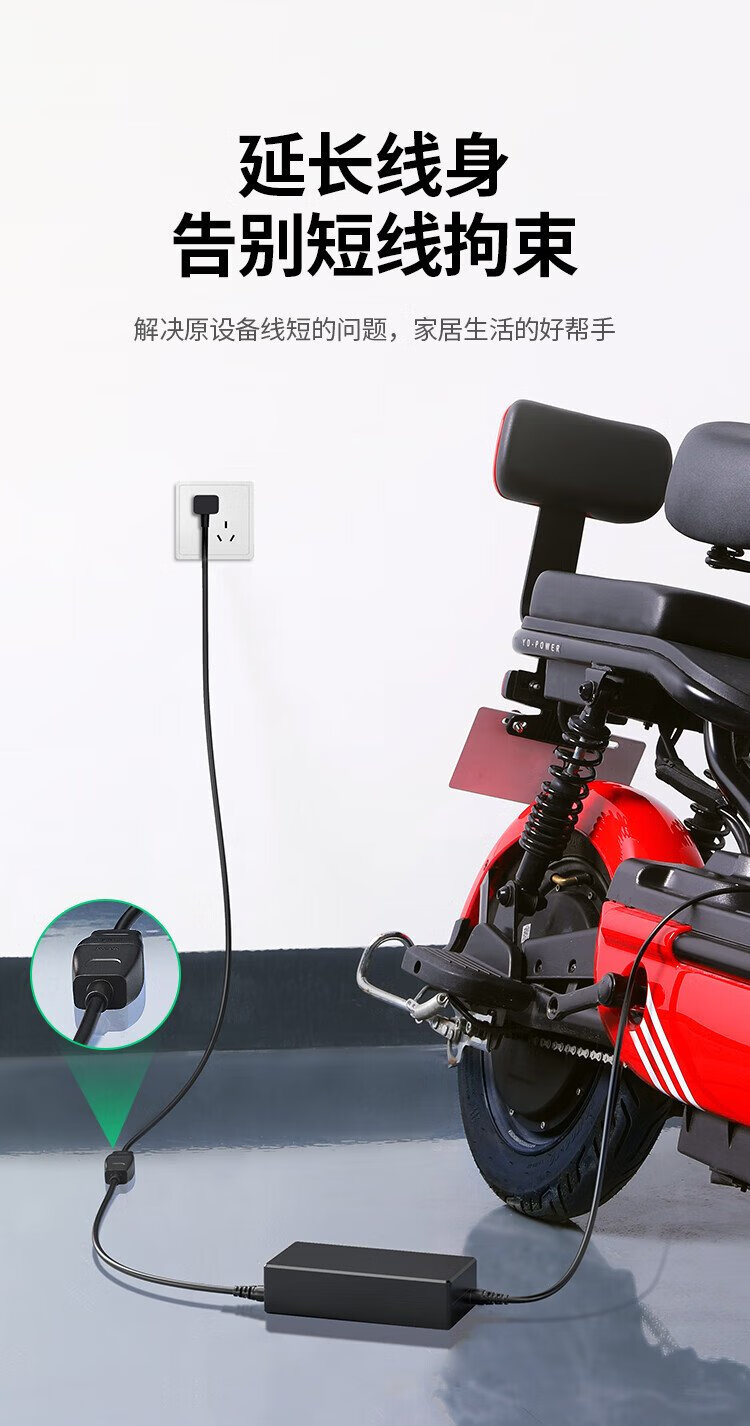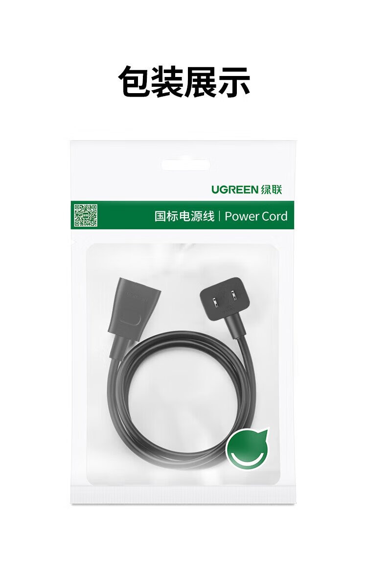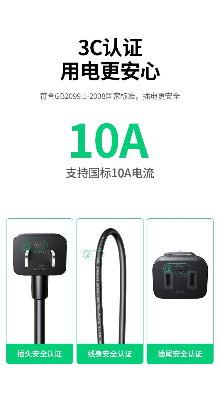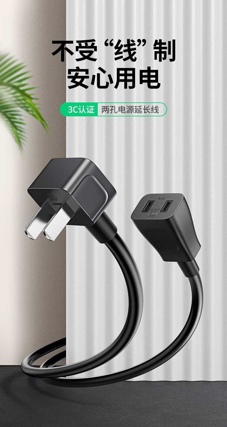 绿联电源线 二插芯主机电源延长线 适用电动车充电空调电脑监控电视机加长插头插座3米 15742