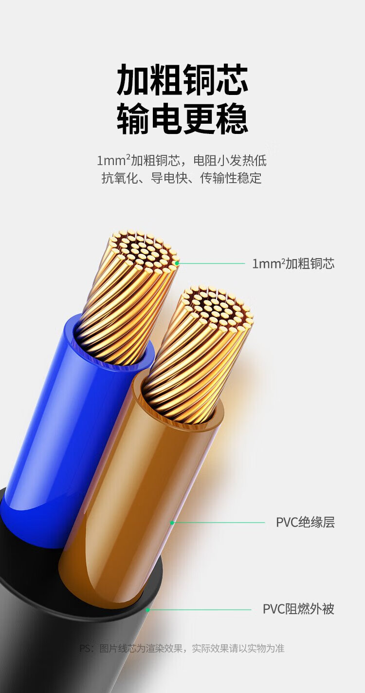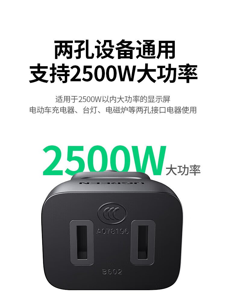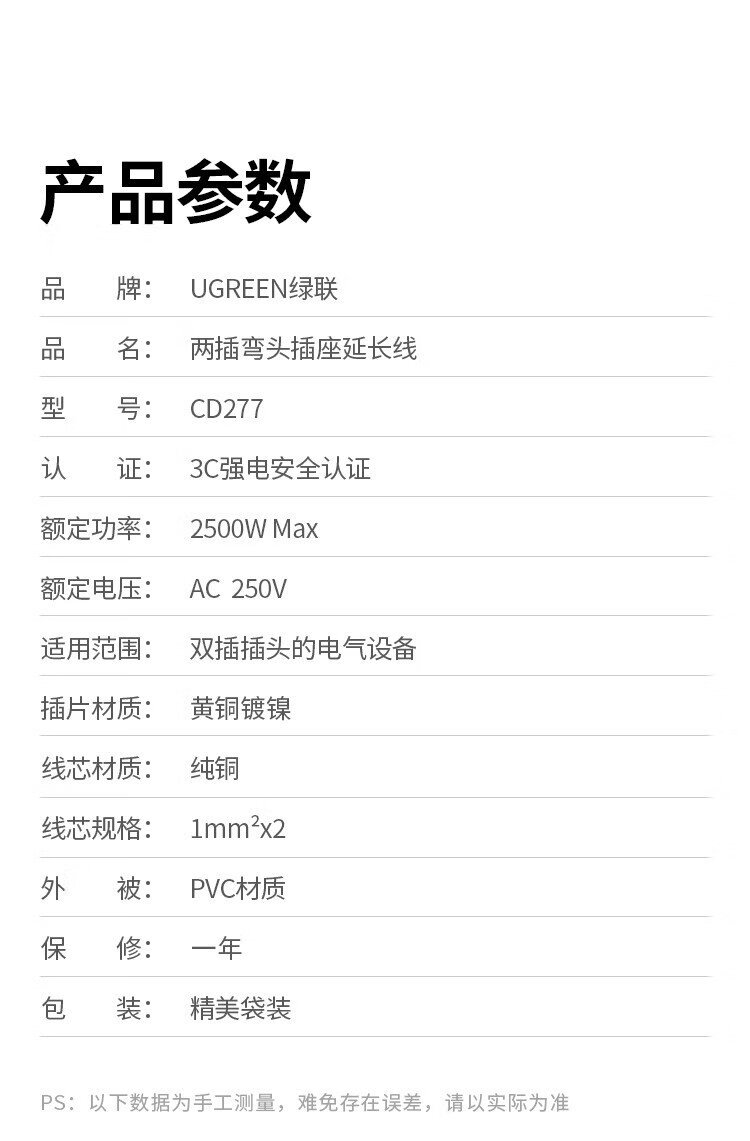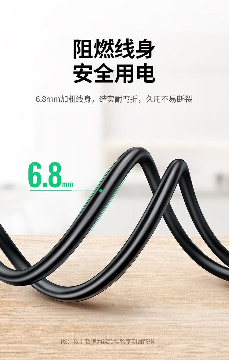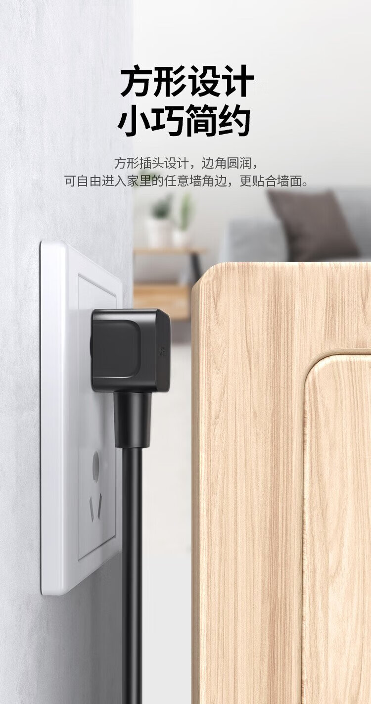 绿联电源线 二插芯主机电源延长线 适用电动车充电空调电脑监控电视机加长插头插座3米 15742