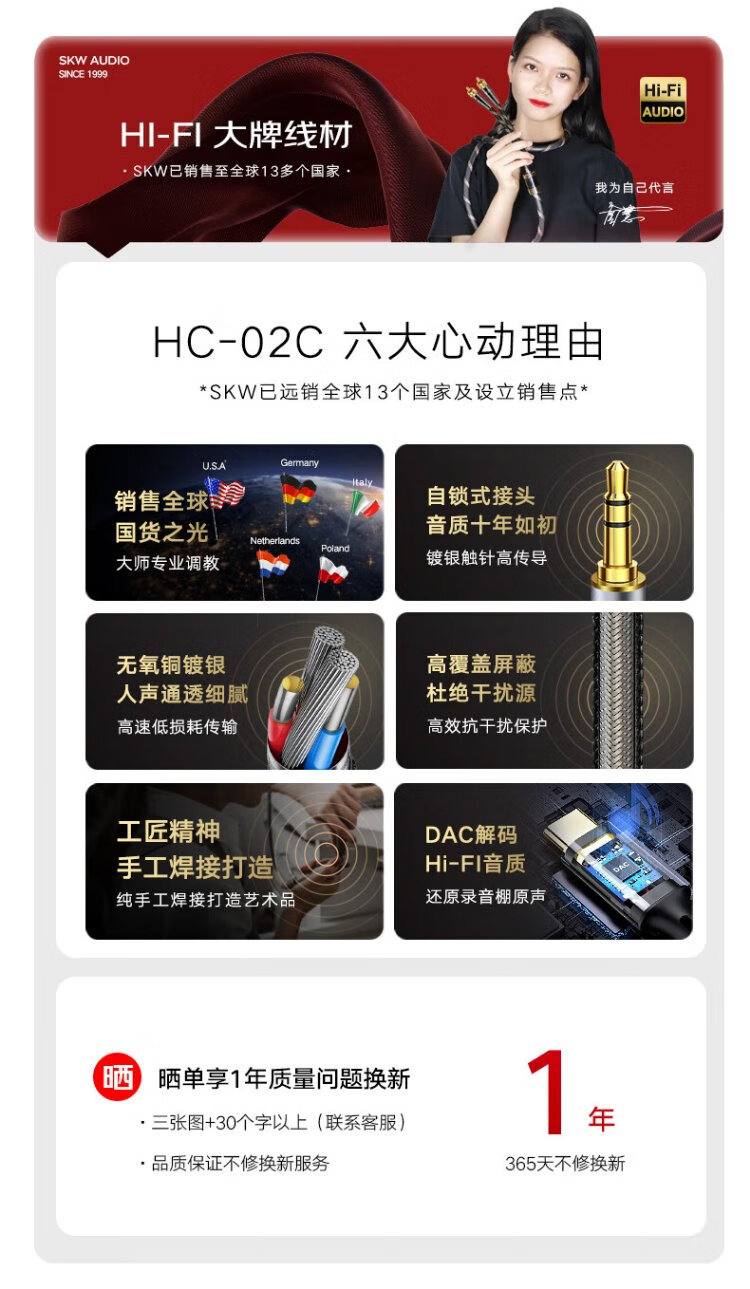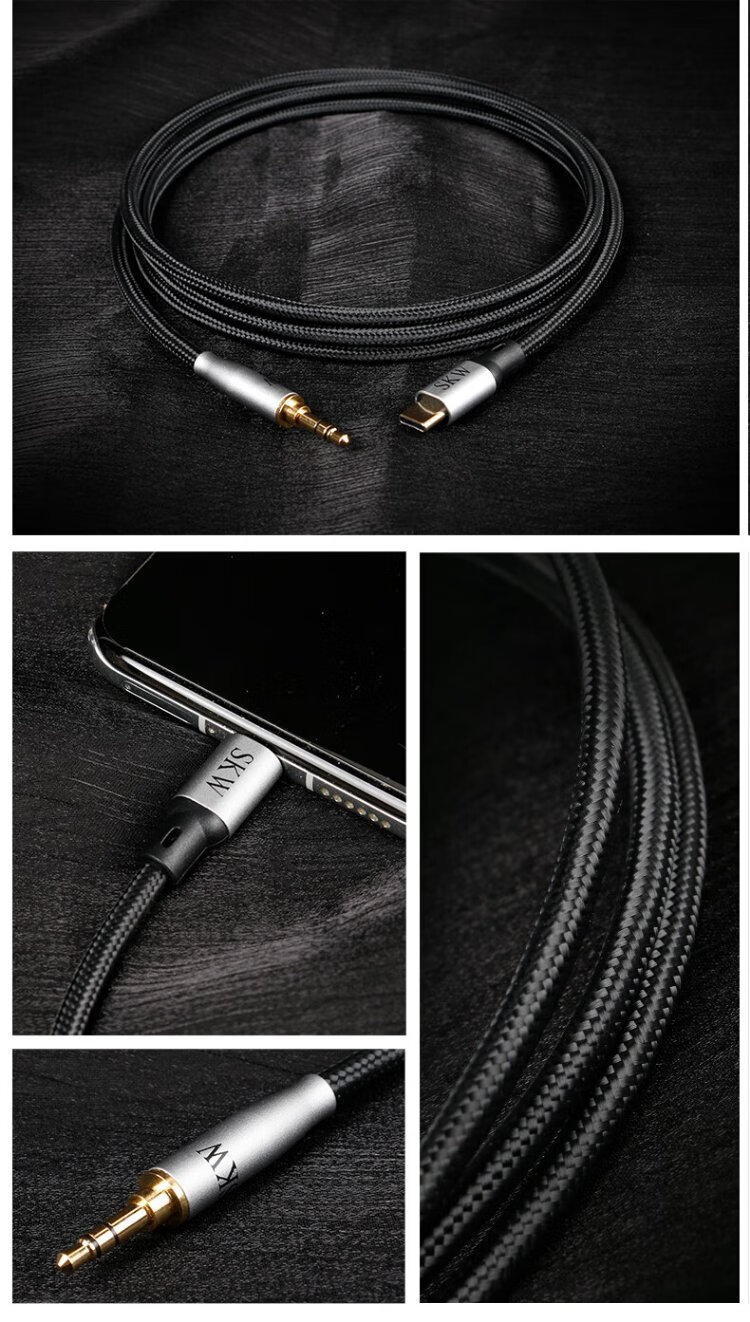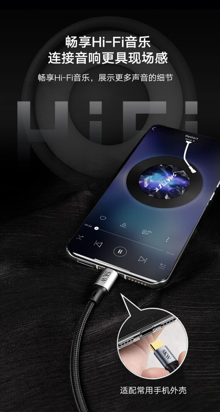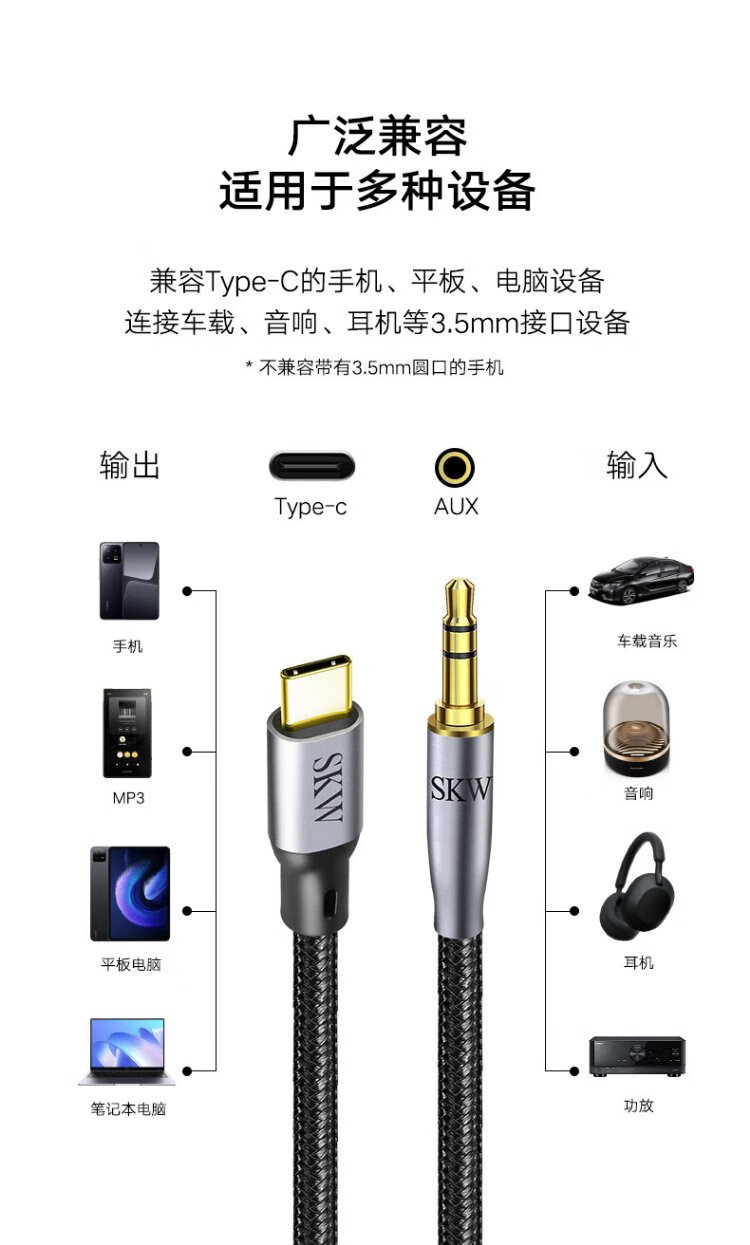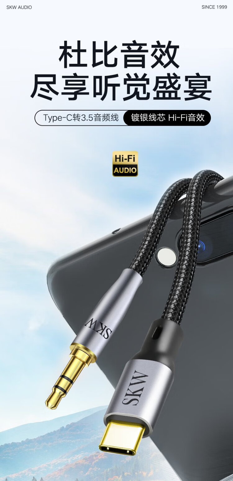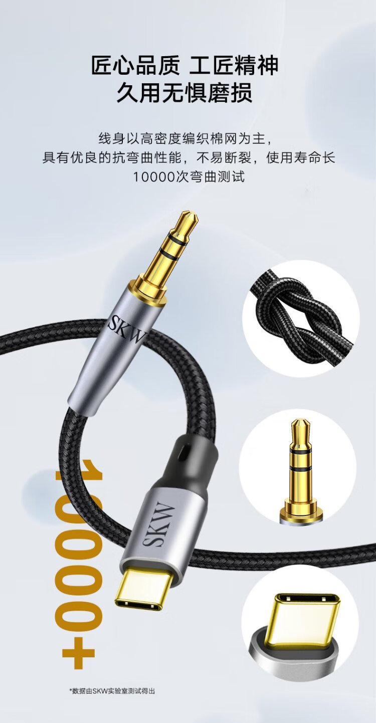 SKW 发烧级 type-c转3.5mm音频线 镀银AUX车载线 DAC解码 适苹果15/16华为安卓手机音响线 HC02C-1米