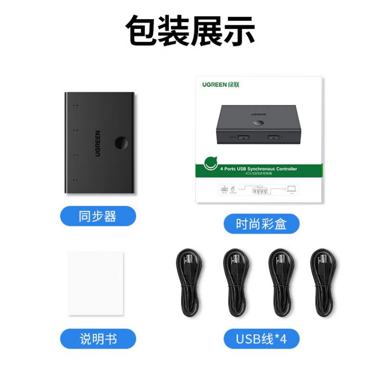 Greenlink USB synchronizer, one in and four out, keyboard and mouse connected to four computers, 1-control 4-split screen KVM switch 60101