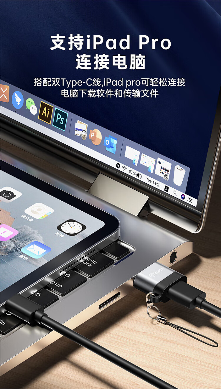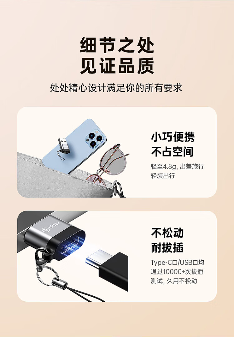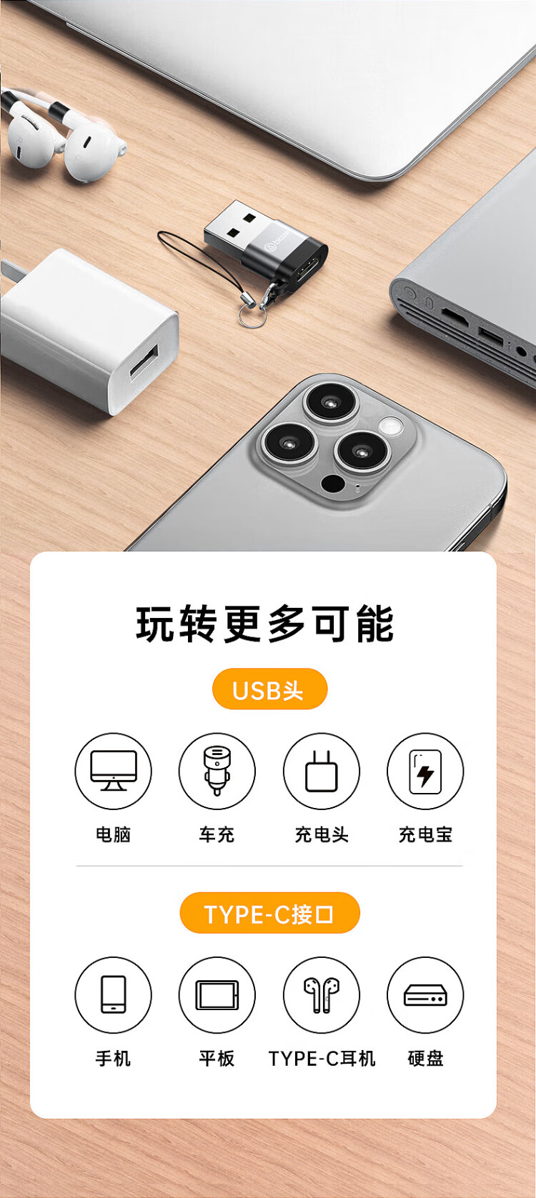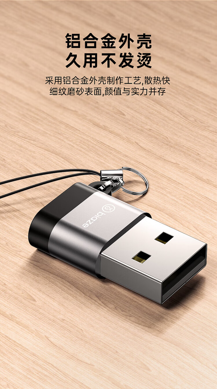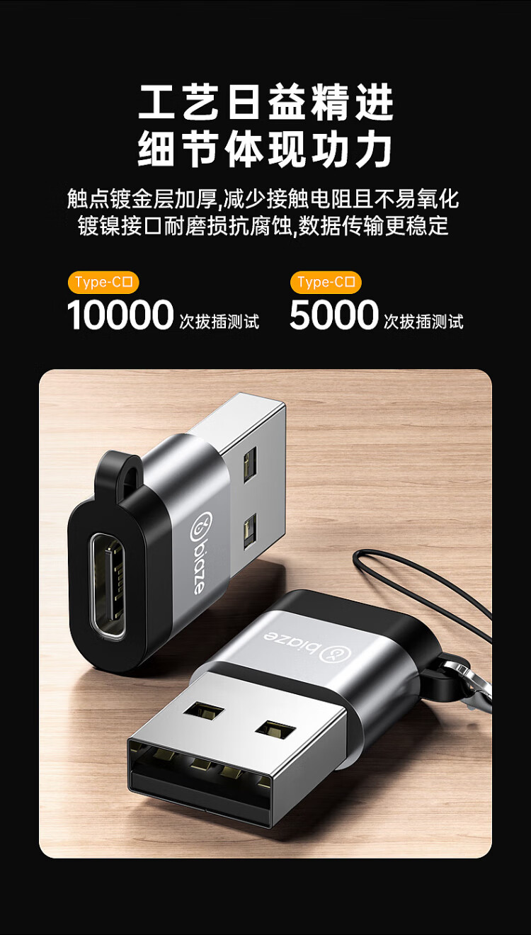 毕亚兹 USB转换Type-C口转接头OTG苹果16/15快充电线转换器适用carplay车载耳机华为手机笔记本台式电脑