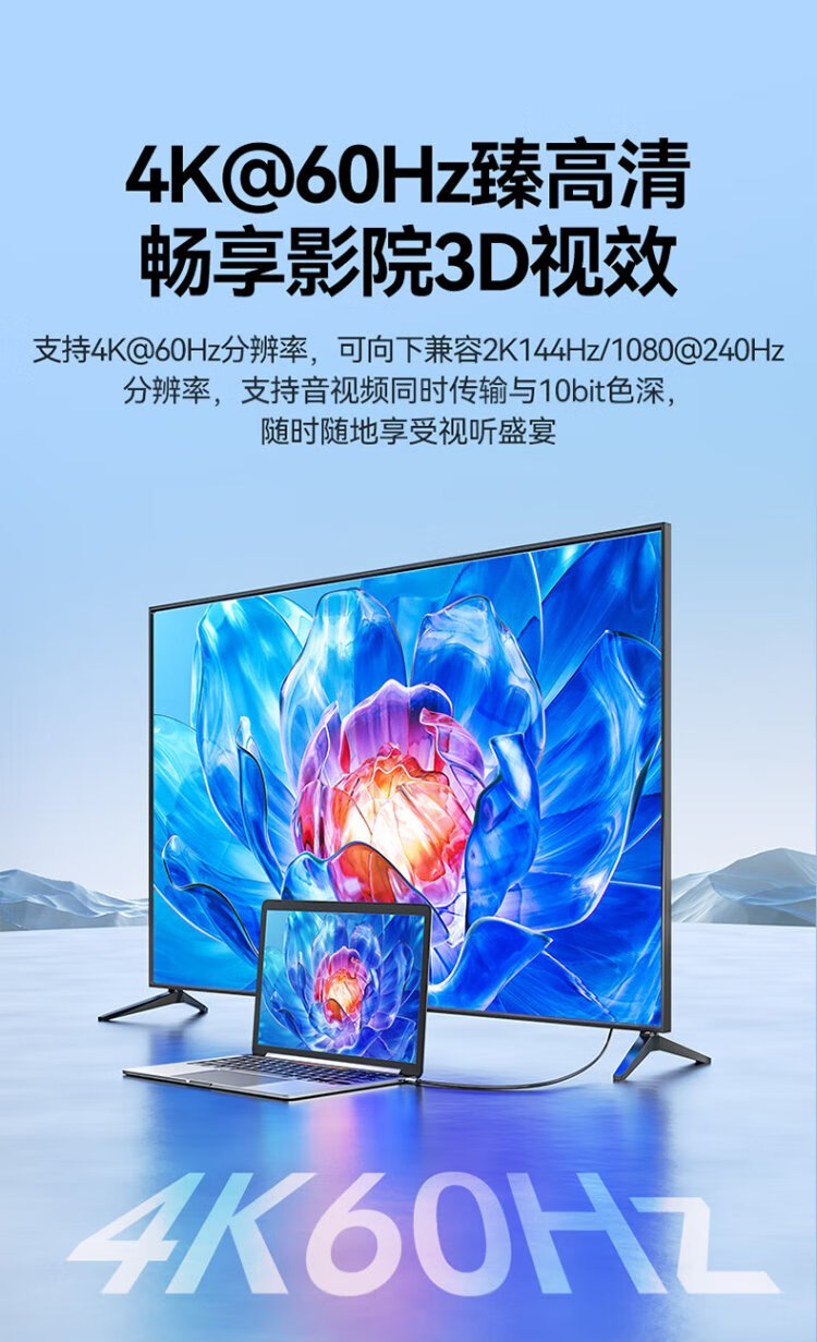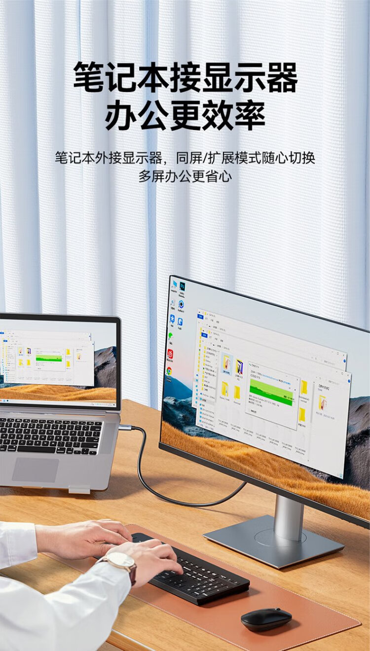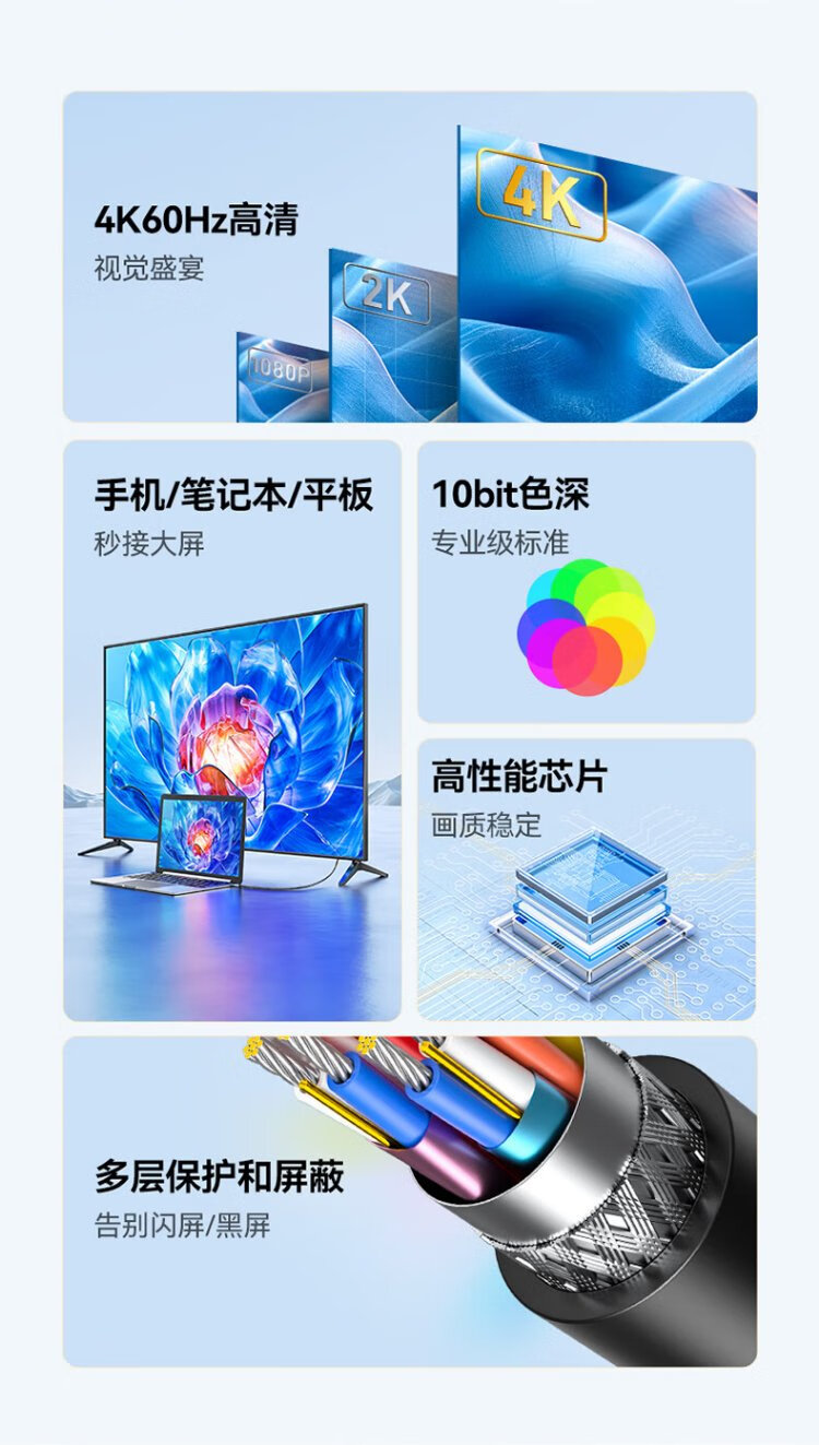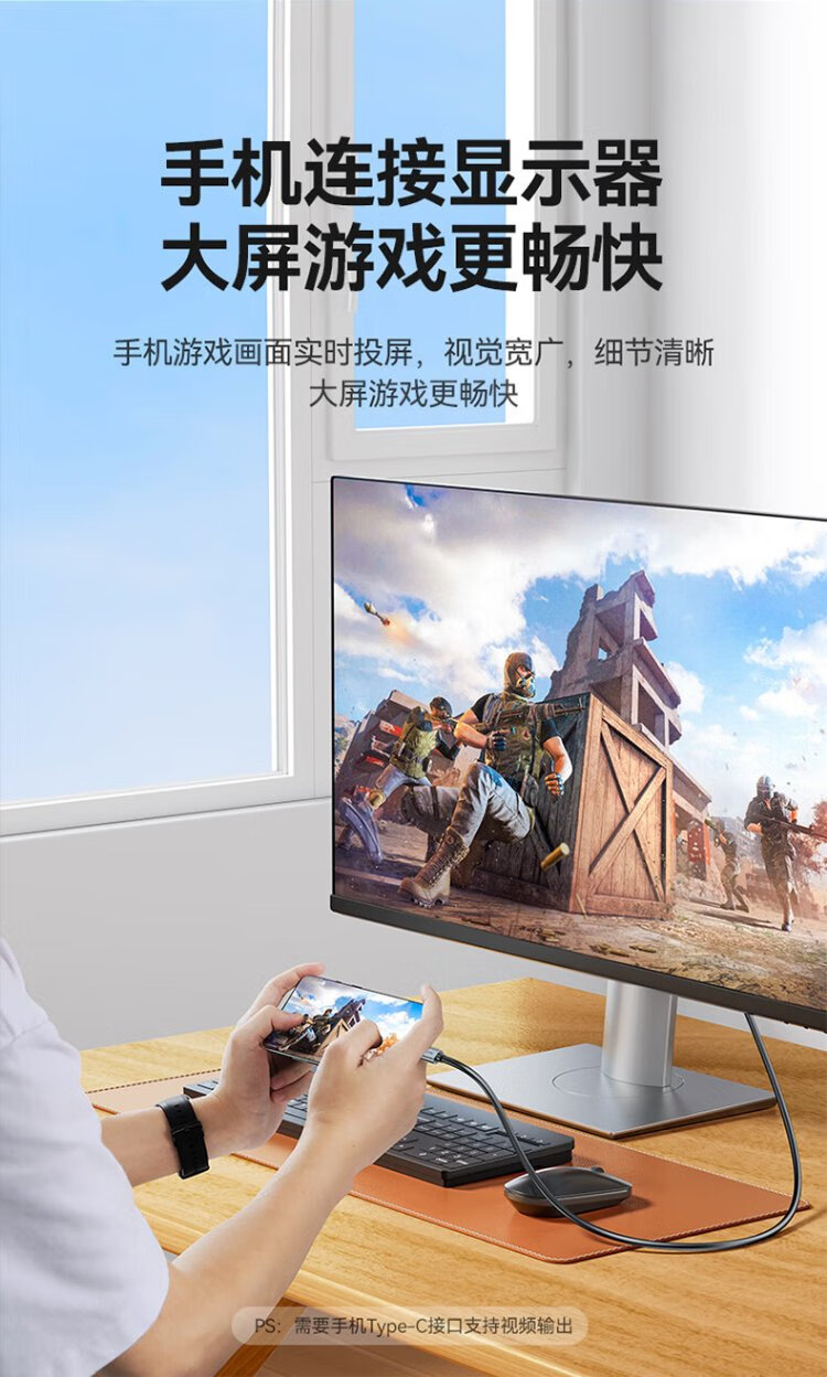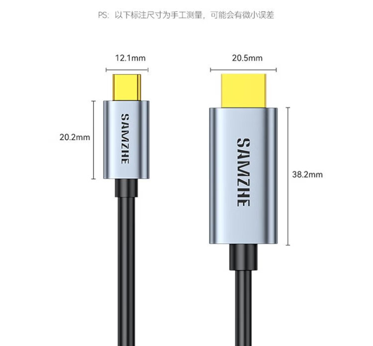 山泽Type-C转HDMI线雷电4/5转换器USB-C转接头高清4K60/2K144Hz投屏适用苹果16/15/iPad手机笔记本电脑