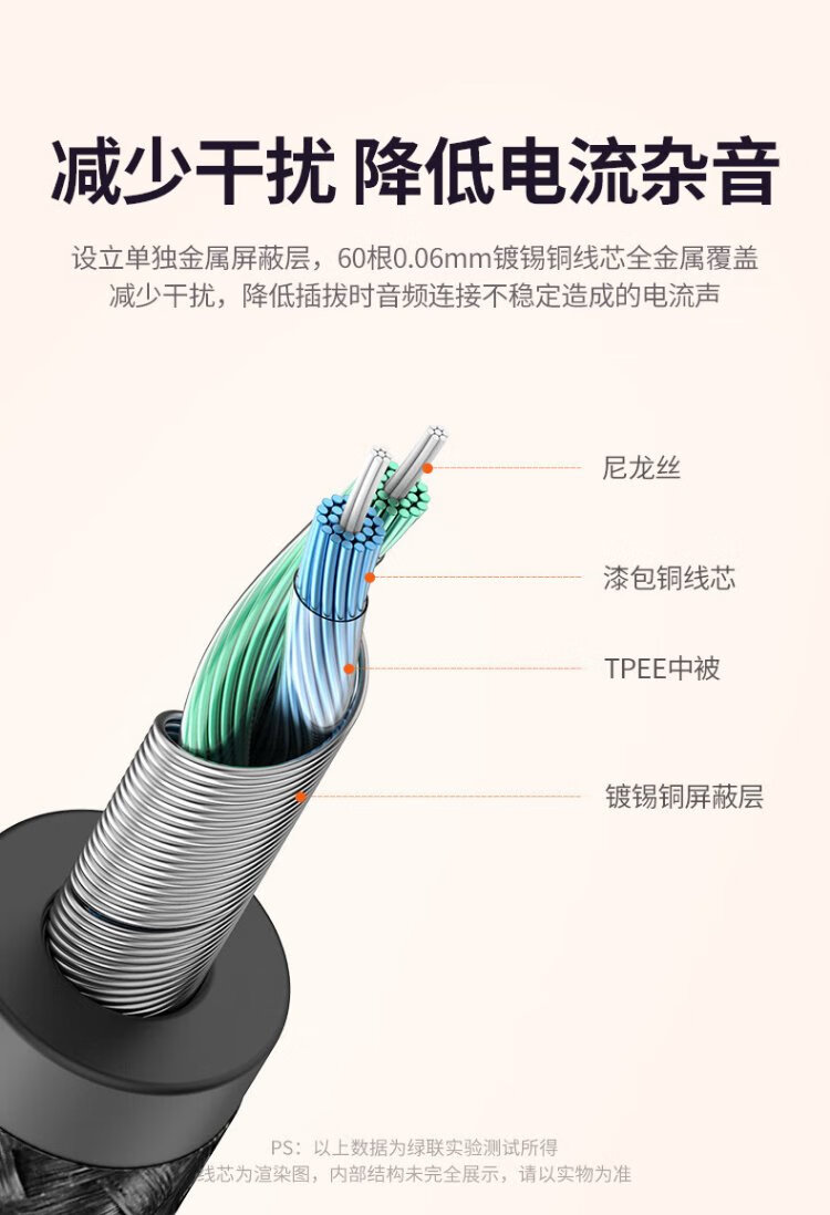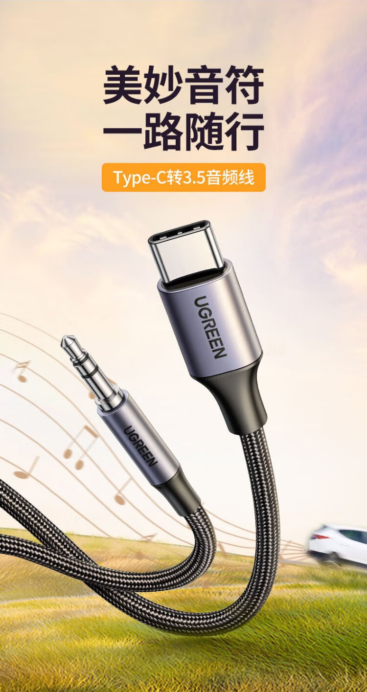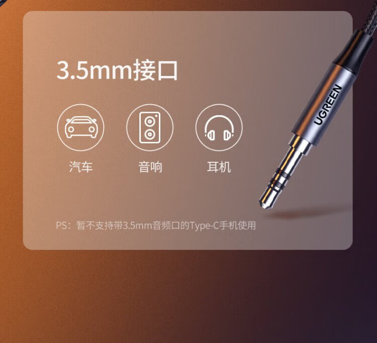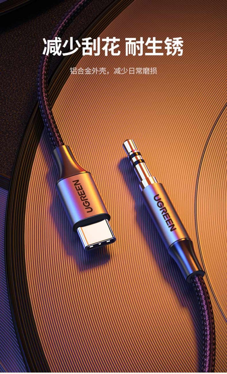 绿联Type-C转3.5mm音频转接线 车载AUX音频线 适用小米华为手机耳机头戴式接音响箱功放 0.5米35019