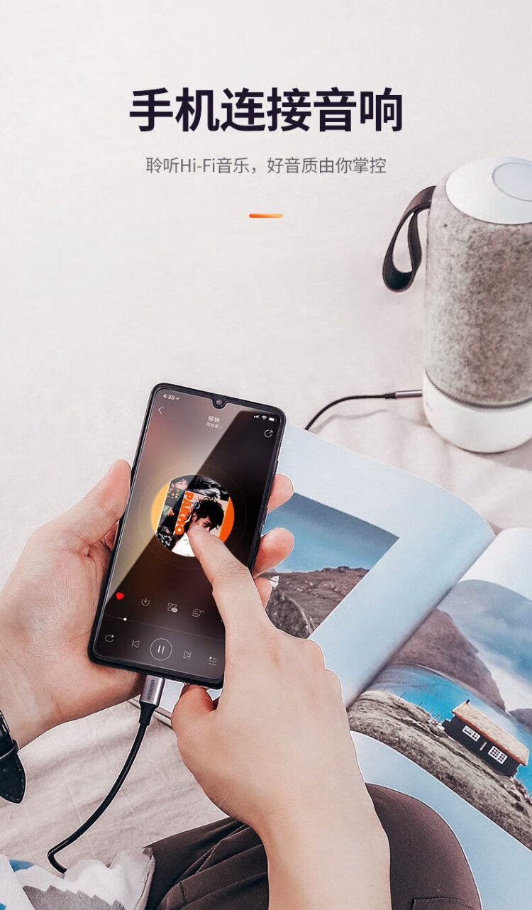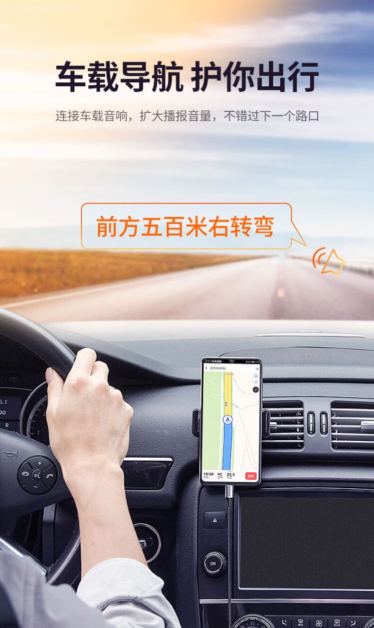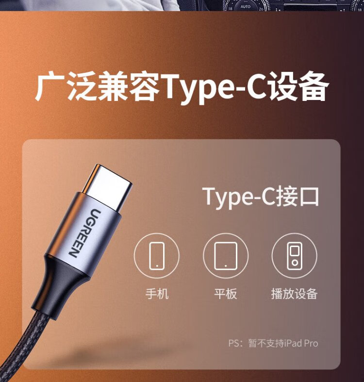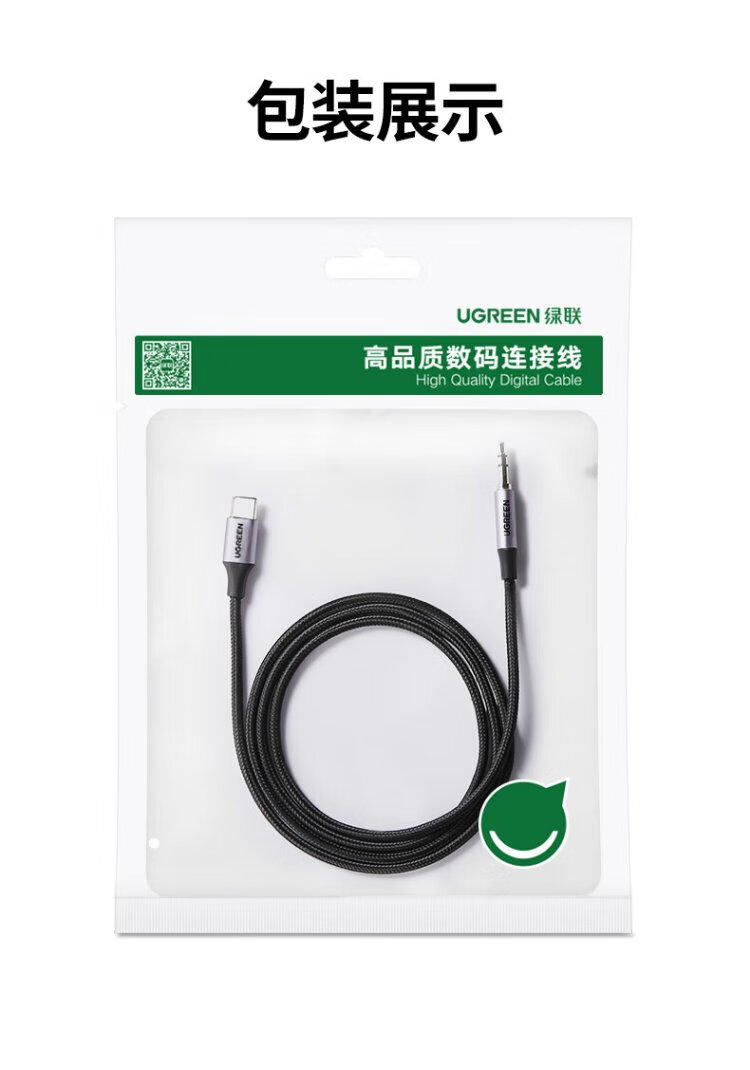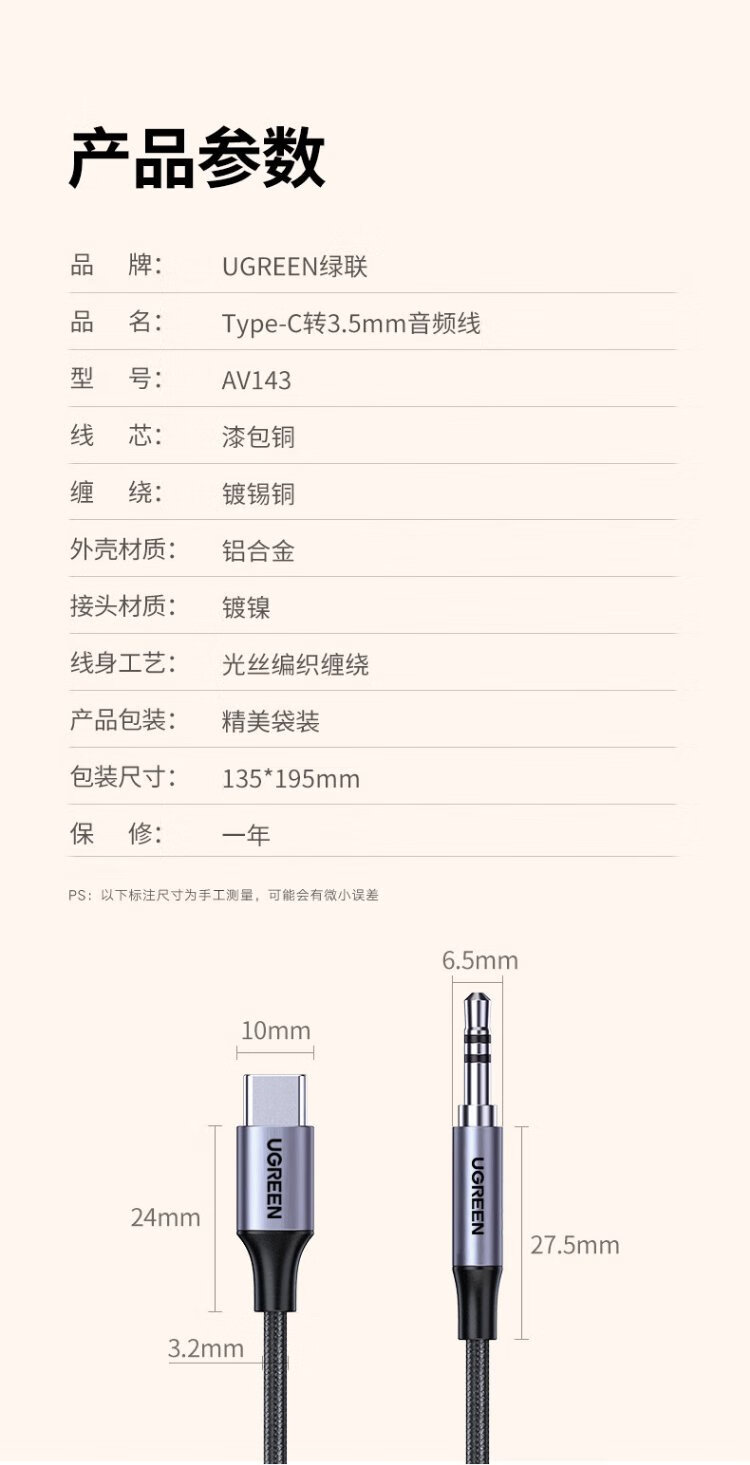 绿联Type-C转3.5mm音频转接线 车载AUX音频线 适用小米华为手机耳机头戴式接音响箱功放 0.5米35019