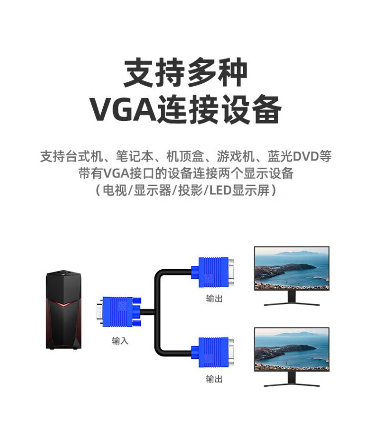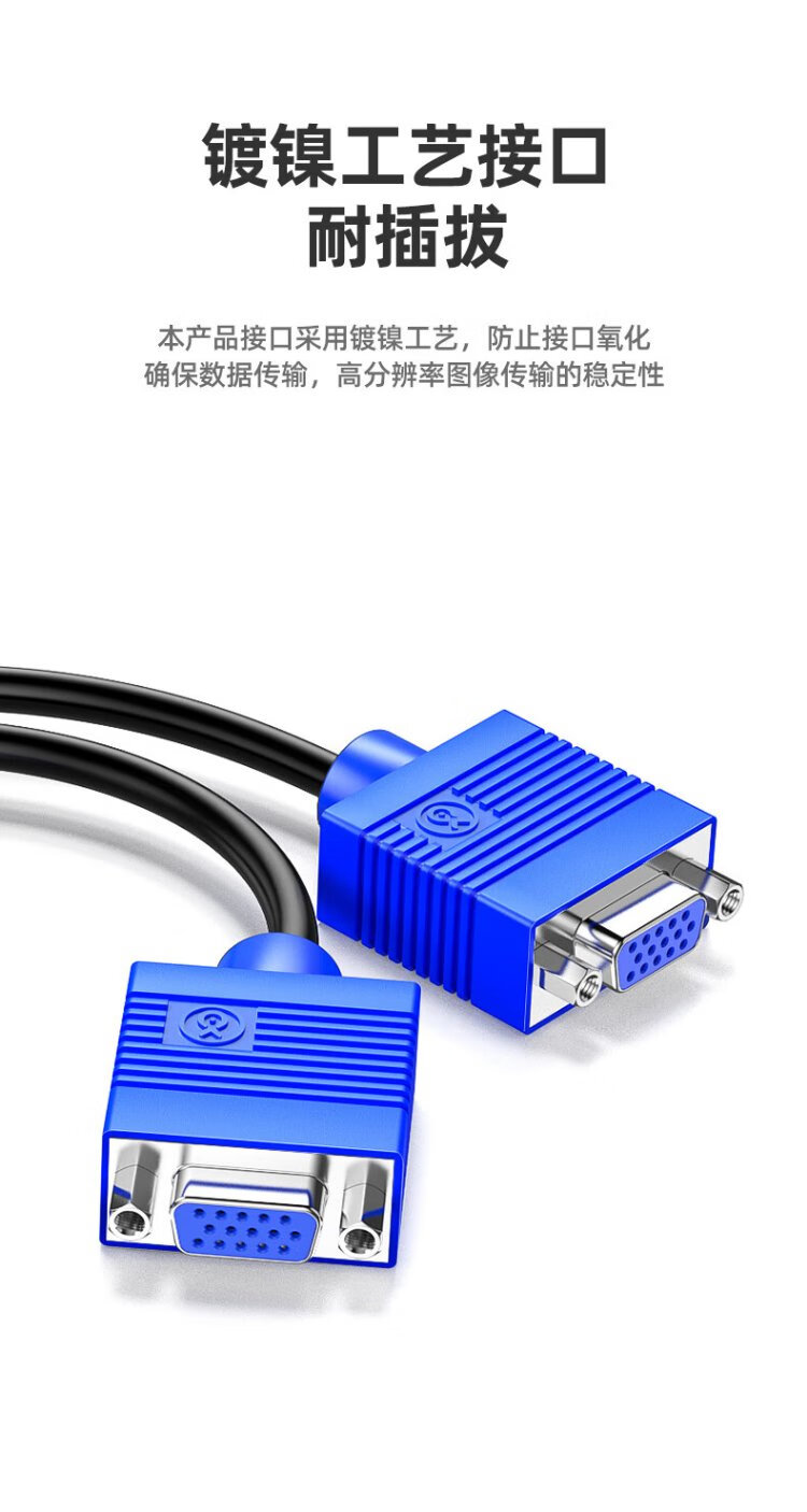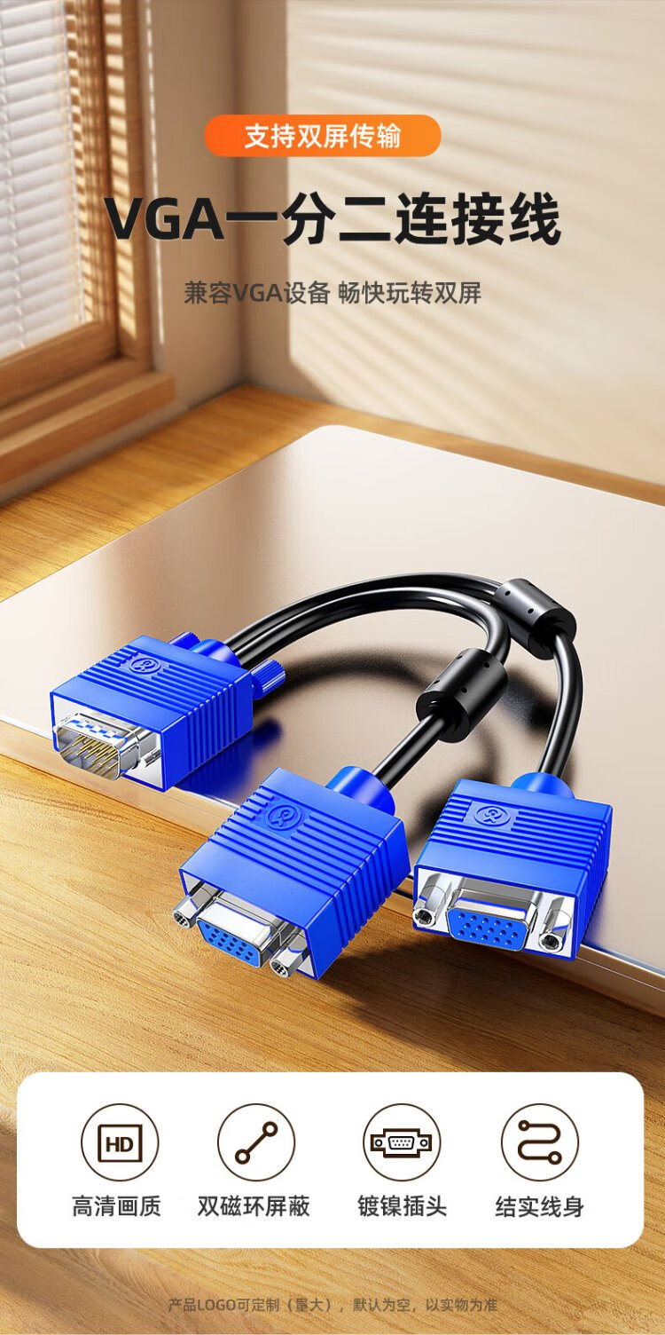 毕亚兹 VGA线 VGA分配器一分二连接线 电脑显示器VGA1分2分屏器同屏线 一进二出显示器投屏线 视频扩展器