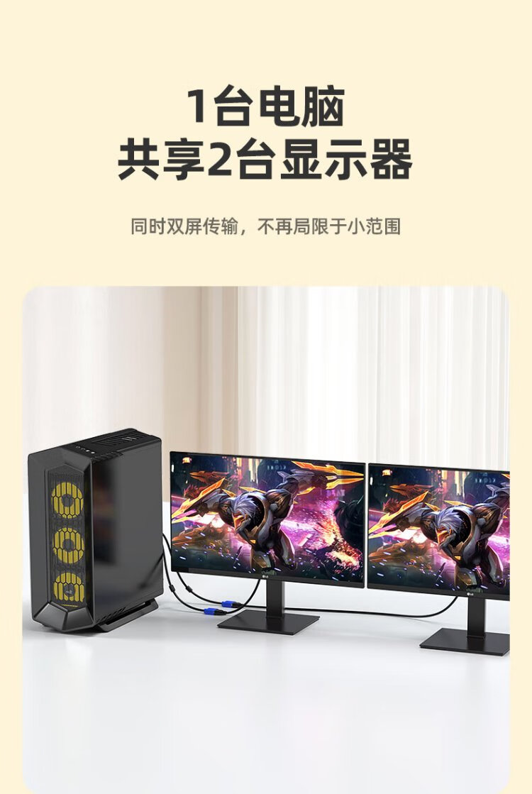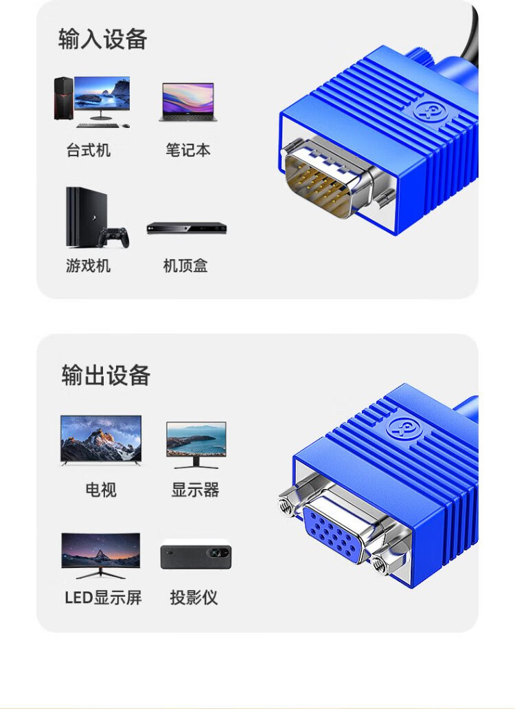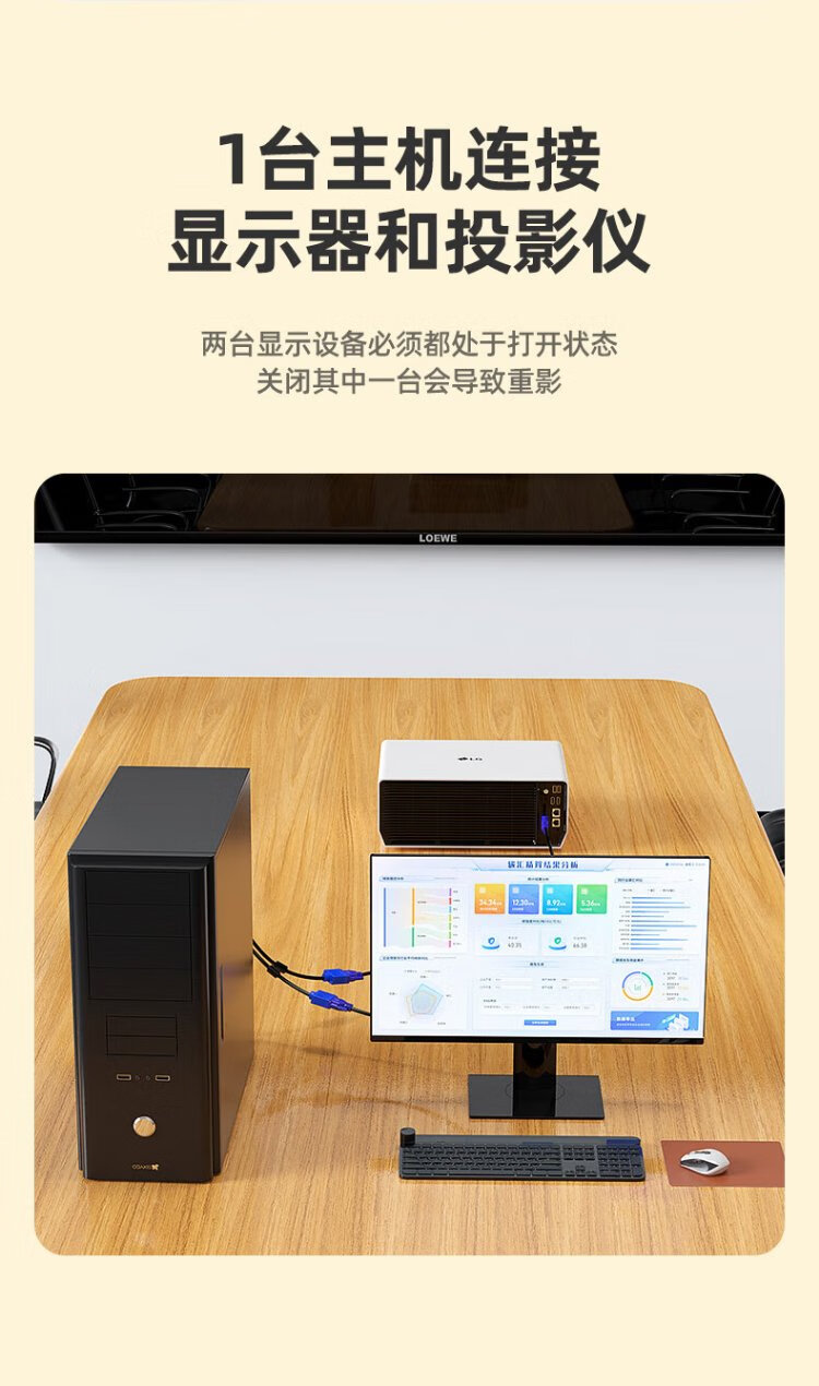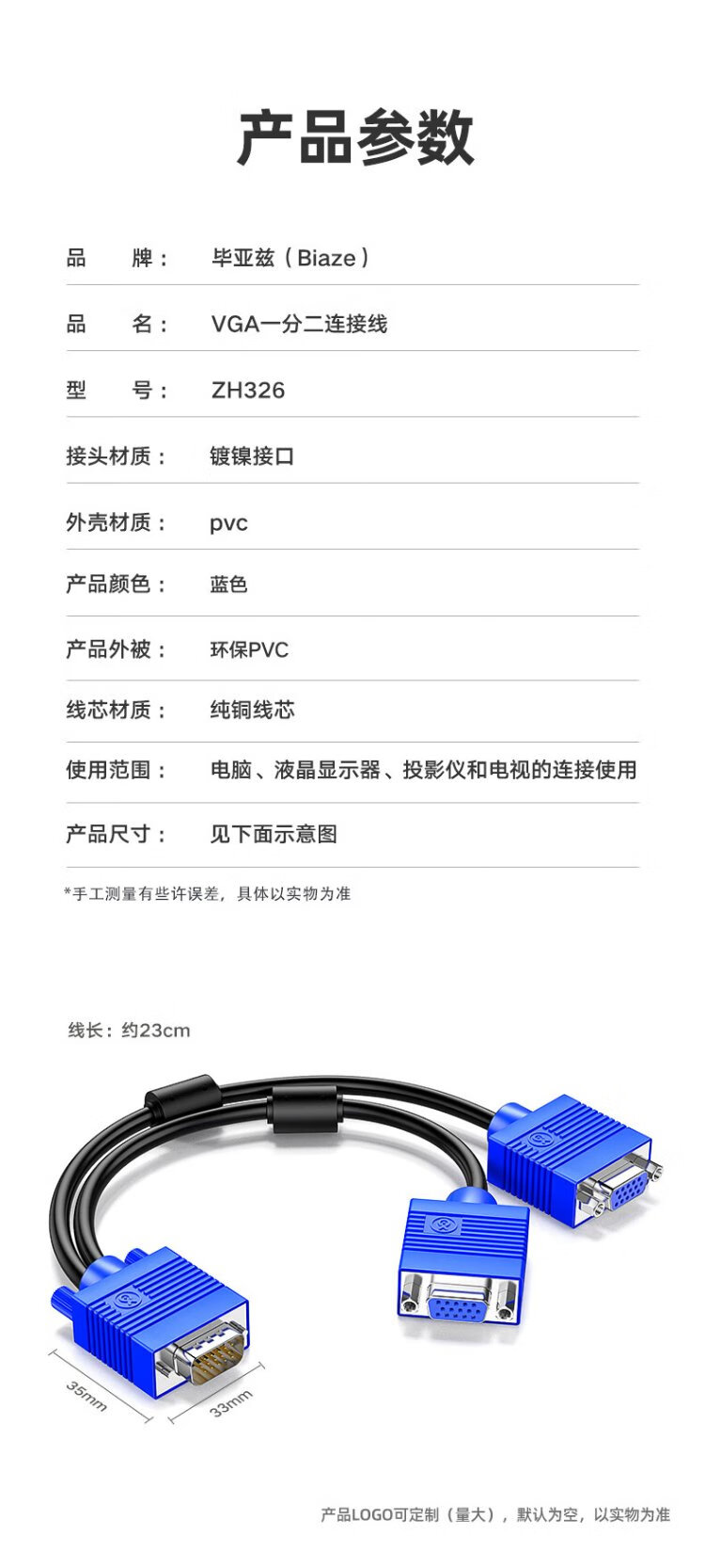 毕亚兹 VGA线 VGA分配器一分二连接线 电脑显示器VGA1分2分屏器同屏线 一进二出显示器投屏线 视频扩展器