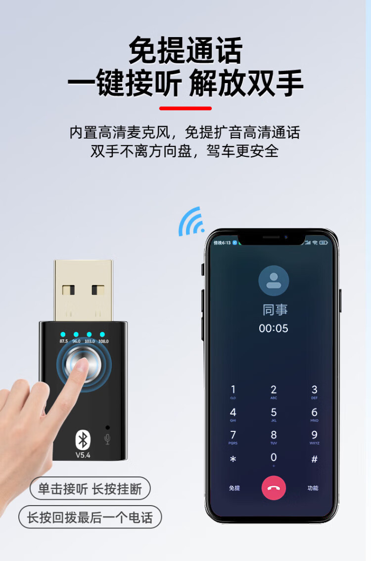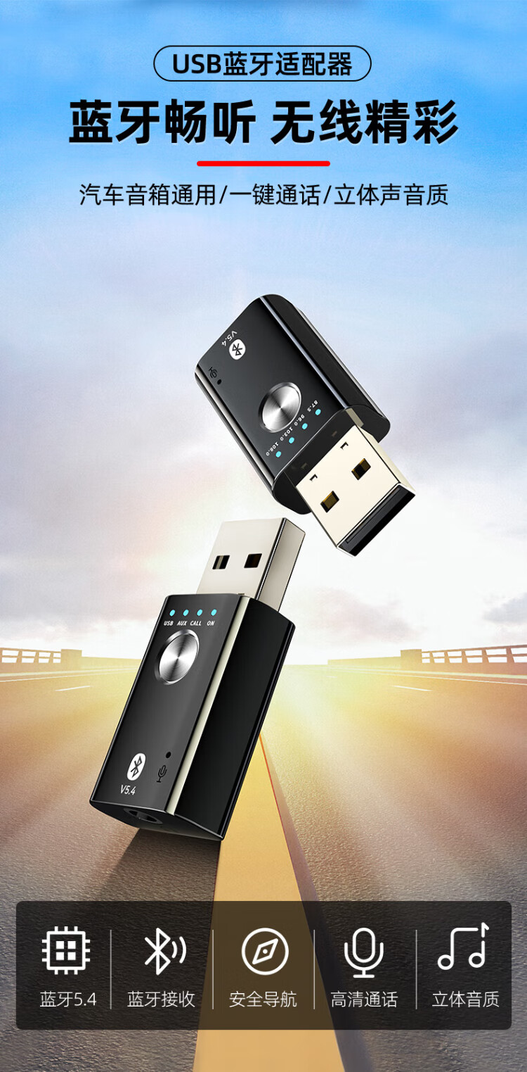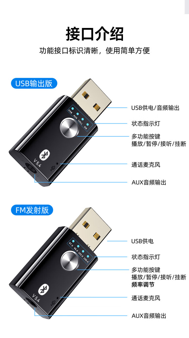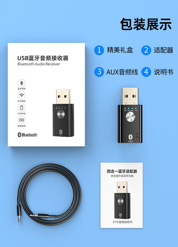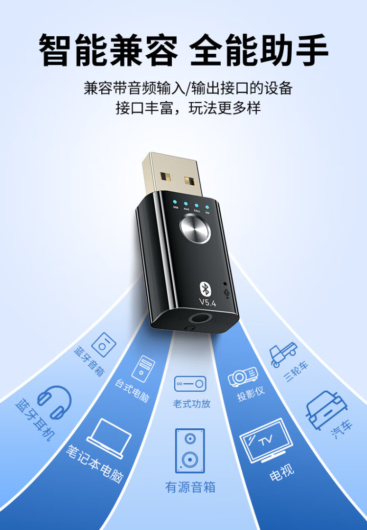 Biaz USB Bluetooth Adapter 5.4 receptor/transmisor de audio teléfono móvil dos en uno conectado a altavoces AUX del coche/audio/amplificador de potencia para llamadas/escuchar música/navegación