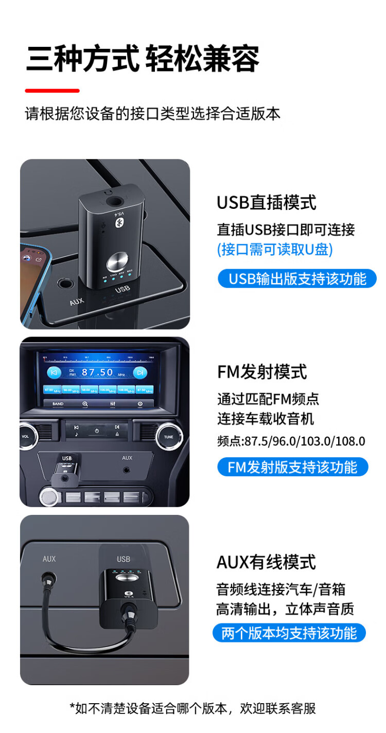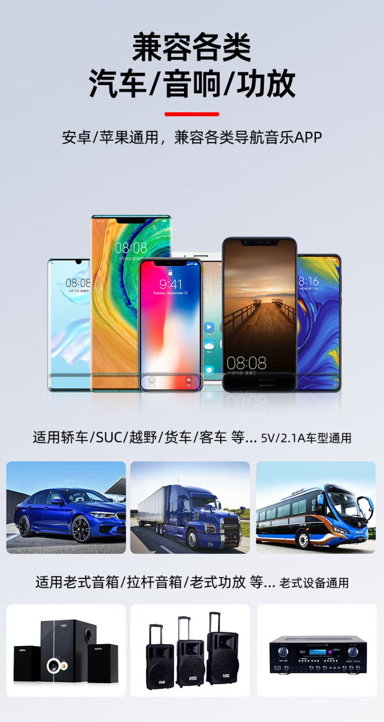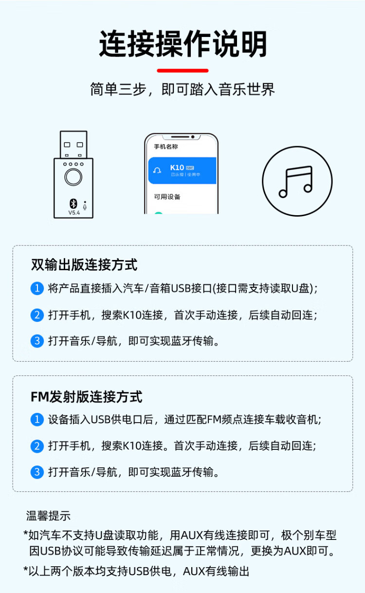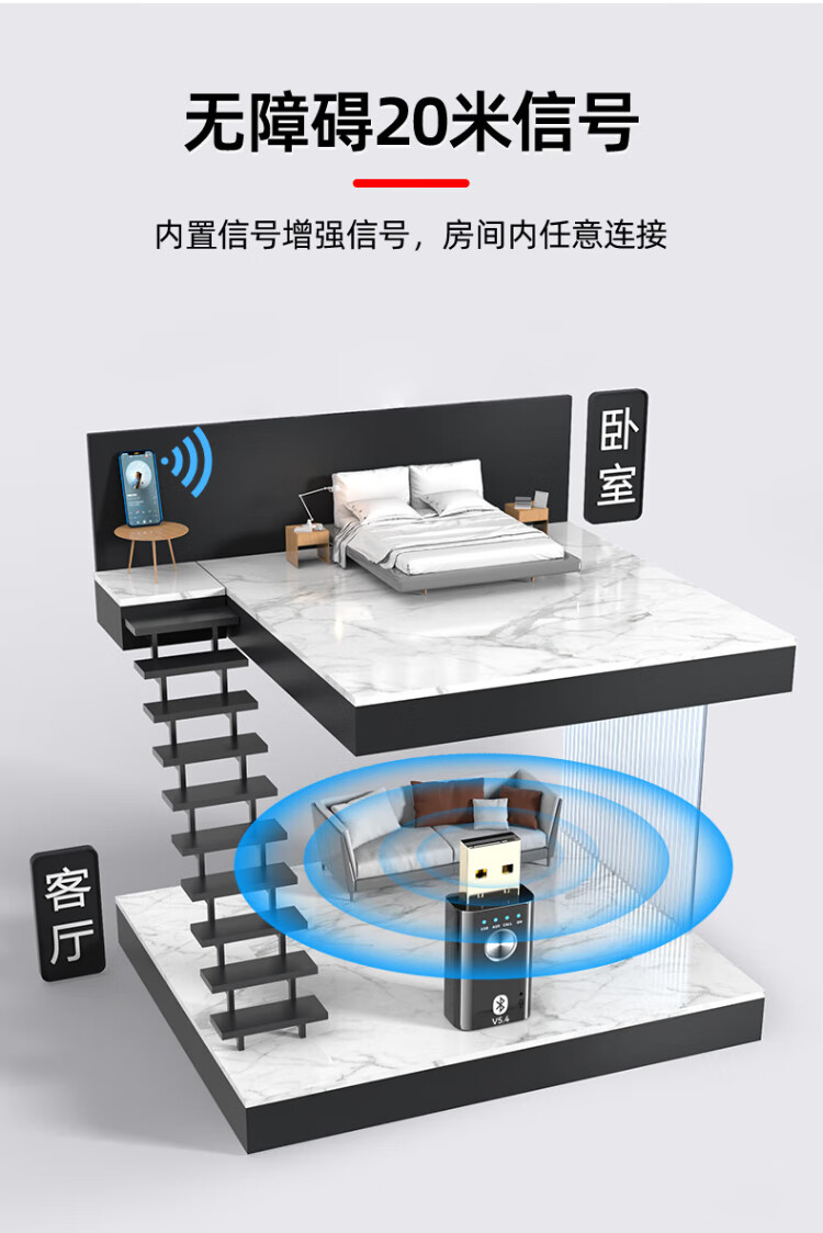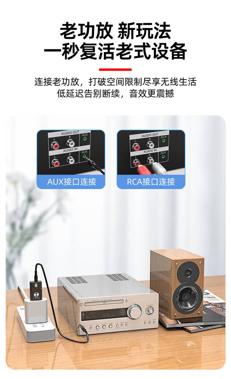 Biaz USB Bluetooth Adapter 5.4 receptor/transmisor de audio teléfono móvil dos en uno conectado a altavoces AUX del coche/audio/amplificador de potencia para llamadas/escuchar música/navegación