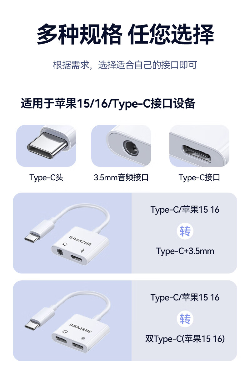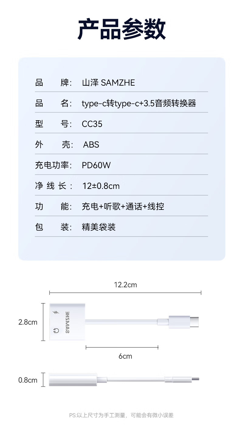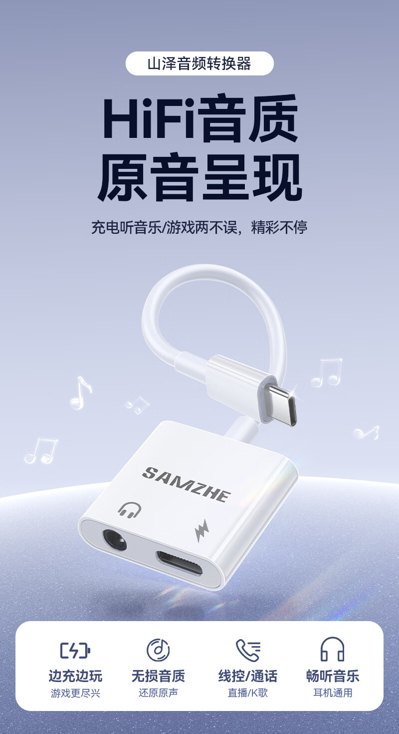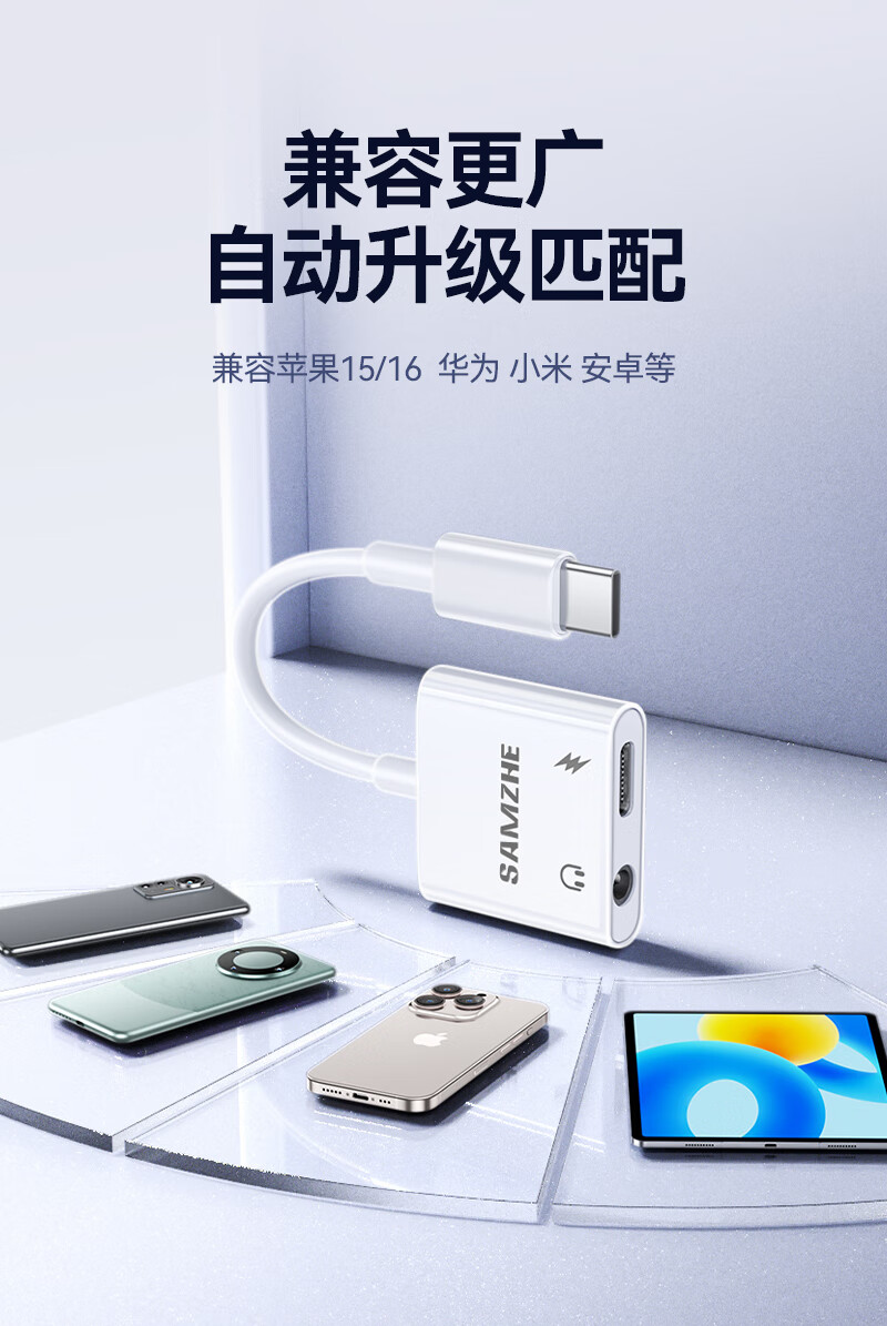 Shanze Headphone Adapter Type-C to 3.5mm Audio Converter Headphone Adapter Cable Charging and Listening to Music Two-in-One Suitable for Huawei Apple Xiaomi Splitter CC35
