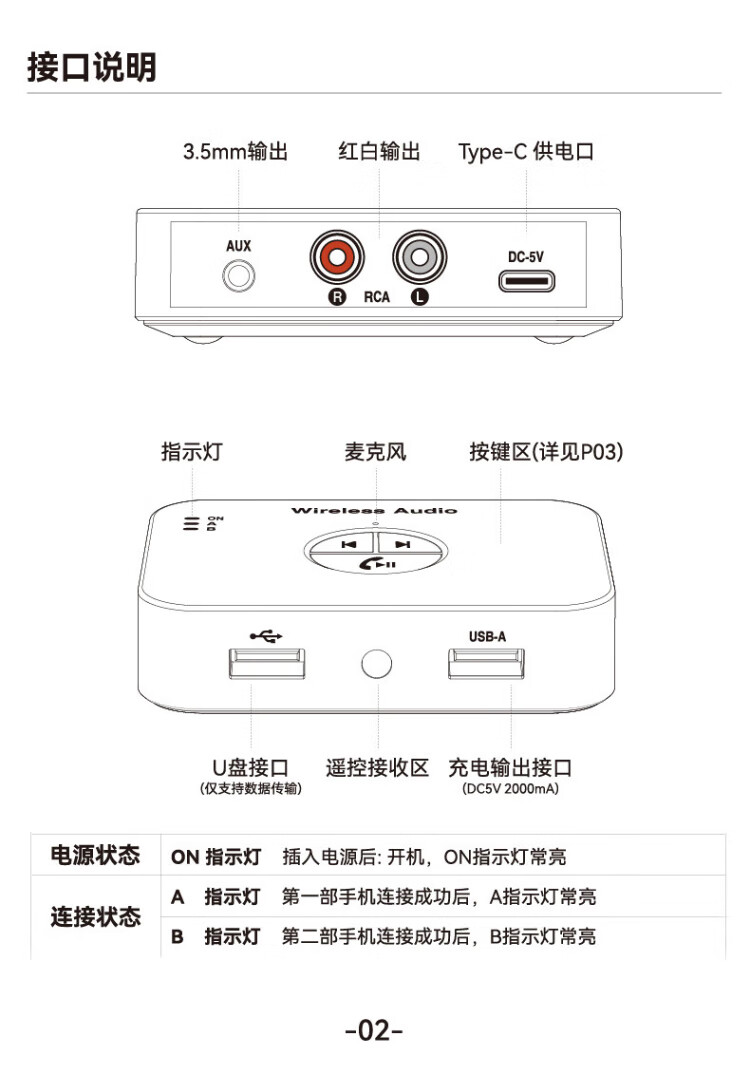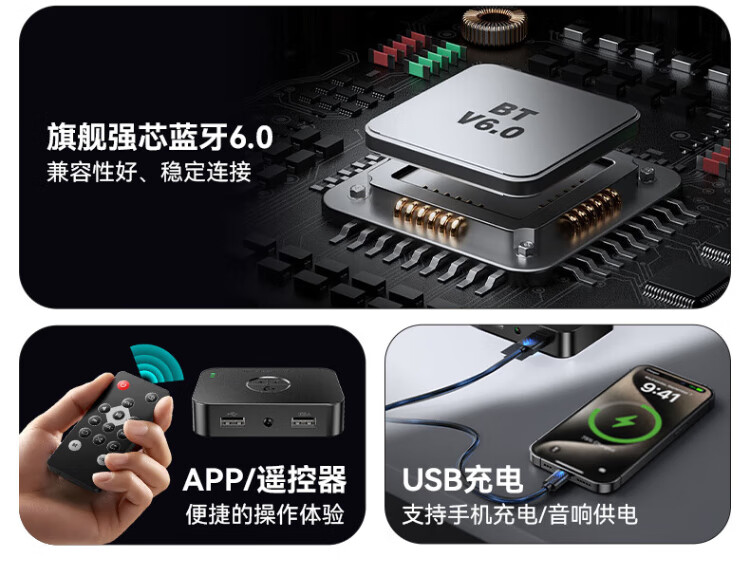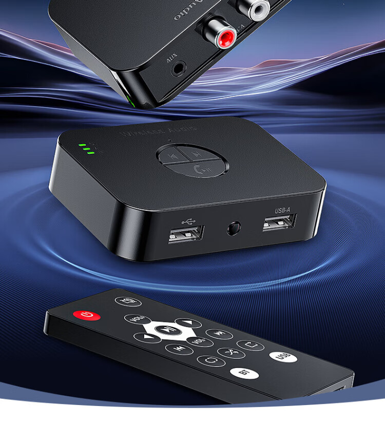 Biaz Récepteur Bluetooth Version 6.0 Voiture AUX3,5 mm vers 2RCA Dual Lotus Audio Convient pour téléphone portable U Disk connecté à l'amplificateur de charge Appel un à deux avec télécommande SBC/AAC