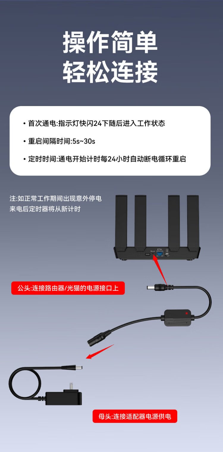 Biaz router automatic restart line home 24-hour scheduled power off network WIFI non-stuttering switch reset control optical cat network smart relay white