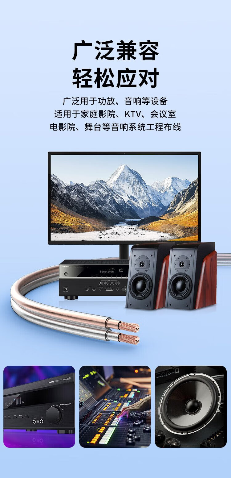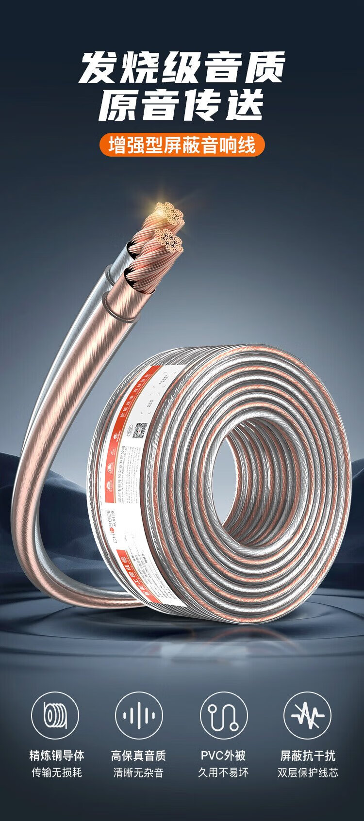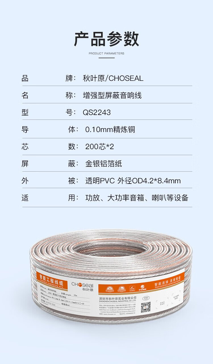秋叶原(CHOSEAL)音频线 音响线 音箱线 喇叭线 发烧级 增强型屏蔽抗干扰 纯铜200芯 50米 QS2243T50S