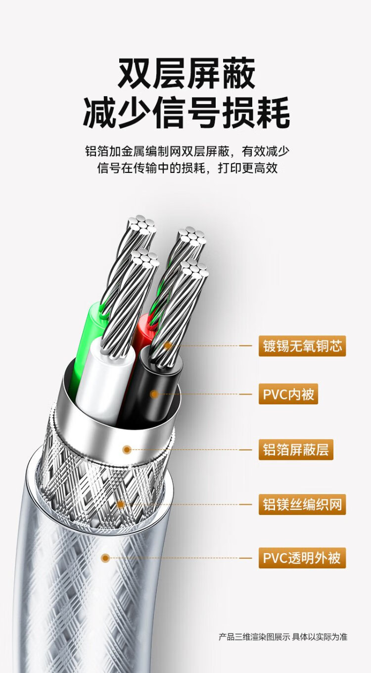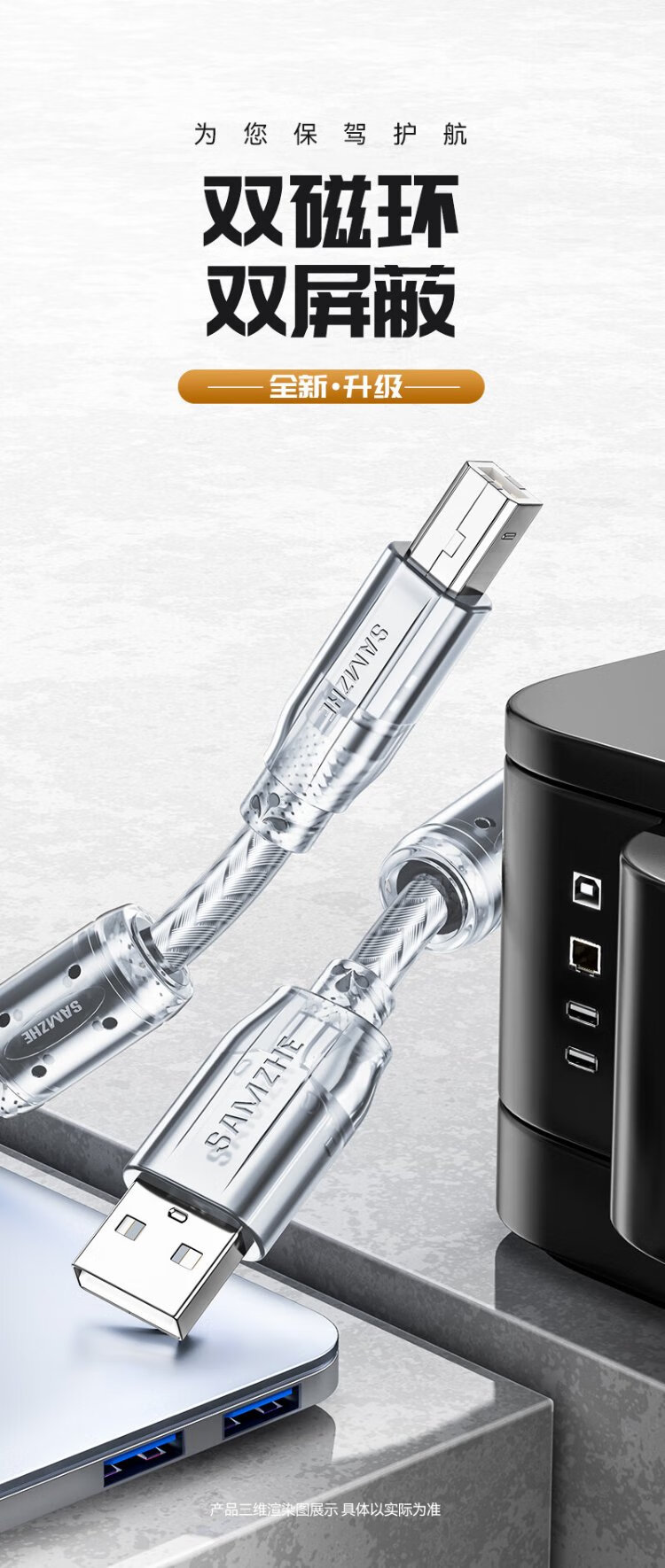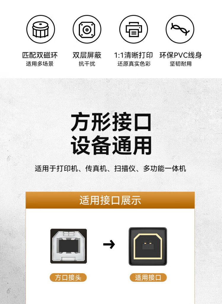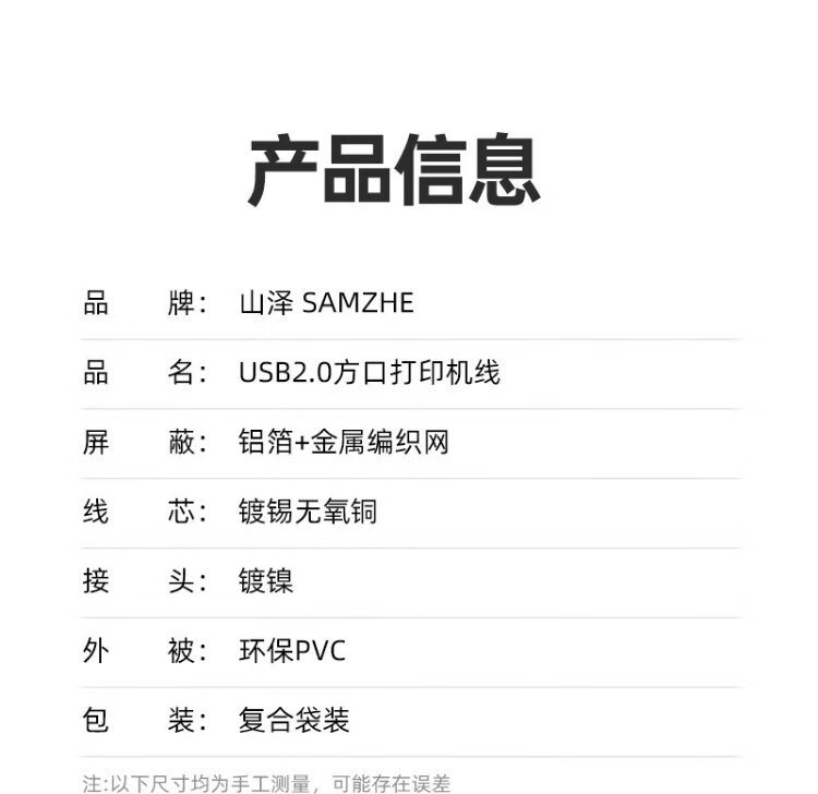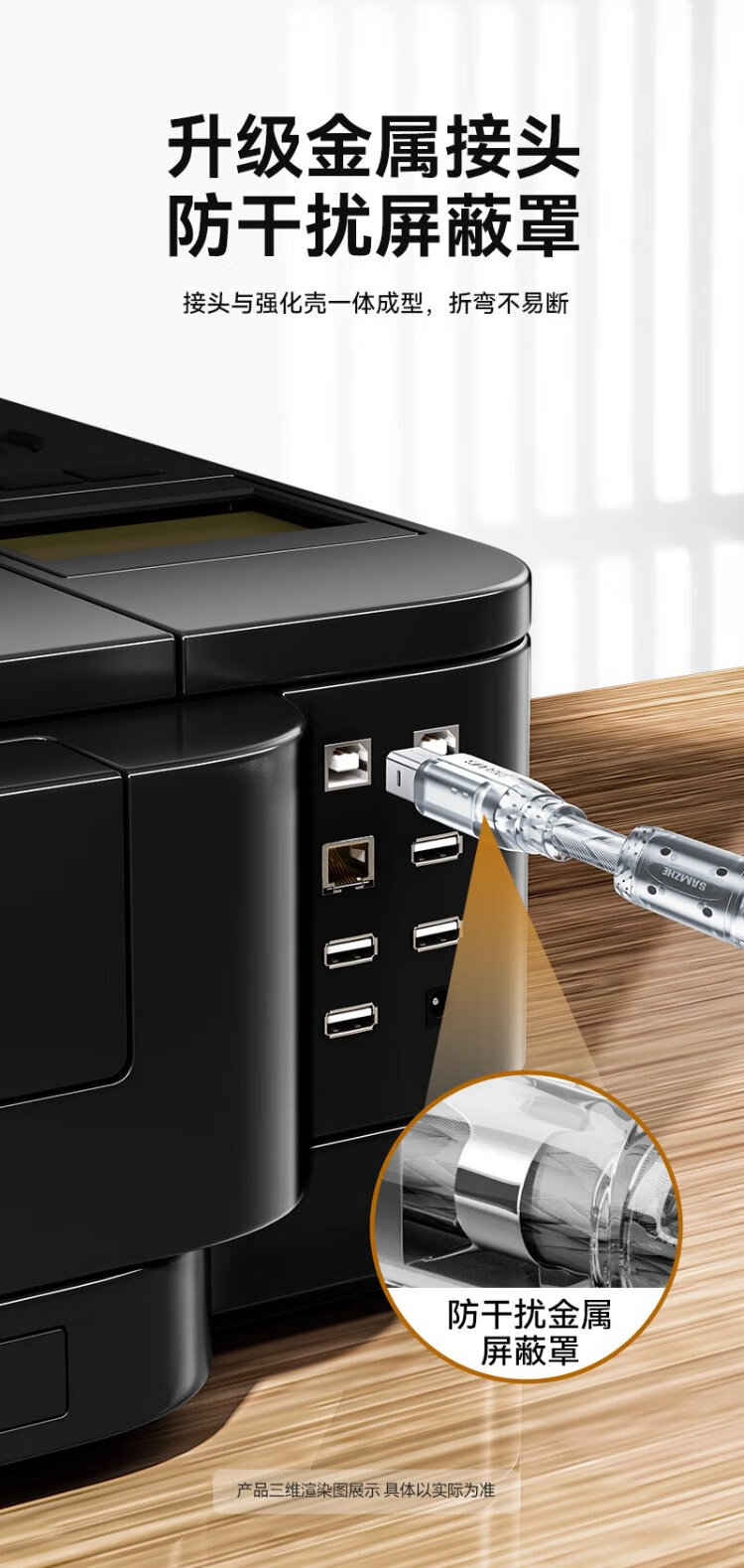 山泽USB打印机数据连接线10米usb2.0方口数据连接线 AM/BM 支持惠普佳能爱普生打印机UK-410