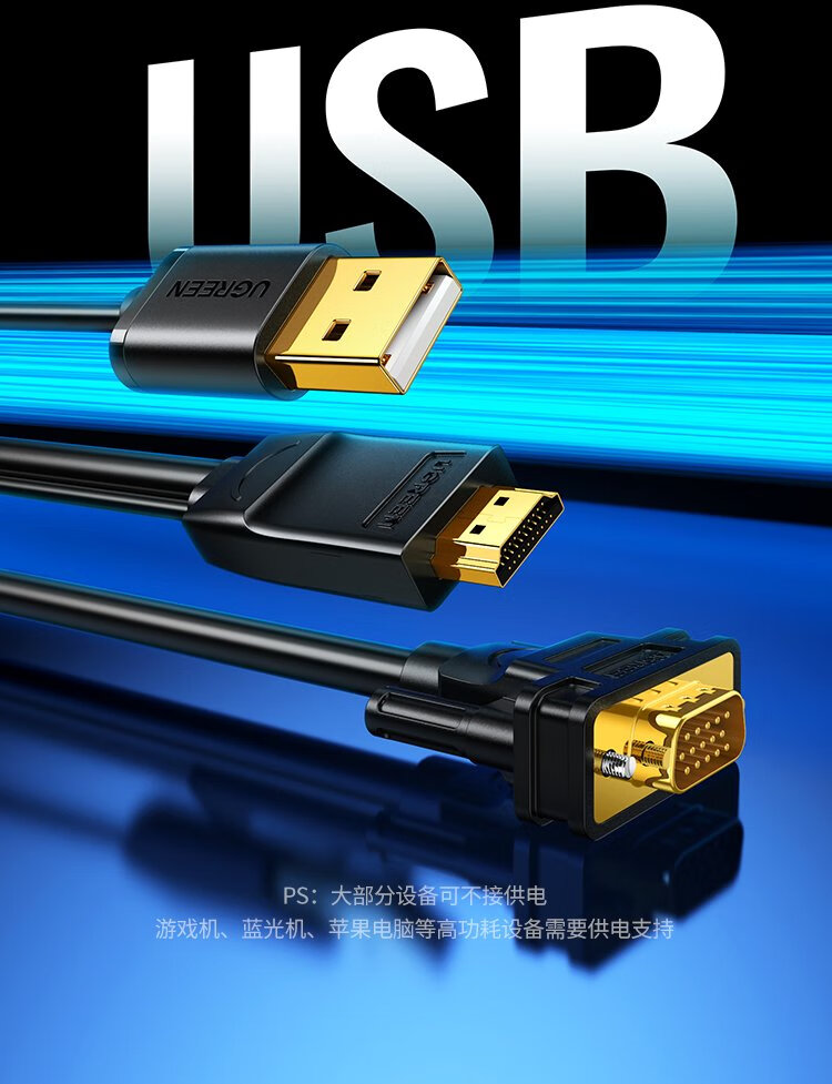 Greenlink HDMI-zu-VGA-Konvertierungskabel, HD-Video-Adapterkabel, geeignet für Laptop-TV-Box PS5, verbunden mit Monitor-Projektor, 1,5 Meter 30449