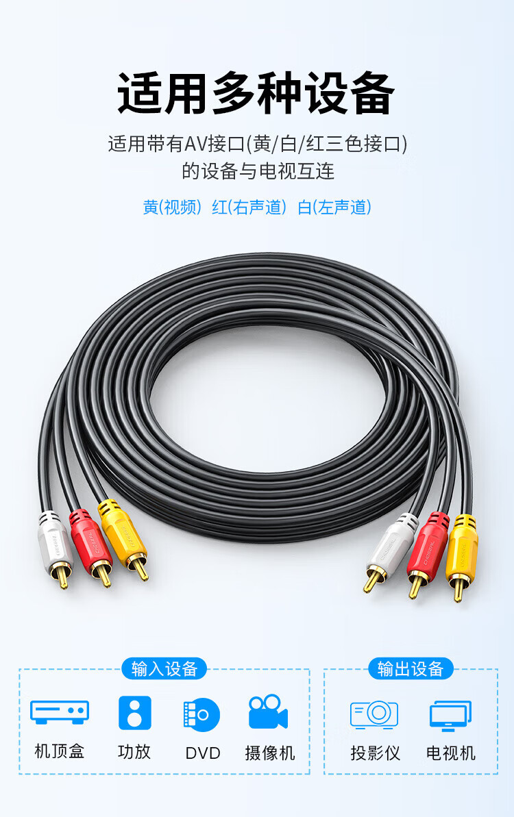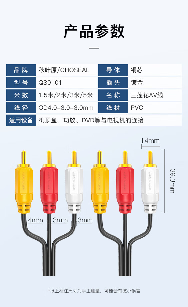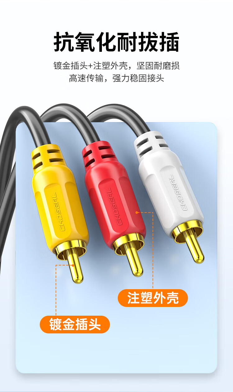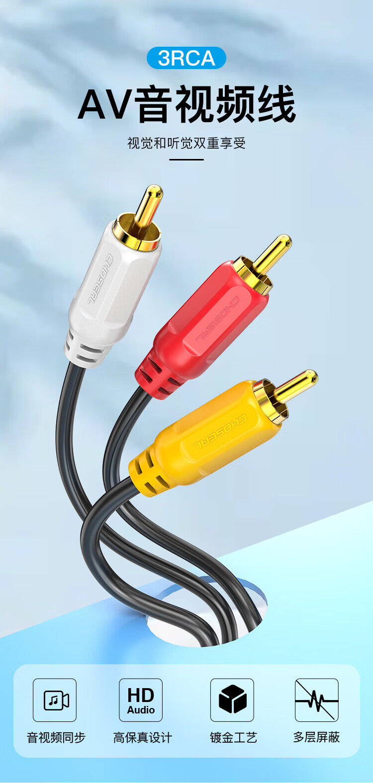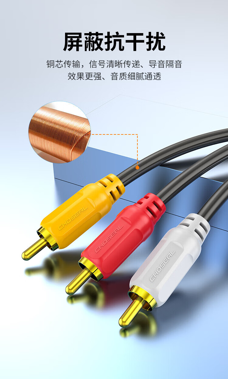 Akihabara (CHOSEAL) AV-Audio- und Video-Verbindungskabel, drei Paare von drei Lotuskopfkabeln, rotes, weißes und gelbes AV-Adapterkabel, rotes, weißes und gelbes TV-Set-Top-Box-Kabel 1,5 Meter QS0101T1D5