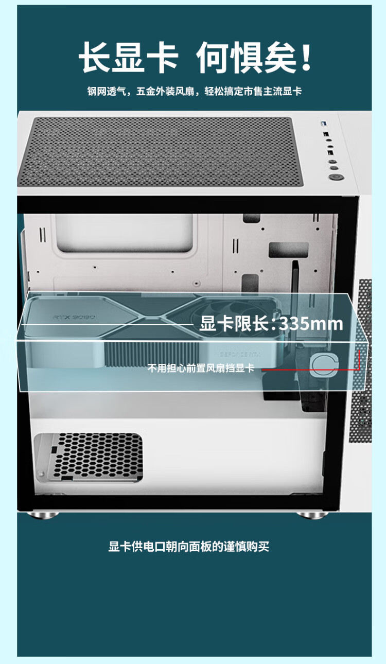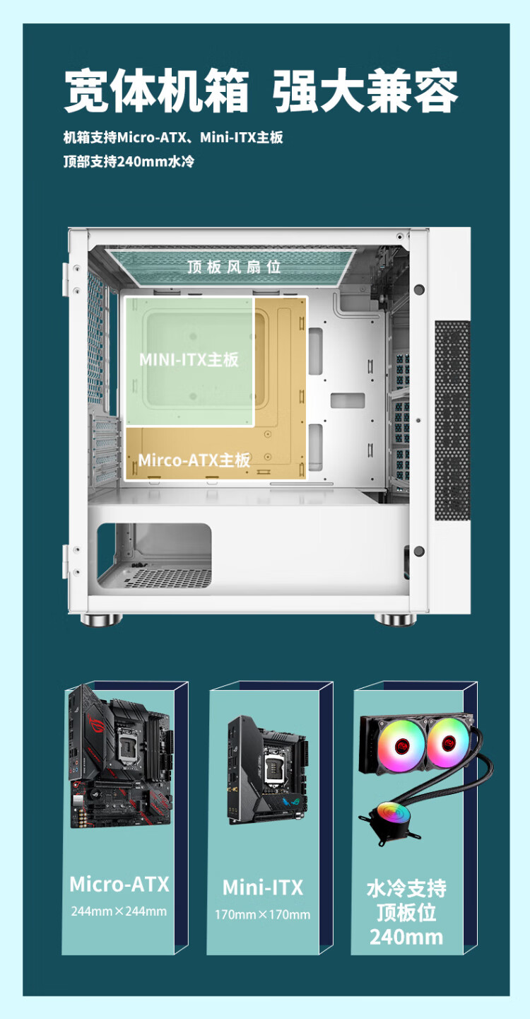 长城(Great Wall)阿基米德1白色电脑机箱(超宽体/MATX小板/240水冷位/玻璃全侧透/20CM风扇位/5080显卡)