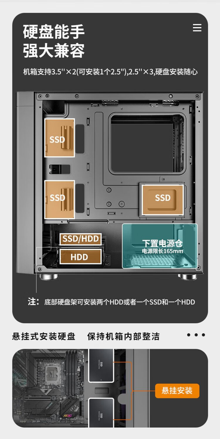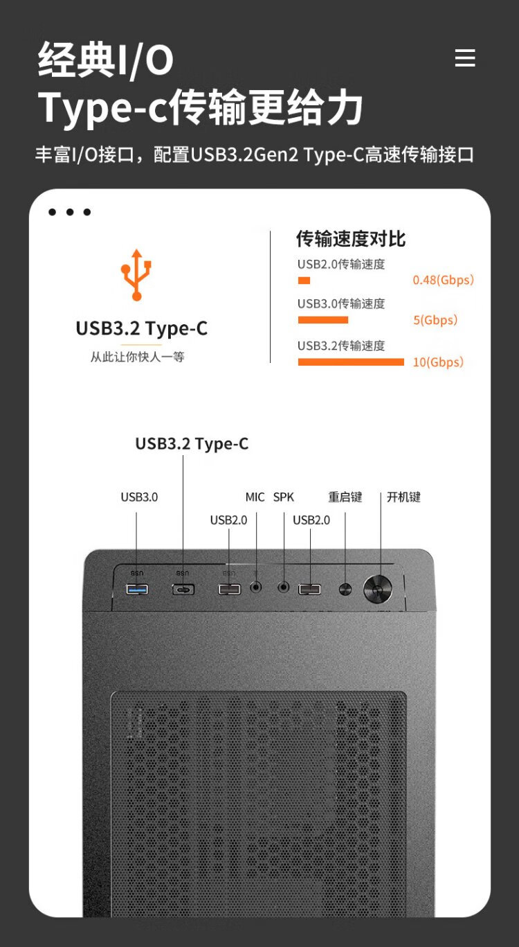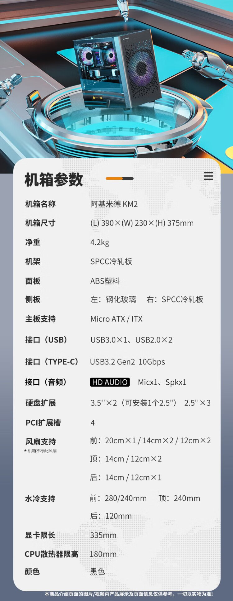 Great Wall Archimedes 2 schwarzes Computergehäuse (Typ-C 3,2/20 cm Lüfterposition/kleines MATX-Motherboard/240 Wasserkühlungsposition/breites Gehäuse/5080-Grafikkarte)