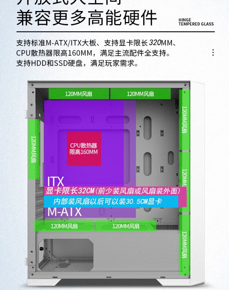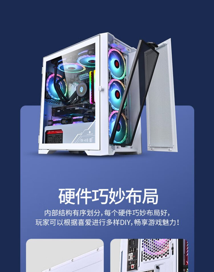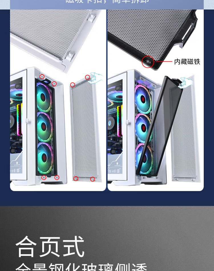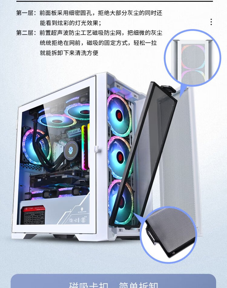 玩嘉 绝尘玩家黑(玻璃款) 防尘游戏办公电脑机箱 支持M-ATX主板/240水冷/玻璃侧透/三片防尘